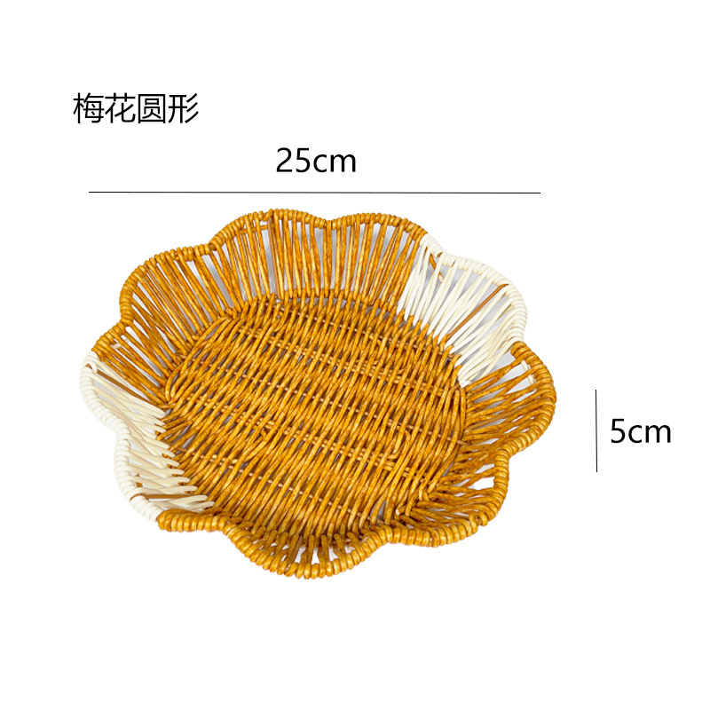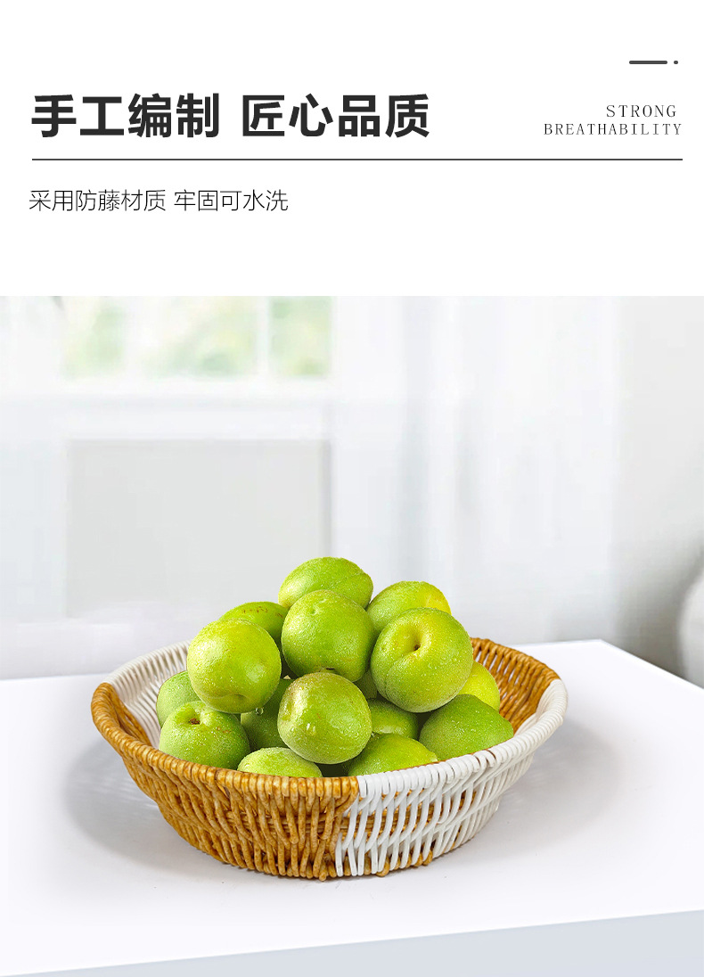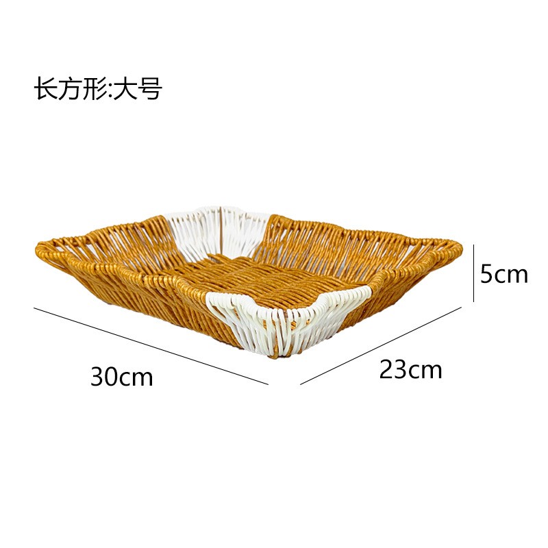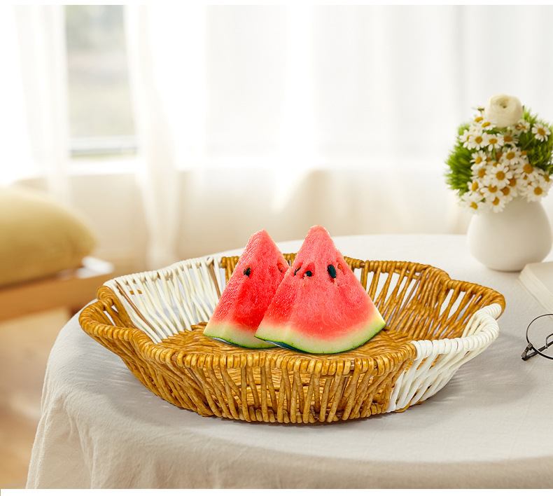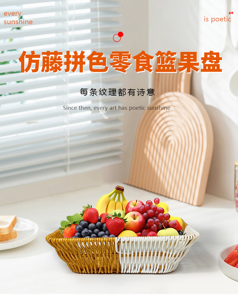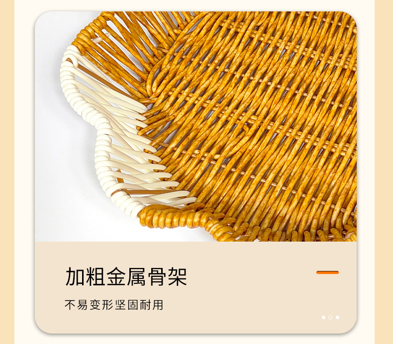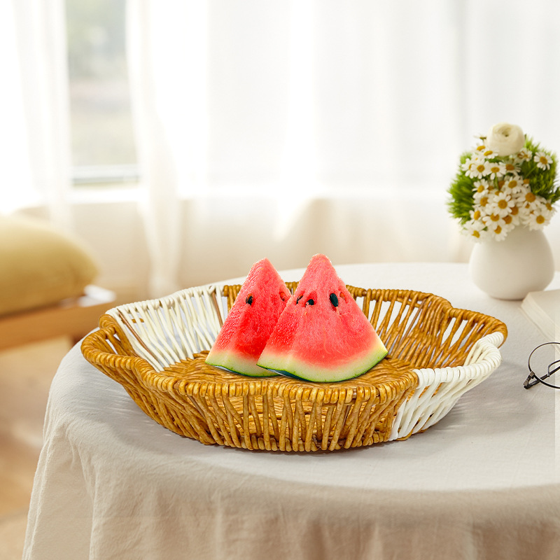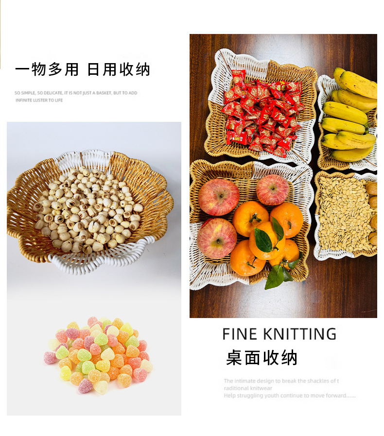 仿藤拼色零食筐果盘桌面塑料编织篮子心形椭圆酒店零食坚果客厅用