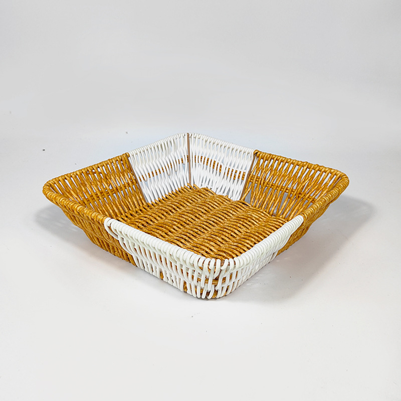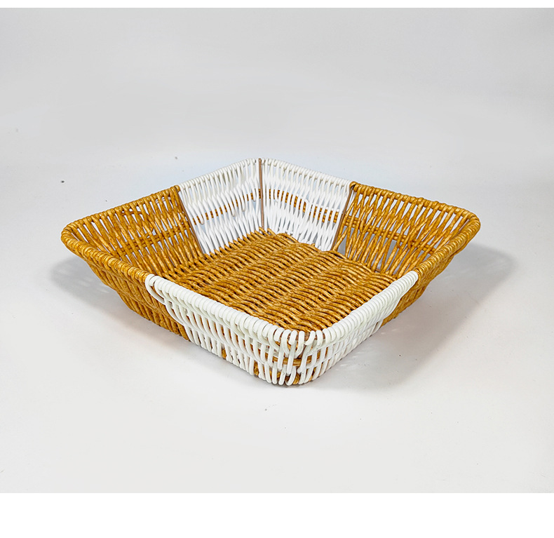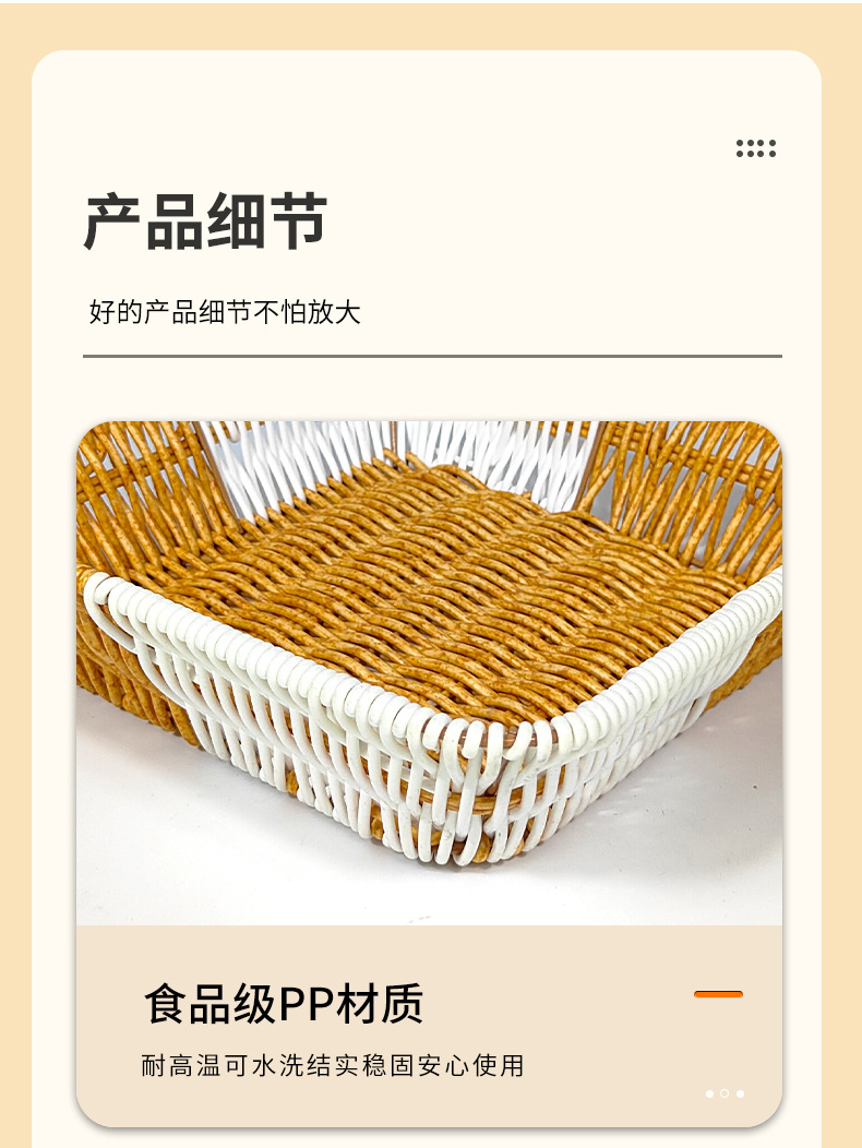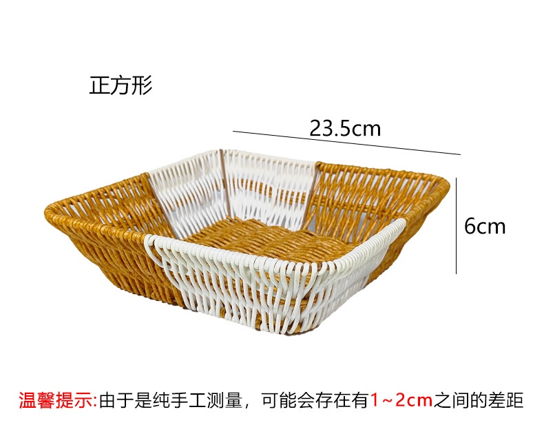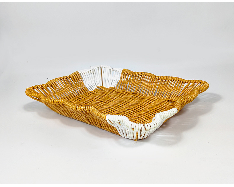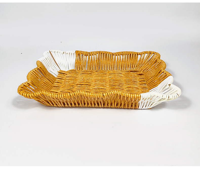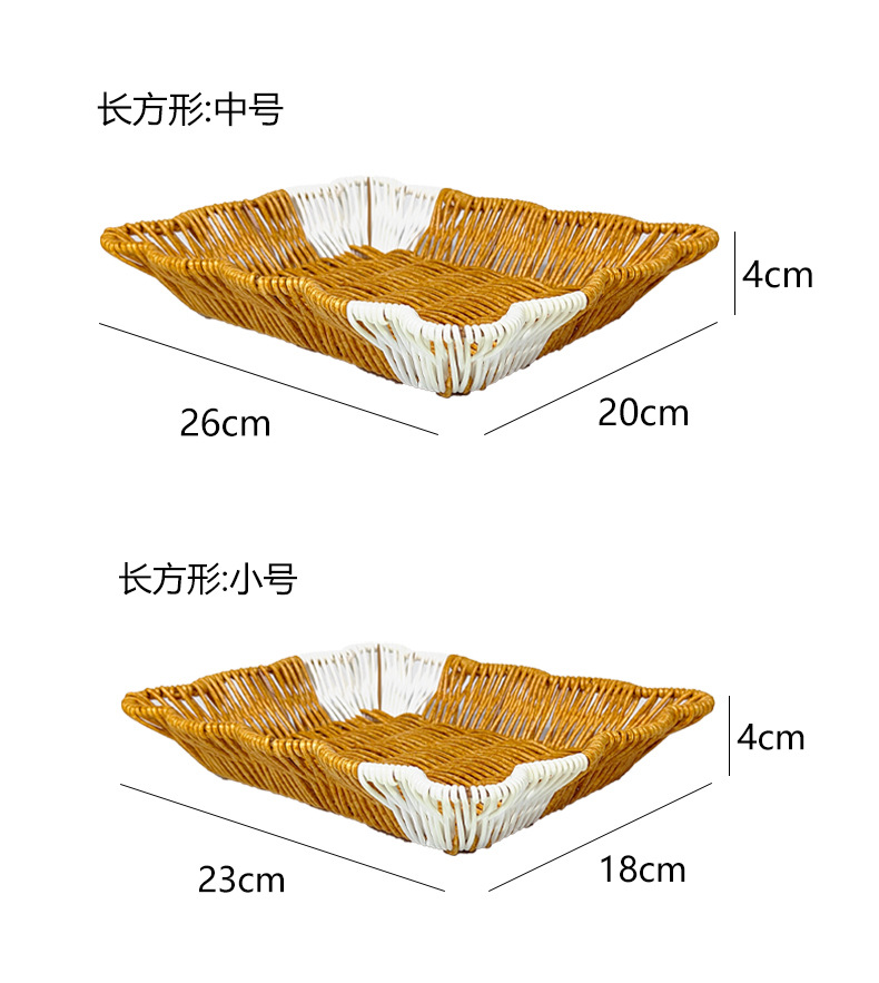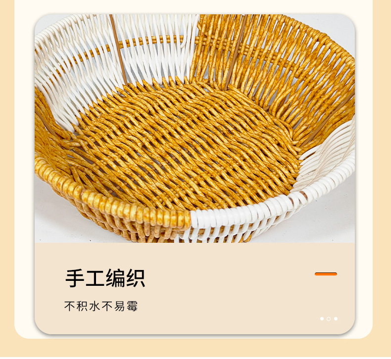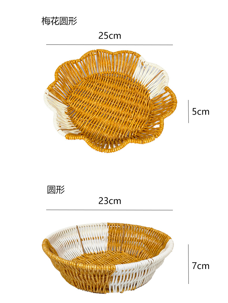仿藤拼色零食筐果盘桌面塑料编织篮子心形椭圆酒店零食坚果客厅用