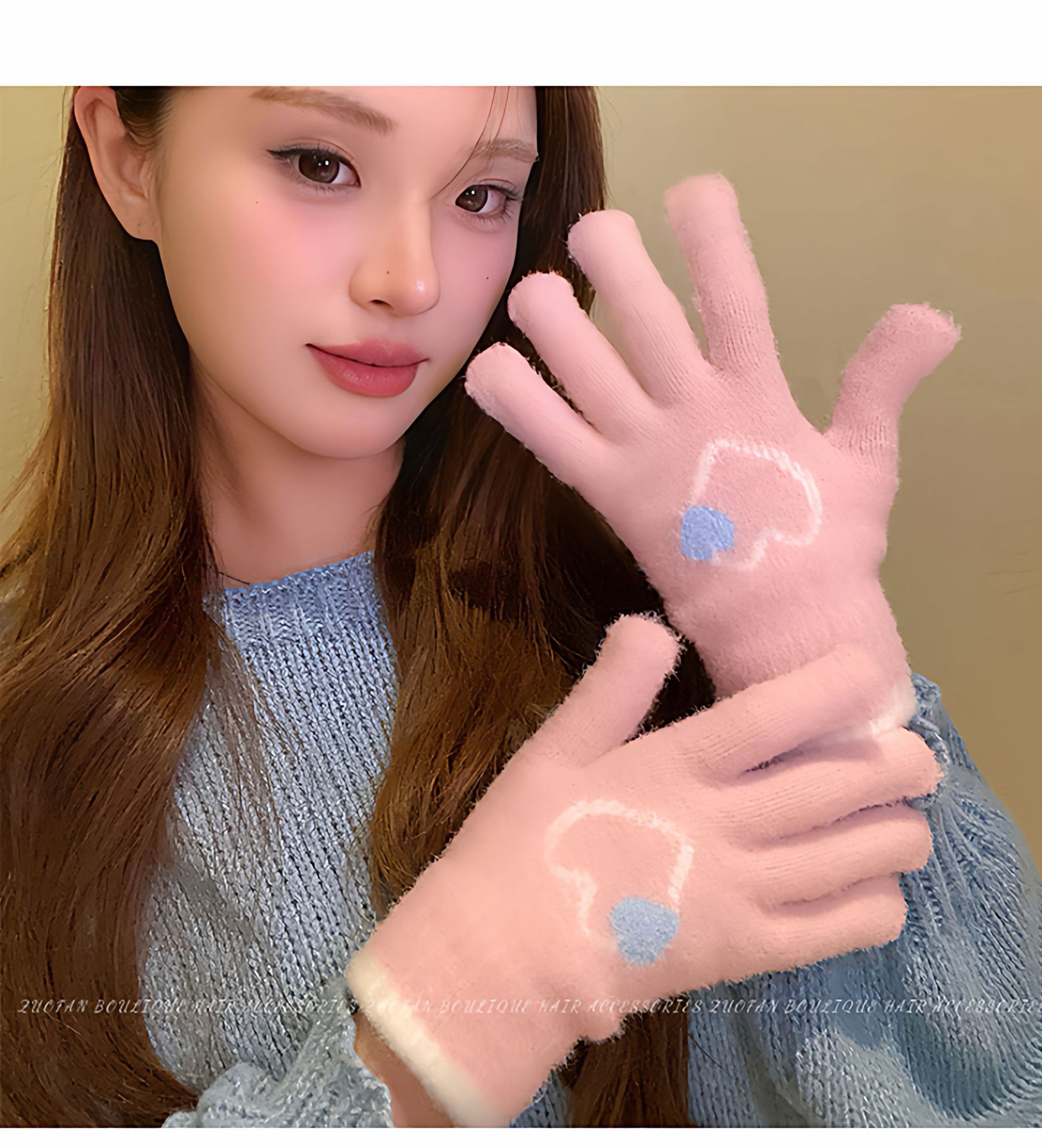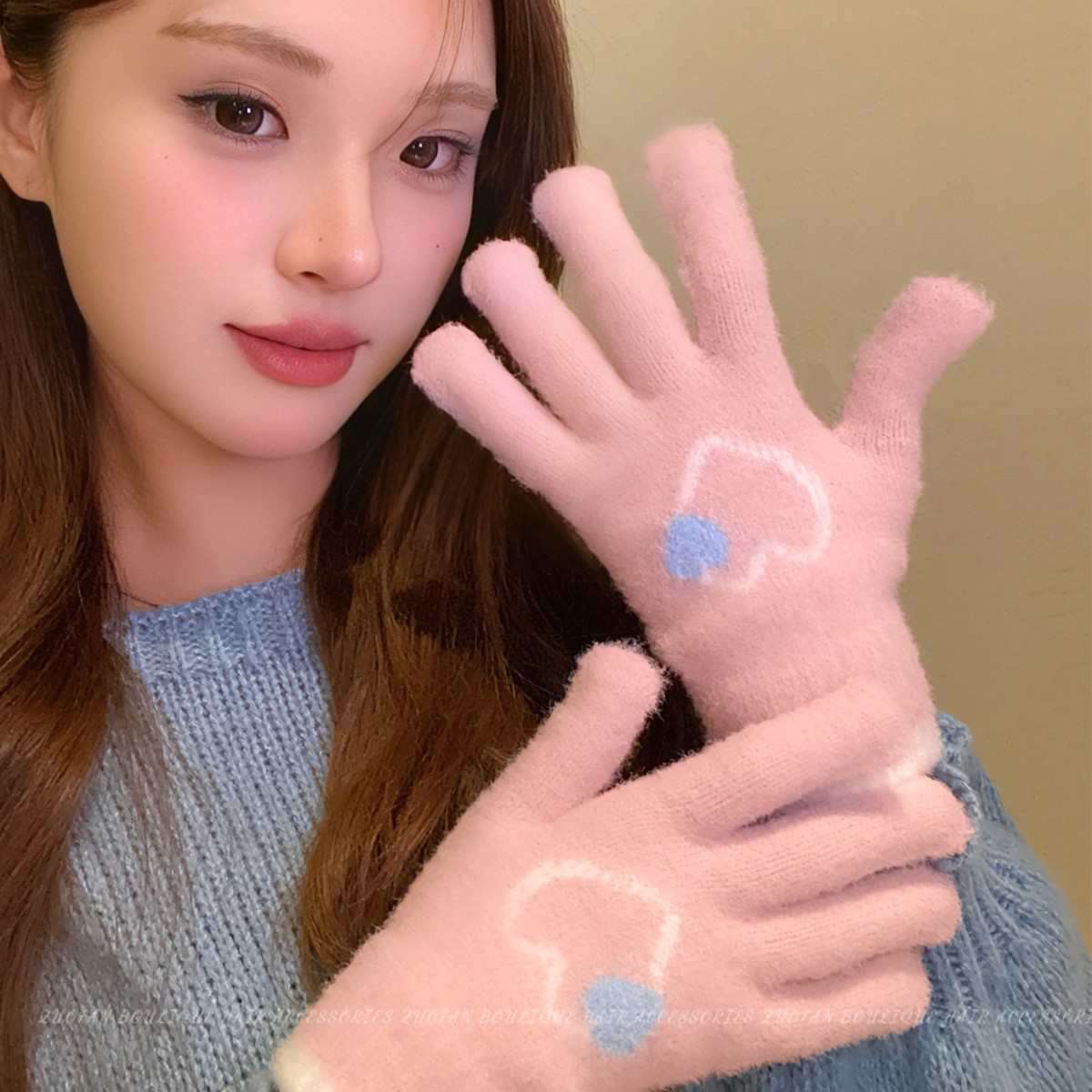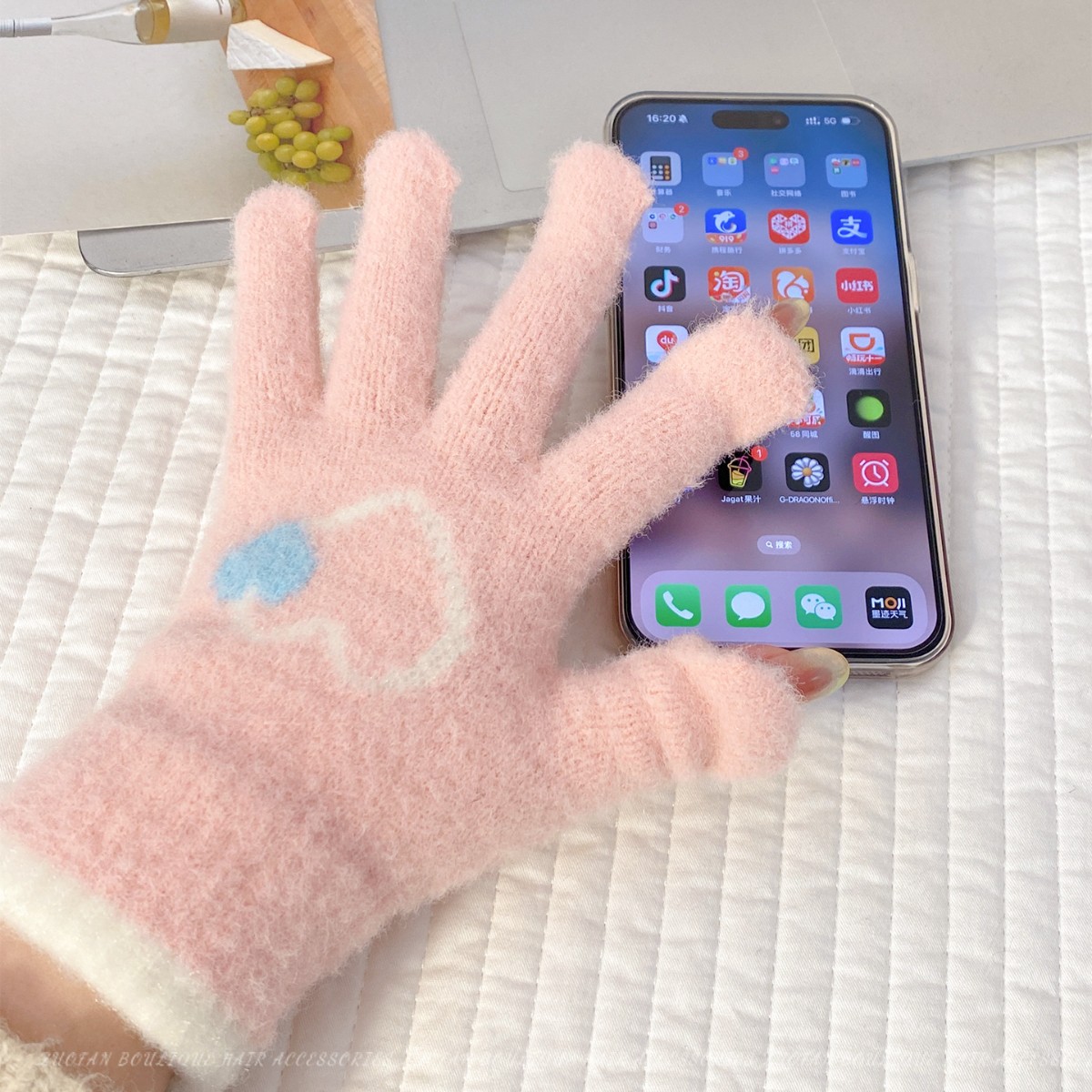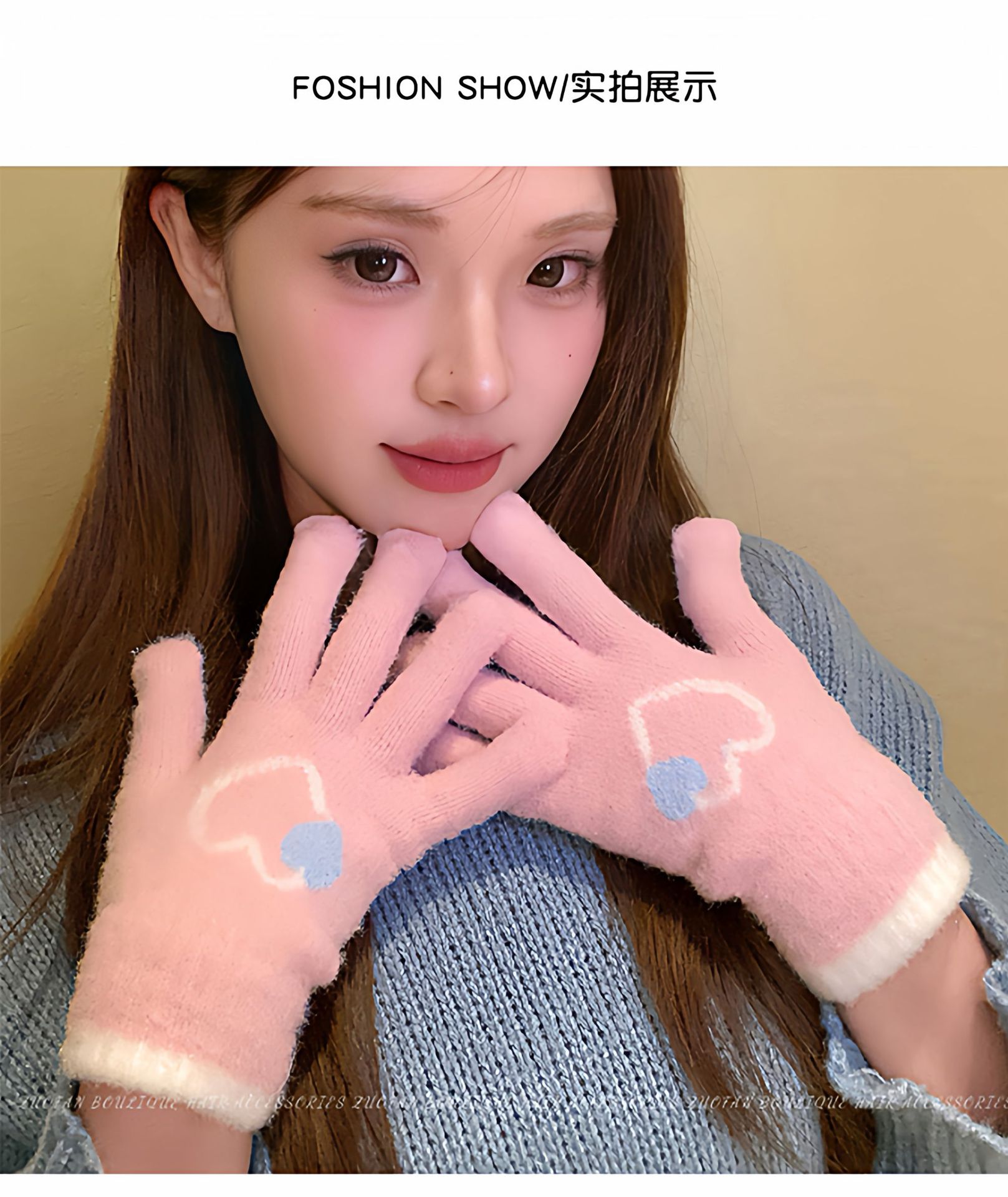 冬季新款保暖露指可触屏手套女针织可爱时尚拼色学生骑行手套批发
