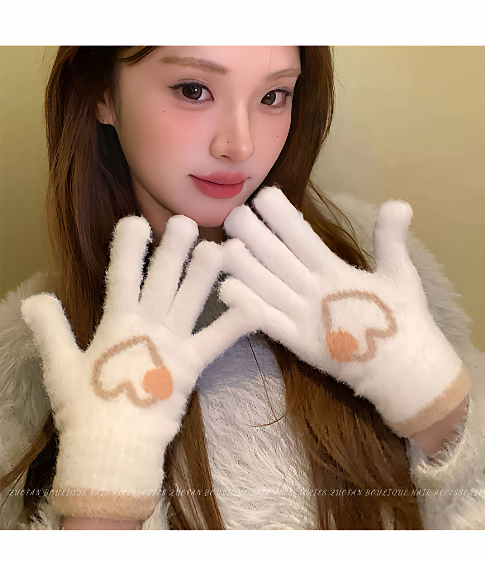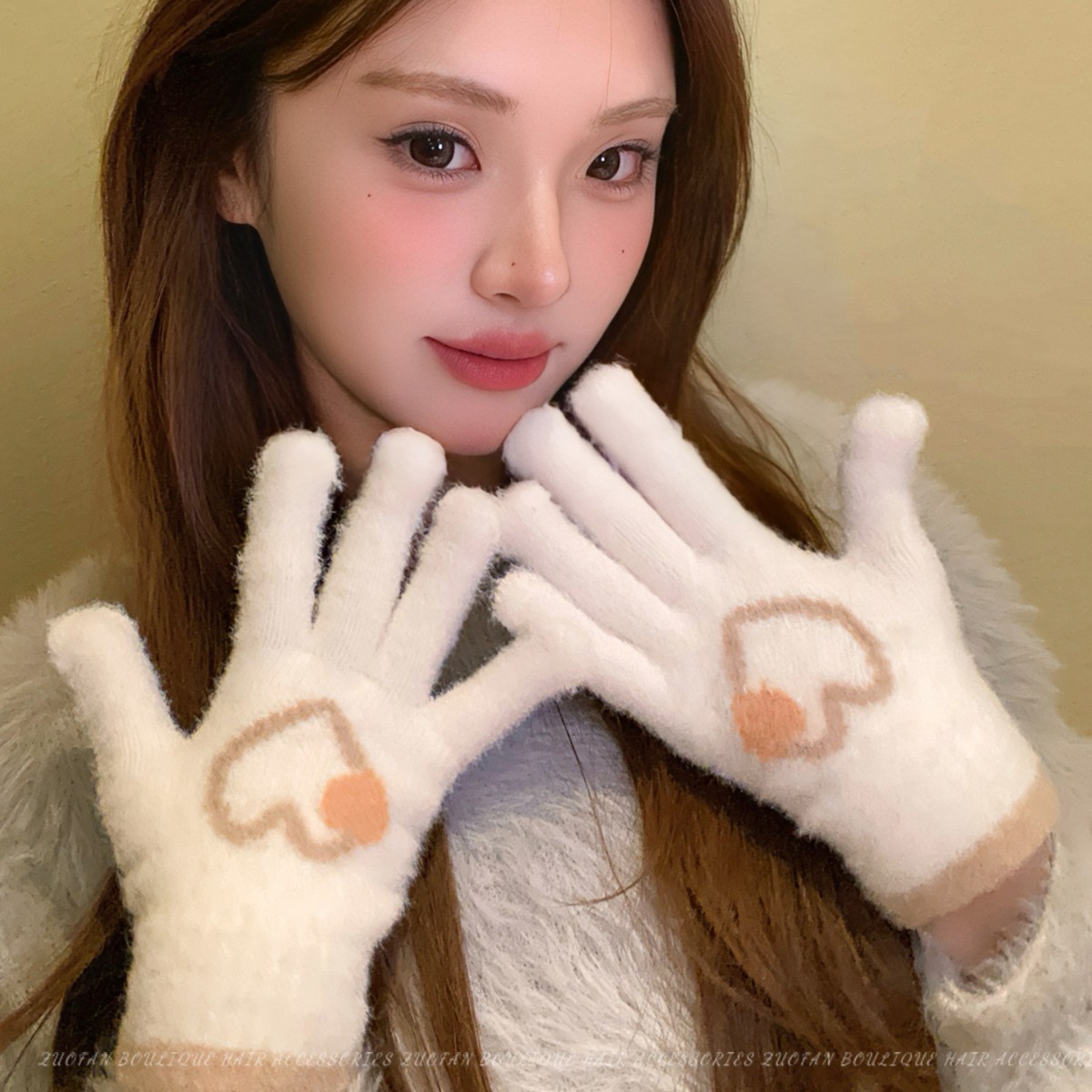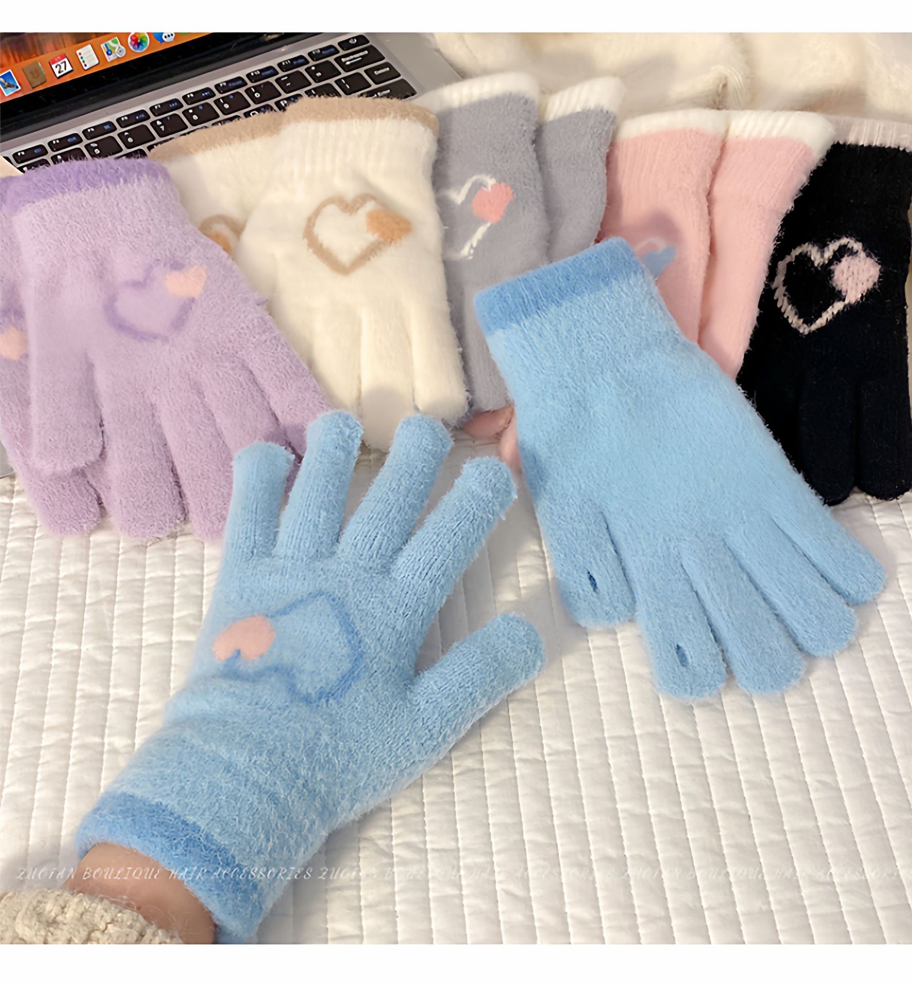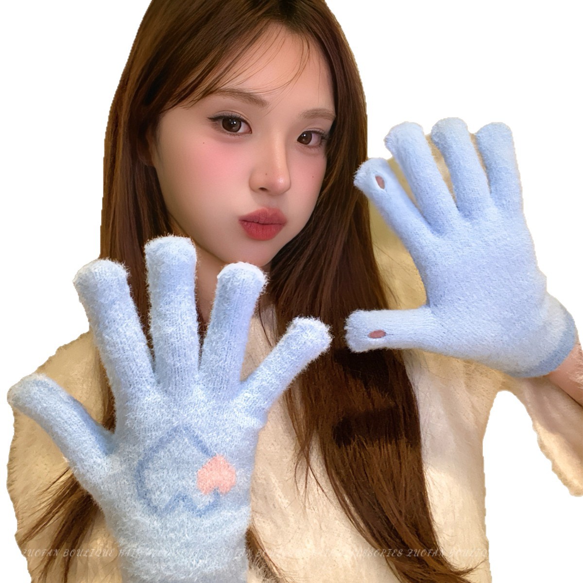 冬季新款保暖露指可触屏手套女针织可爱时尚拼色学生骑行手套批发