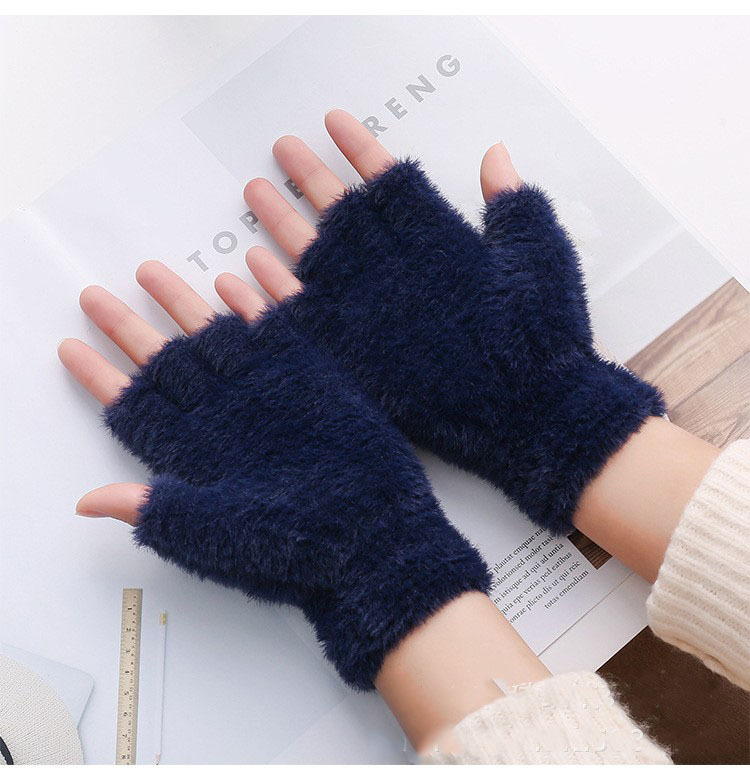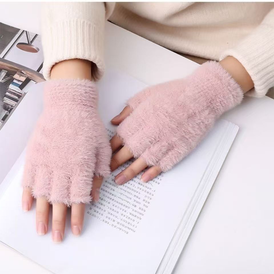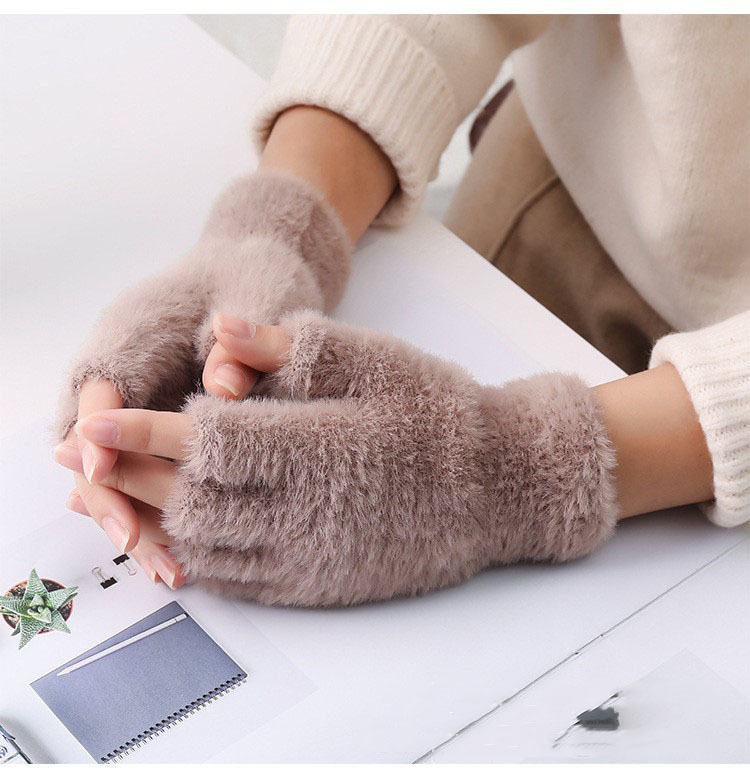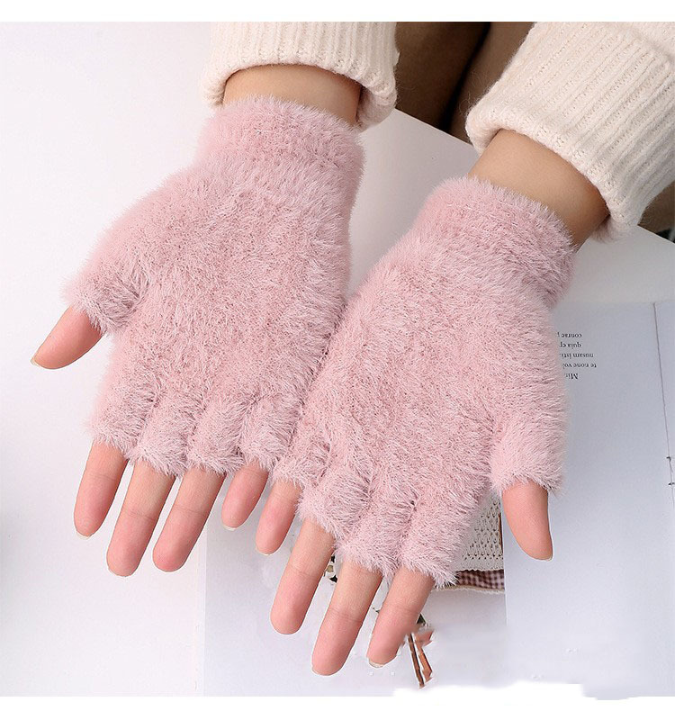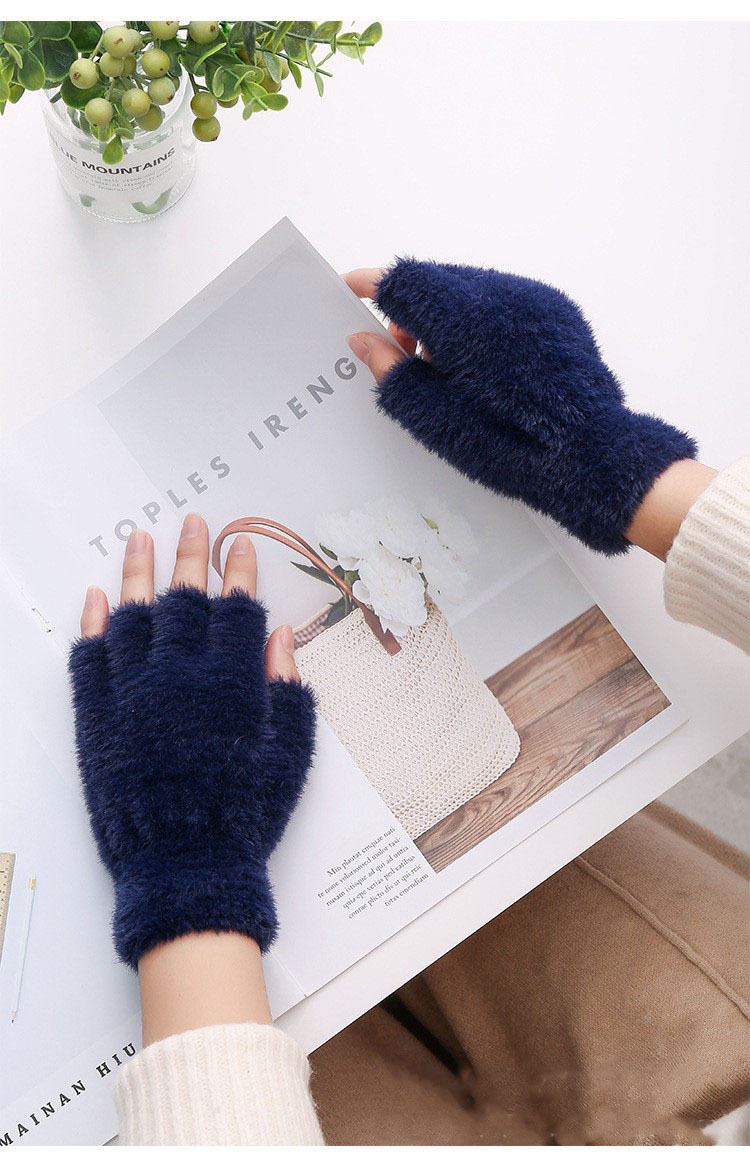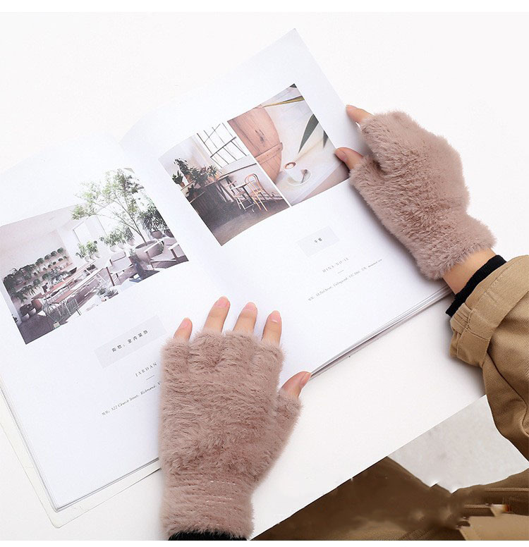 半指手套女冬季露五指加绒保暖防寒仿貂绒可触屏办公半指手套学生