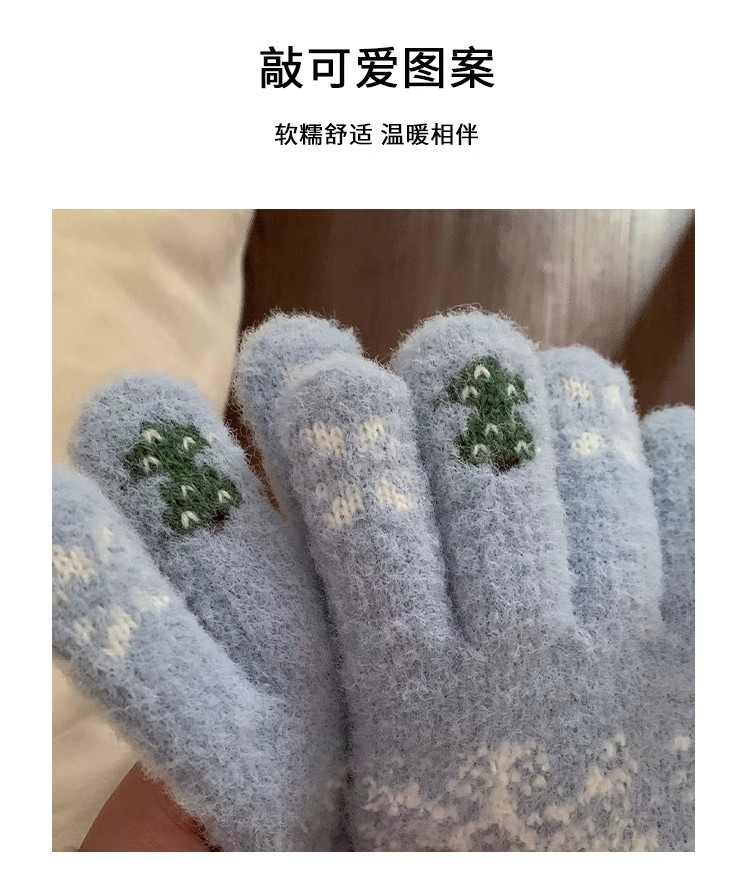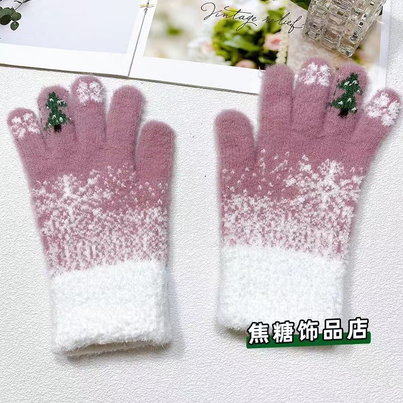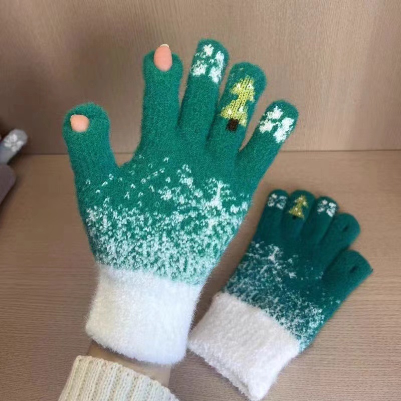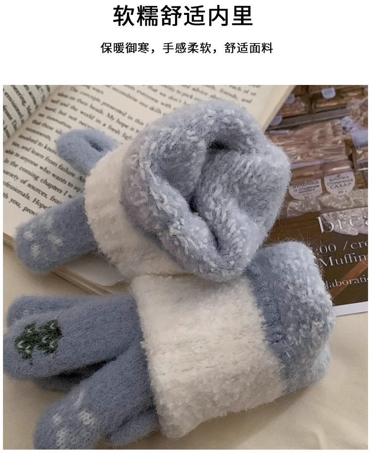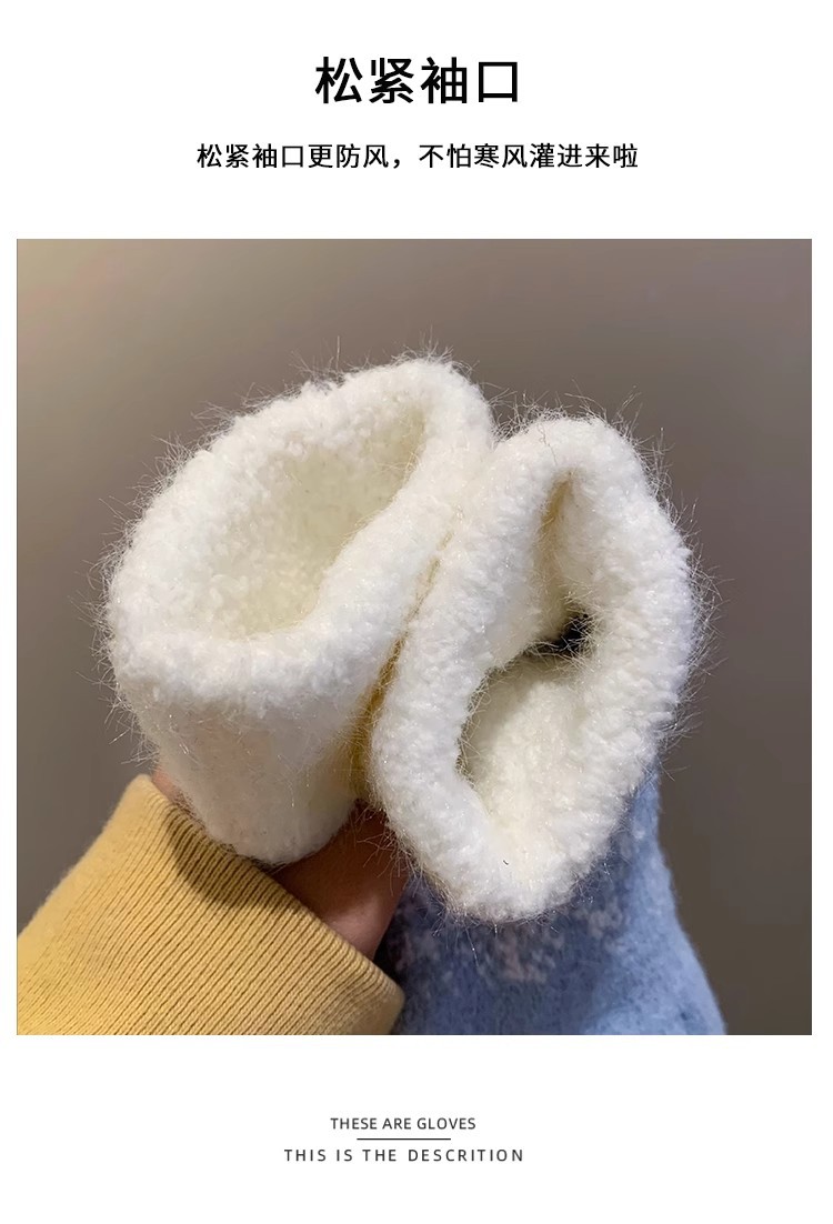 手套女士冬季新款露指加厚保暖大童可爱学生防寒毛线可触屏冬天男