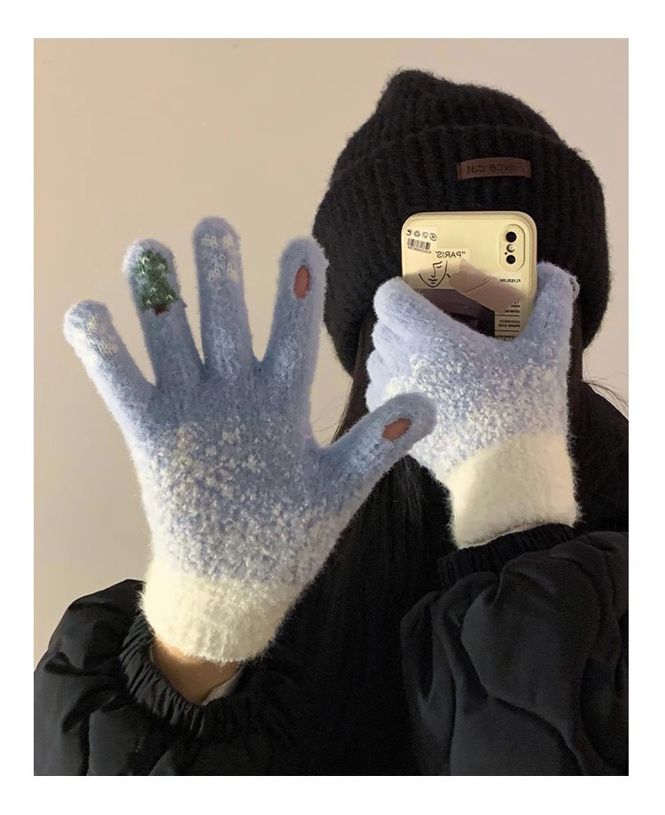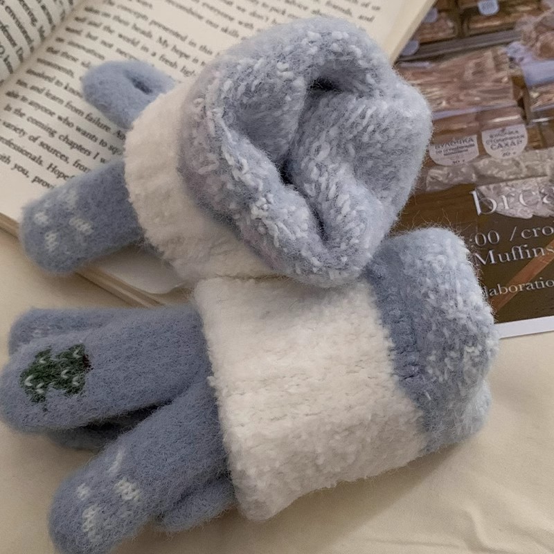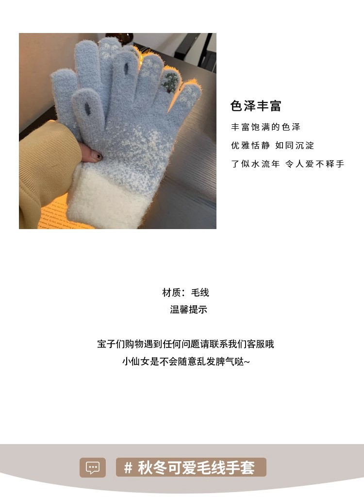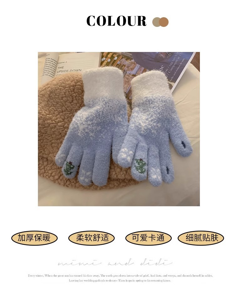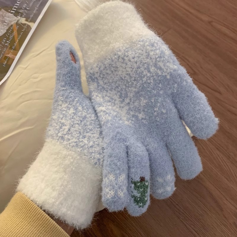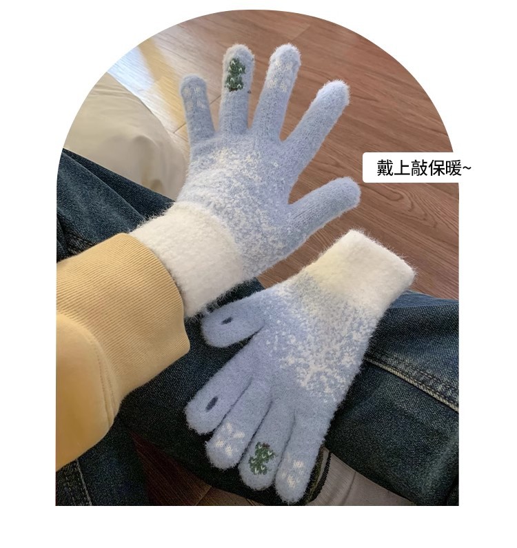 手套女士冬季新款露指加厚保暖大童可爱学生防寒毛线可触屏冬天男