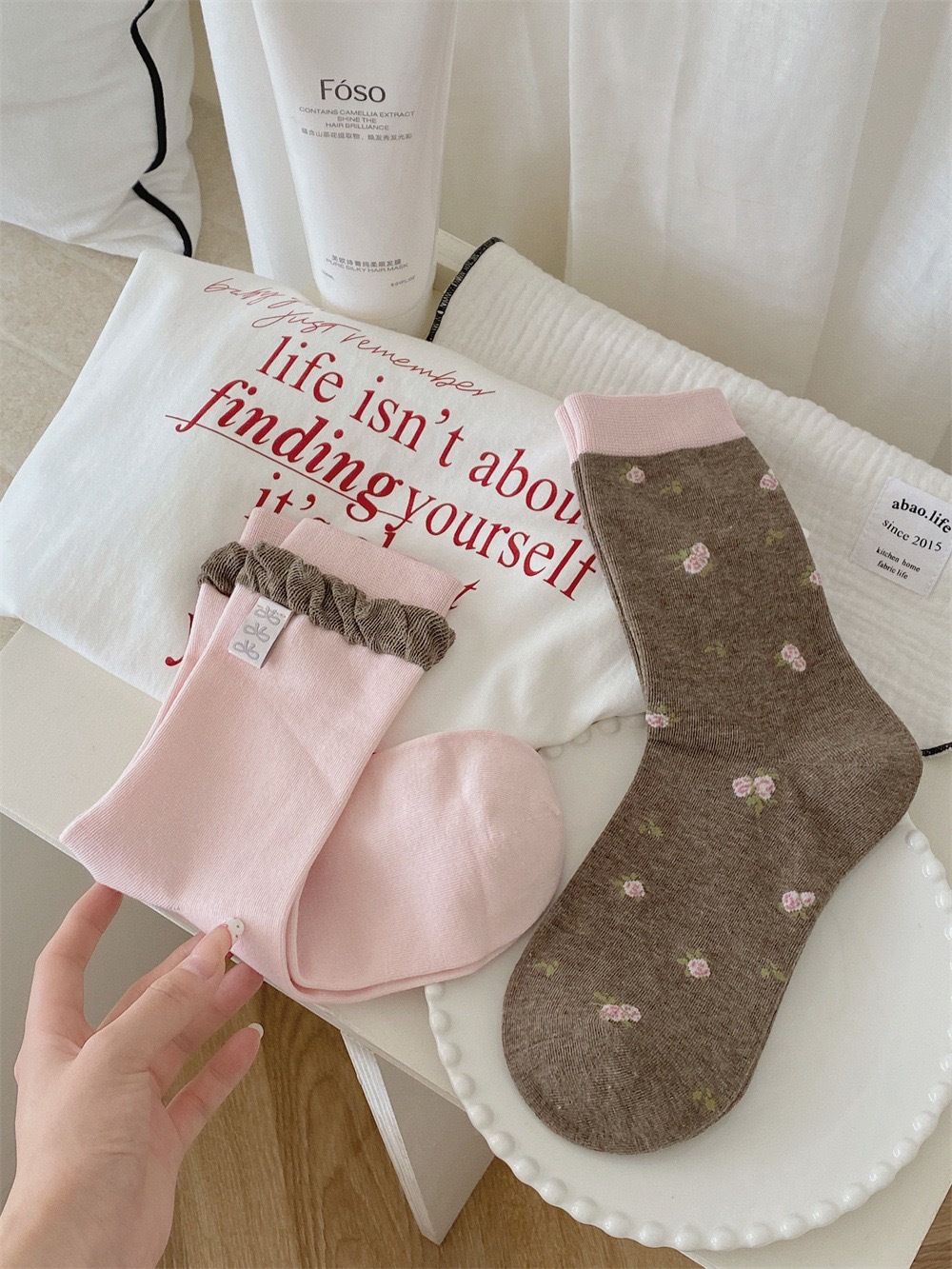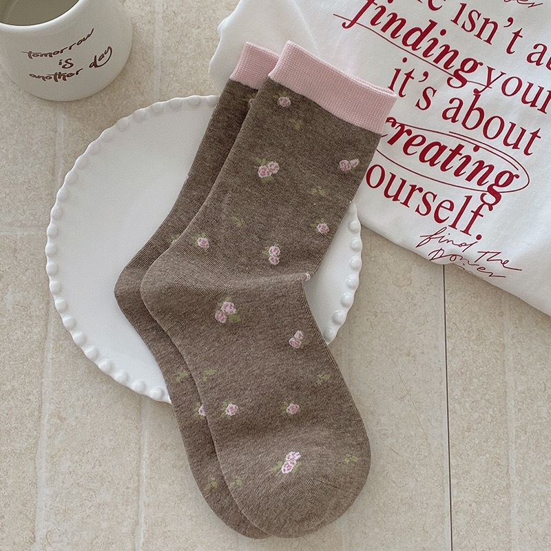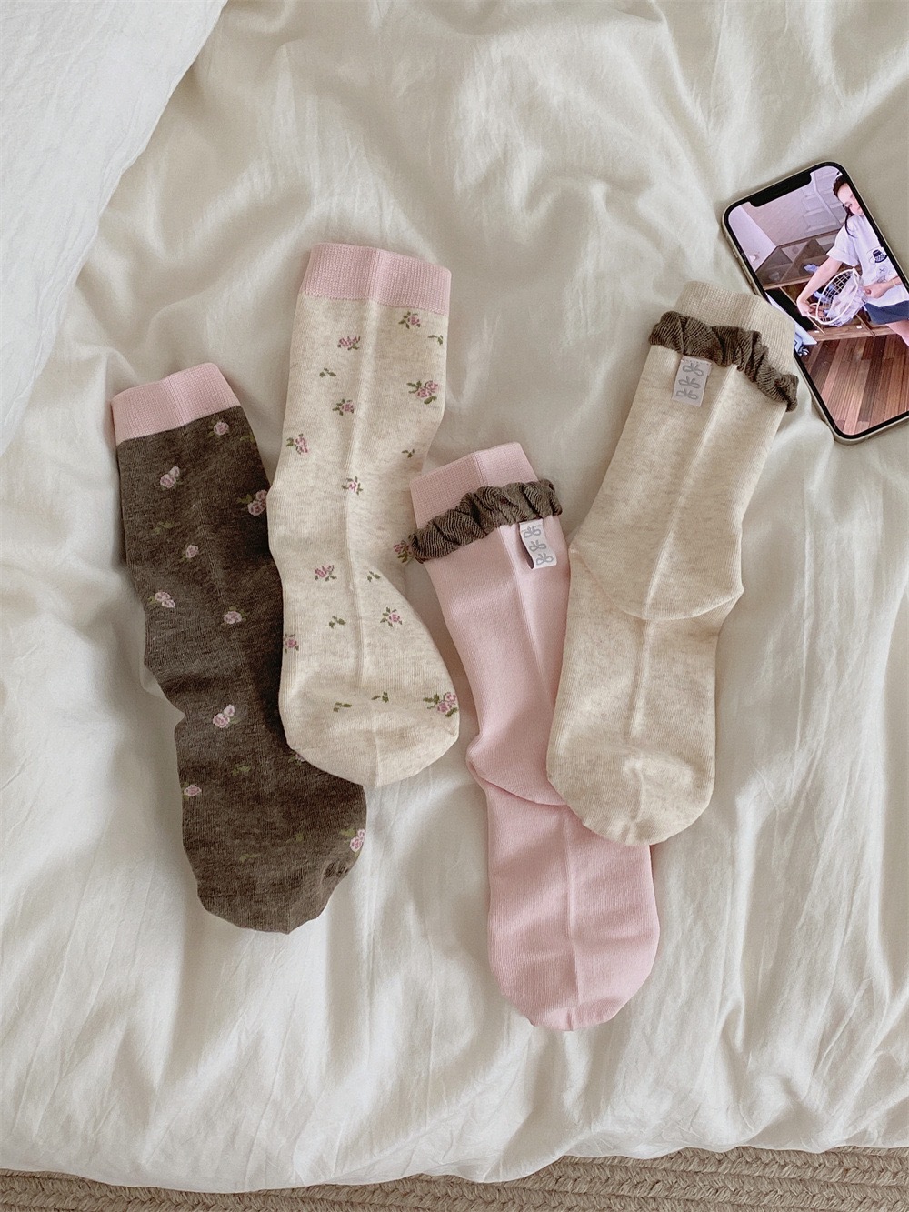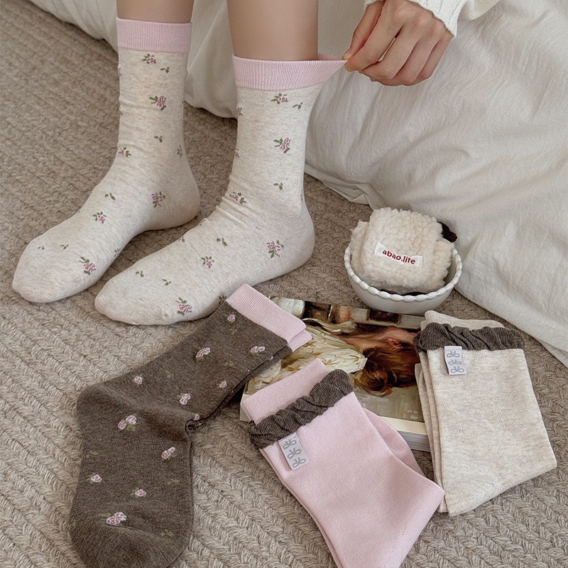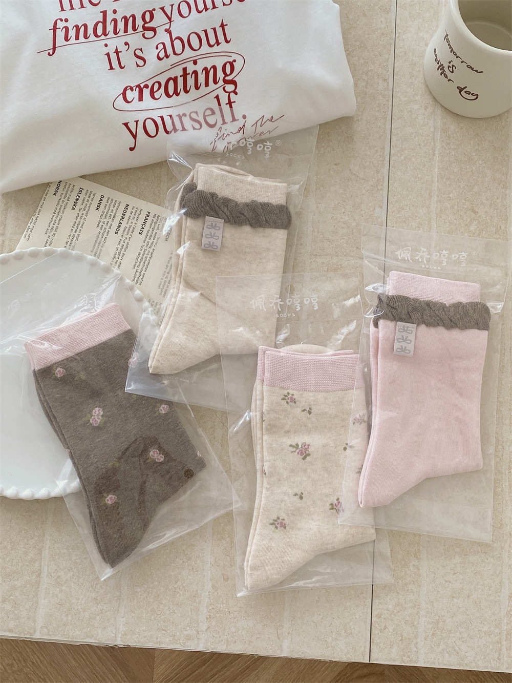 甜美少女风韩系小碎花袜子女袜ins日系百搭棉袜中筒袜系堆堆袜