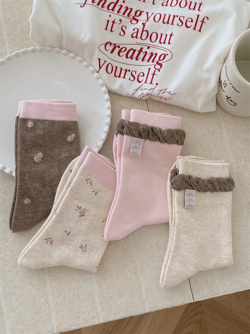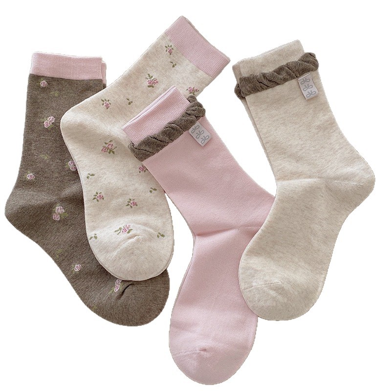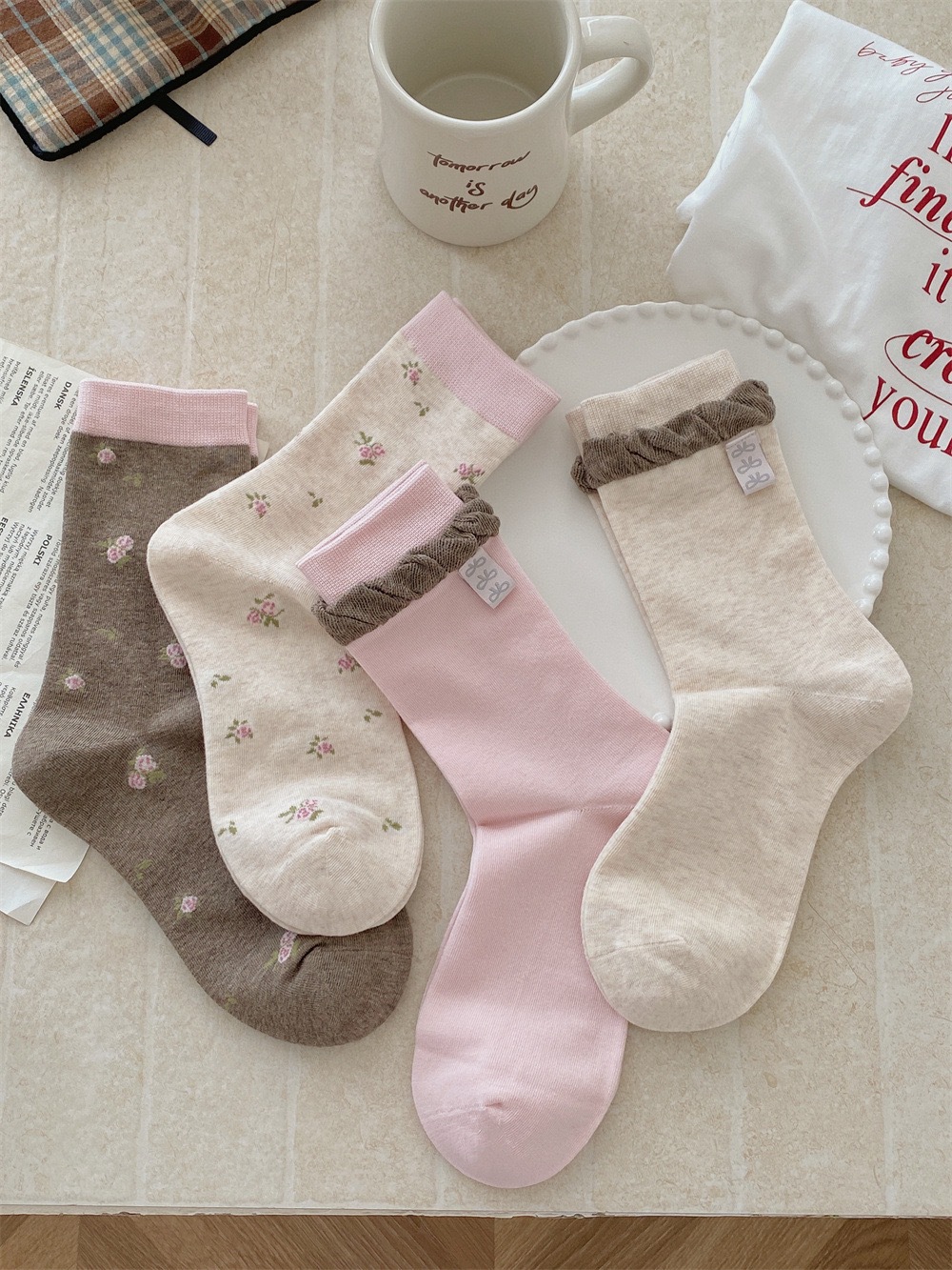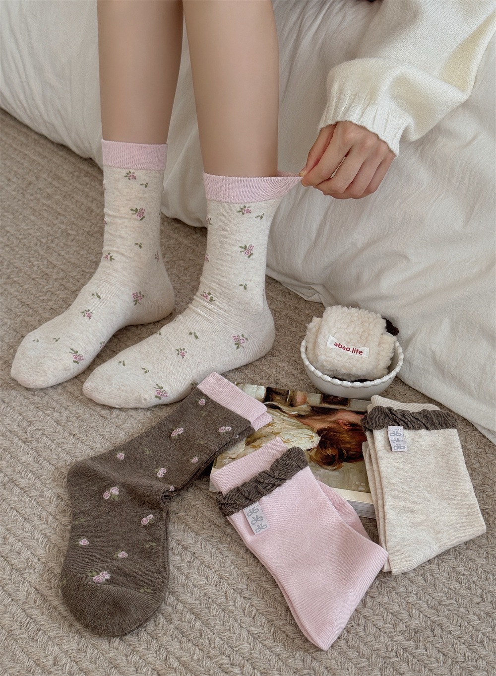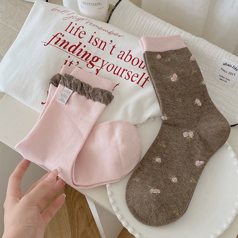 甜美少女风韩系小碎花袜子女袜ins日系百搭棉袜中筒袜系堆堆袜