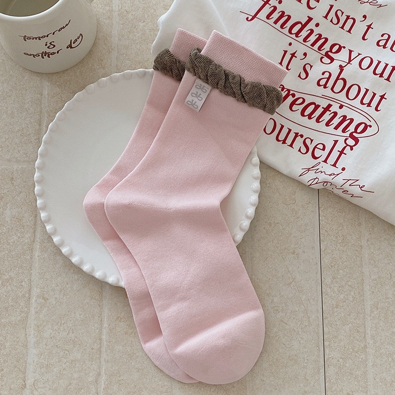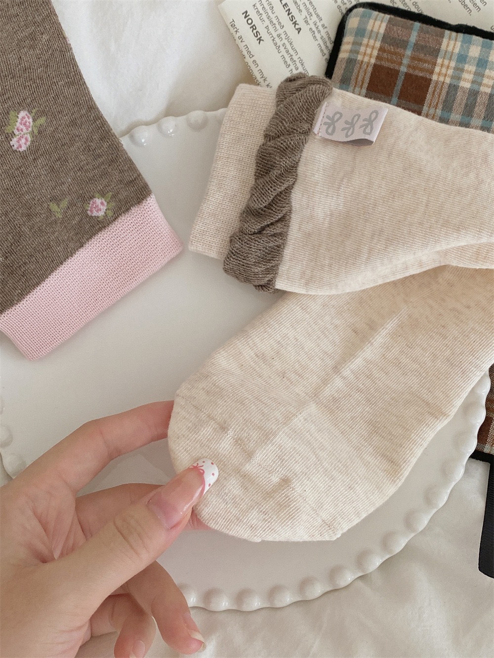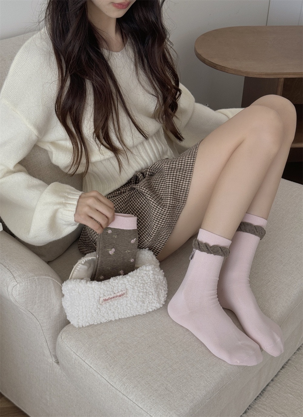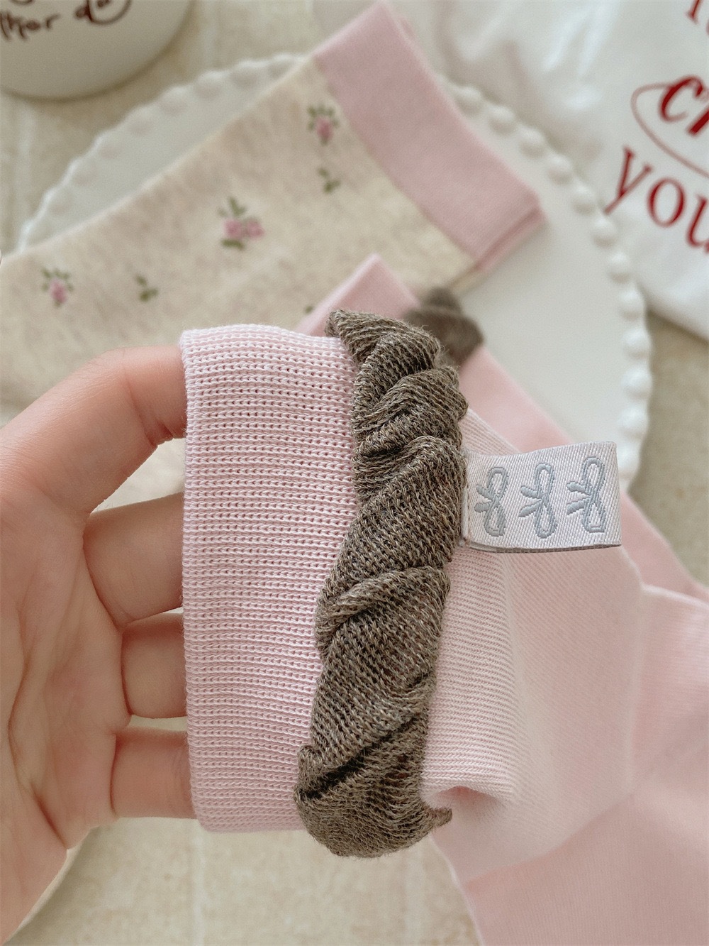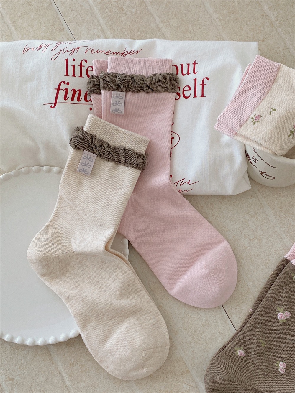 甜美少女风韩系小碎花袜子女袜ins日系百搭棉袜中筒袜系堆堆袜