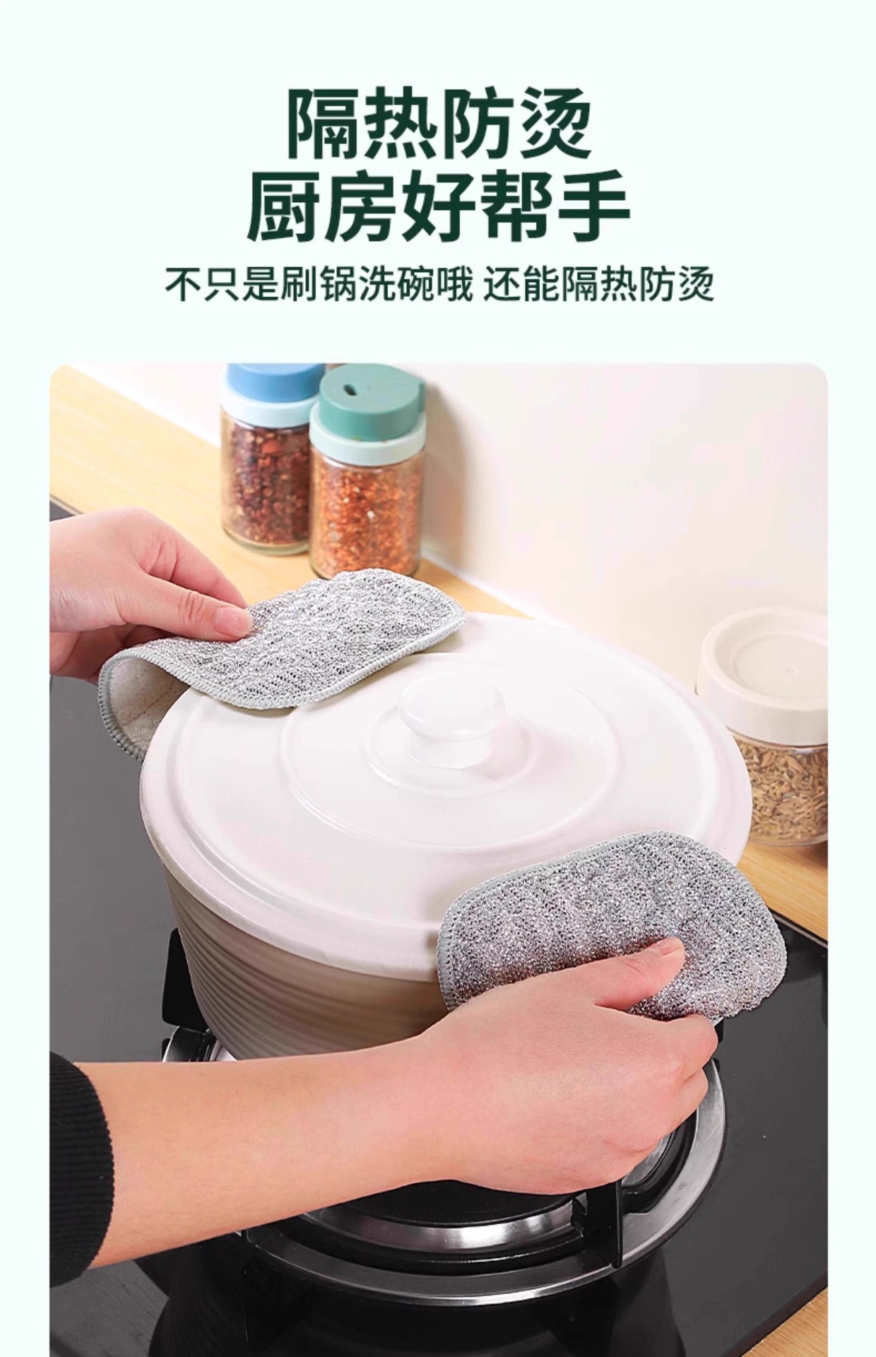 拍一发九双层加厚钢丝洗碗布厨房用不易沾油抹布