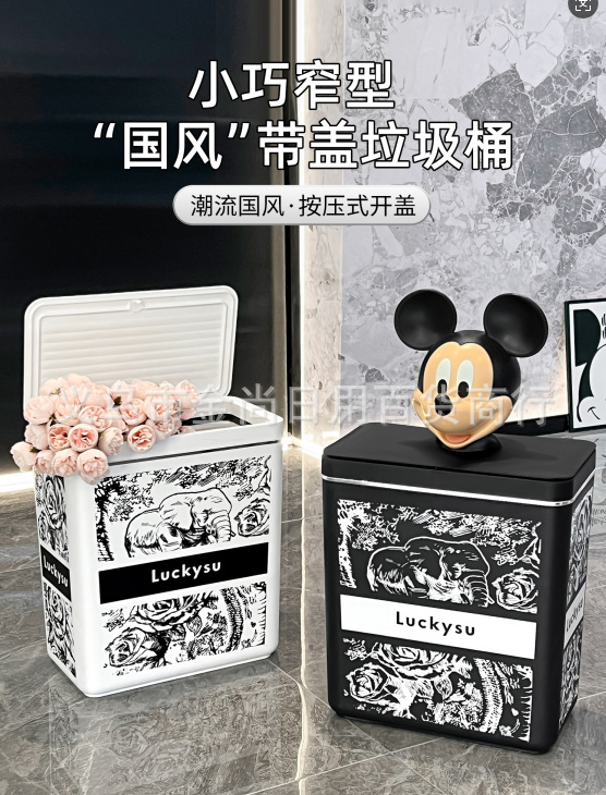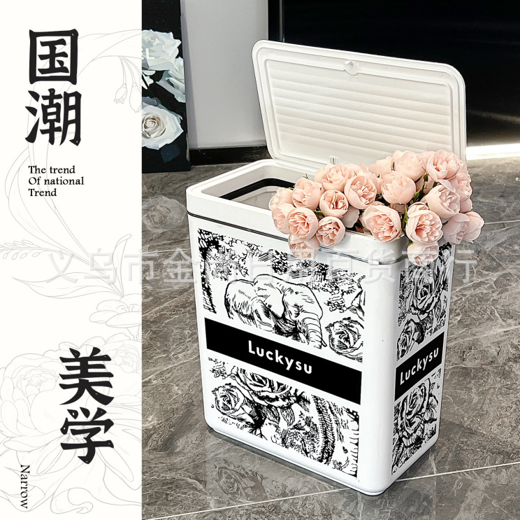 高颜值国风垃圾桶家用按压式开盖客厅卧室垃圾篓卫生间厕所垃圾桶