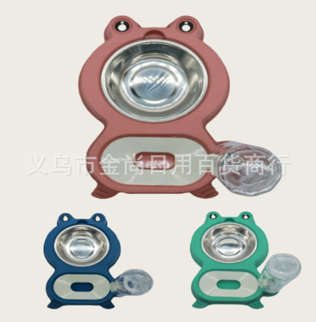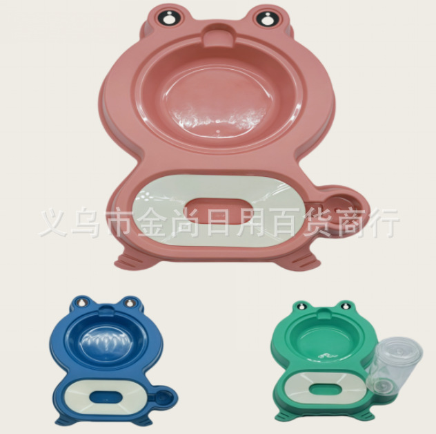 宠物青蛙造型猫碗狗碗塑料碗不锈钢碗饮水+慢食宠物食具宠物用品