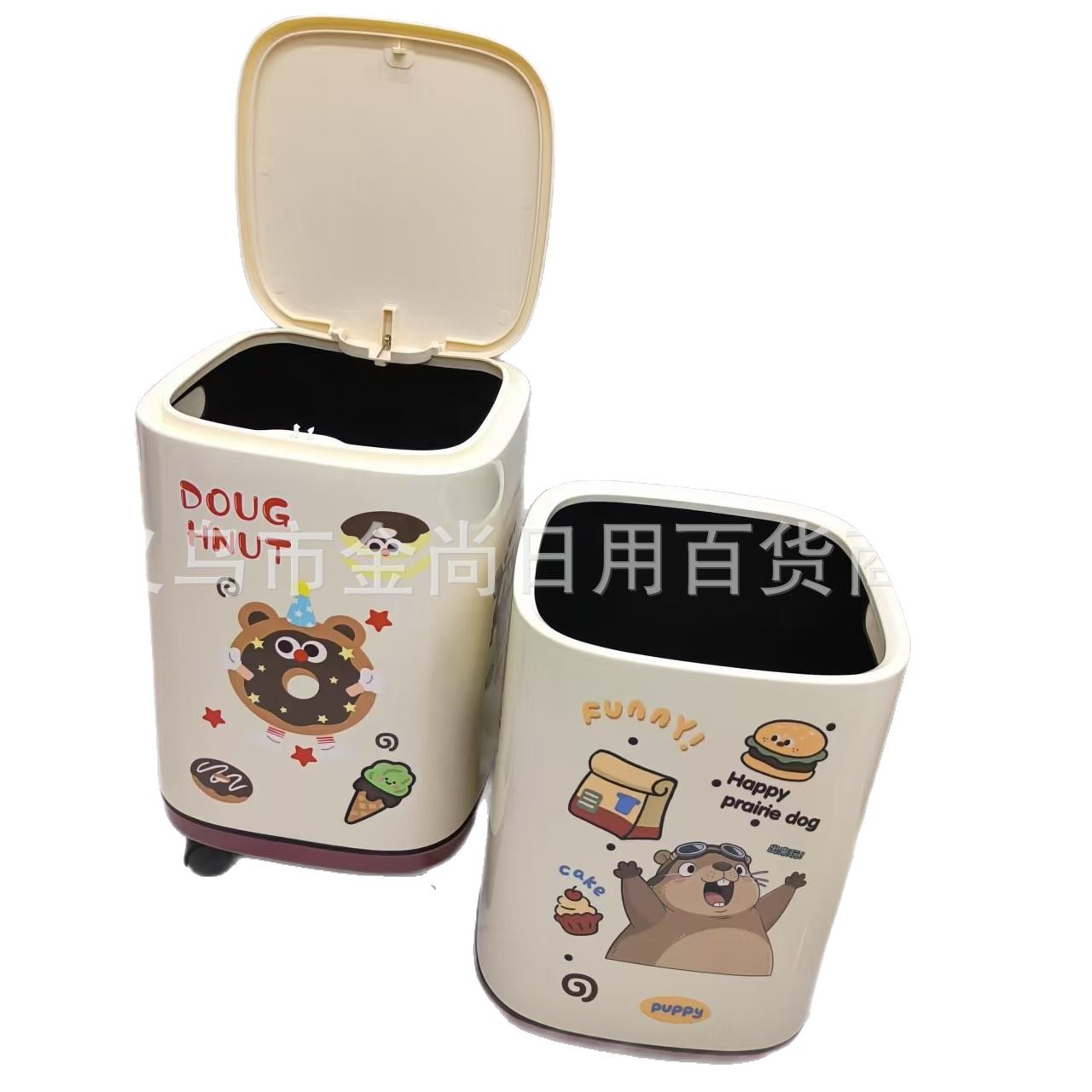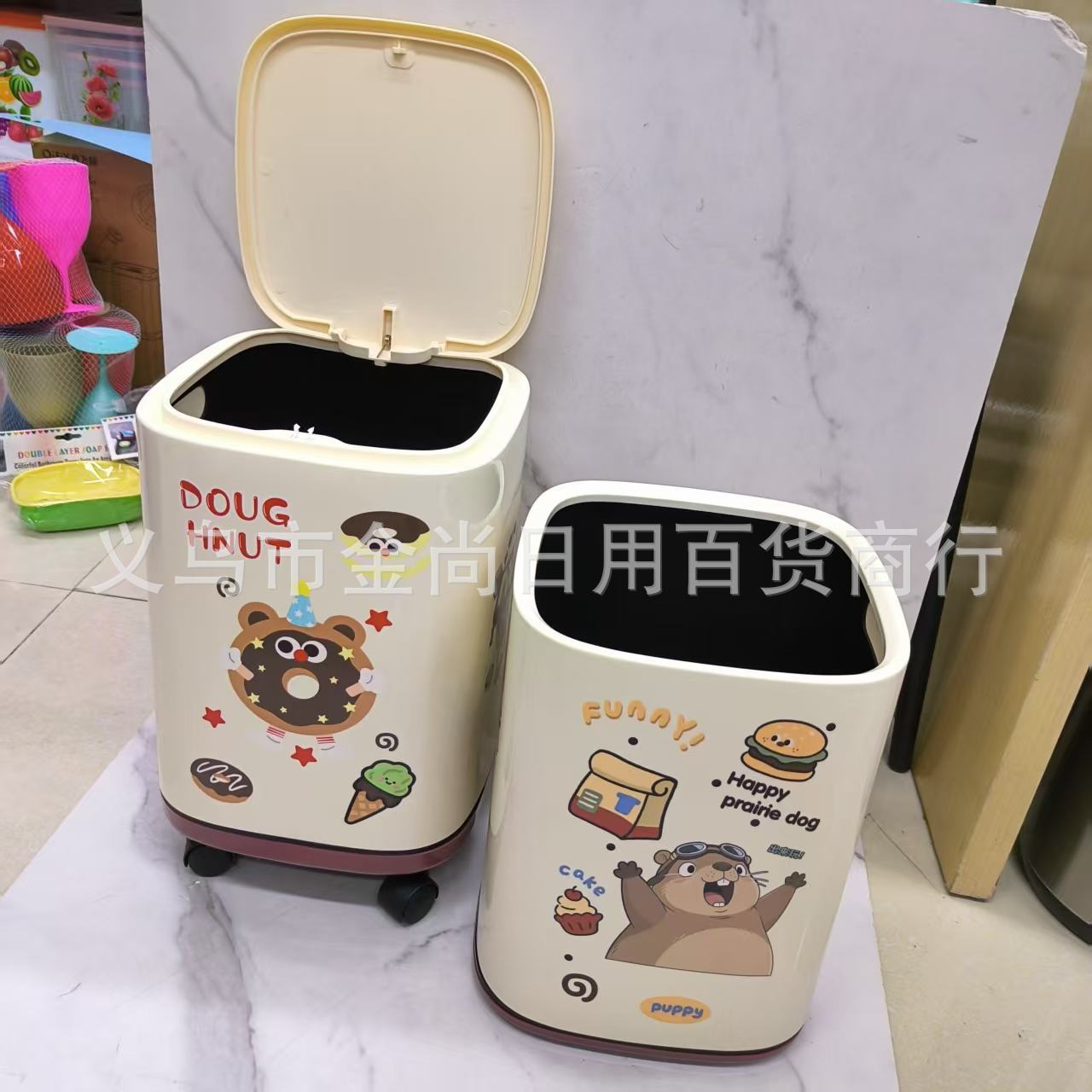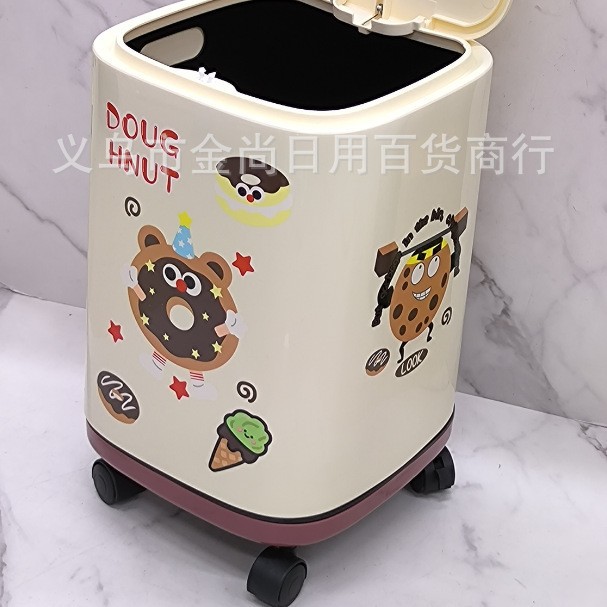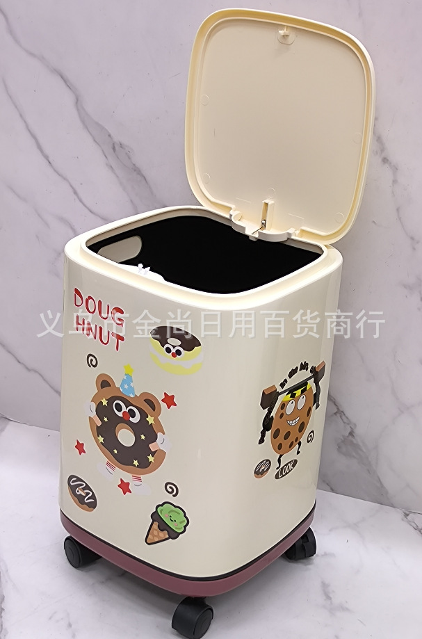 多巴胺方形滑轮带盖垃圾桶按压盖客厅卧室卫生间加厚桶身耐摔耐用