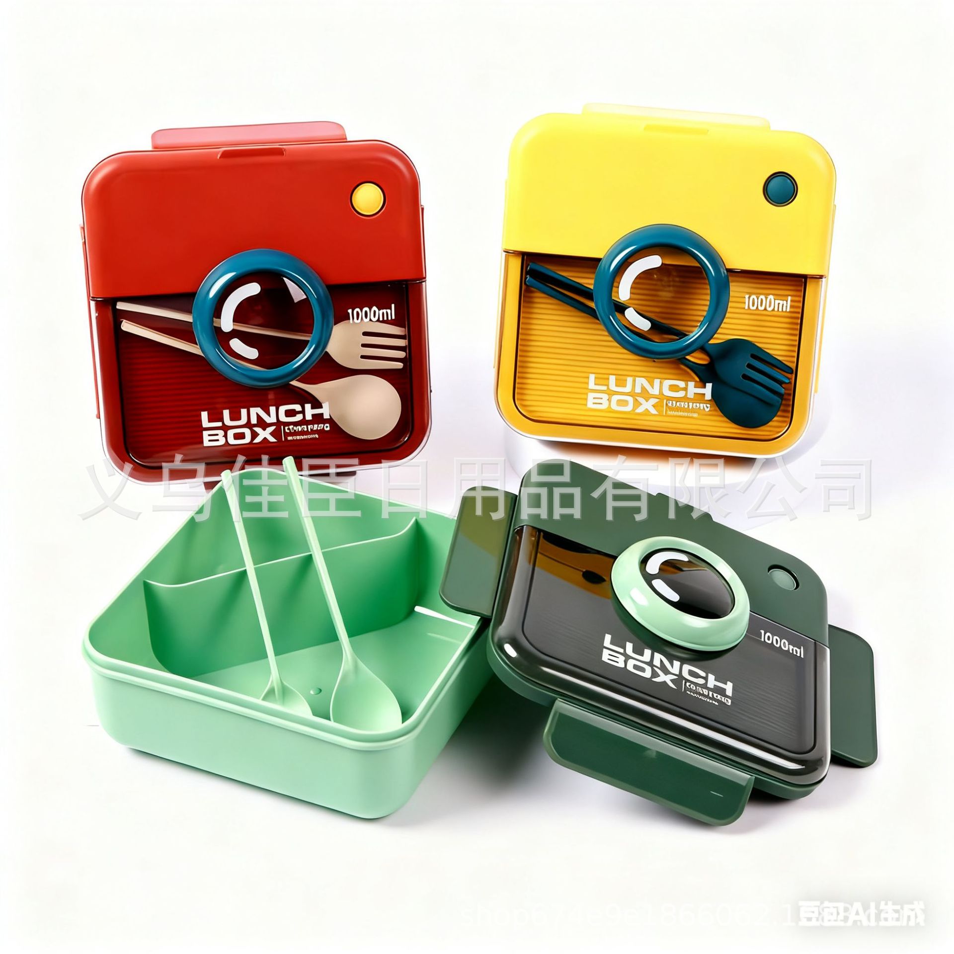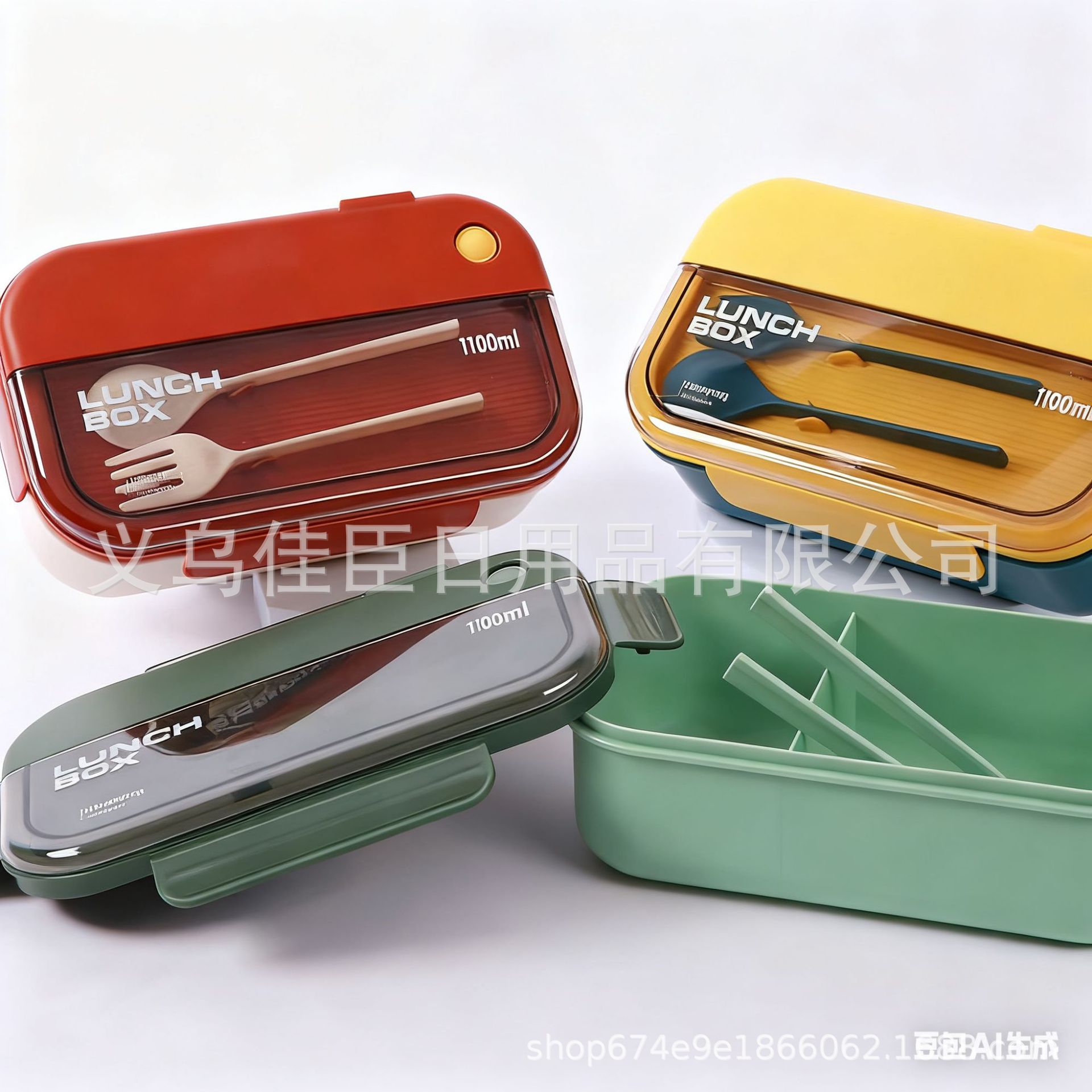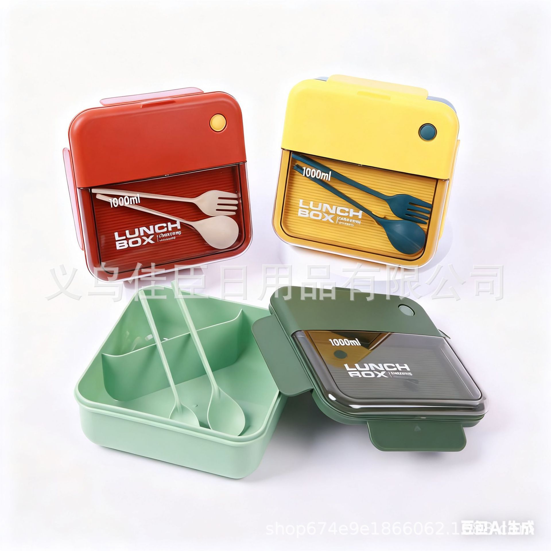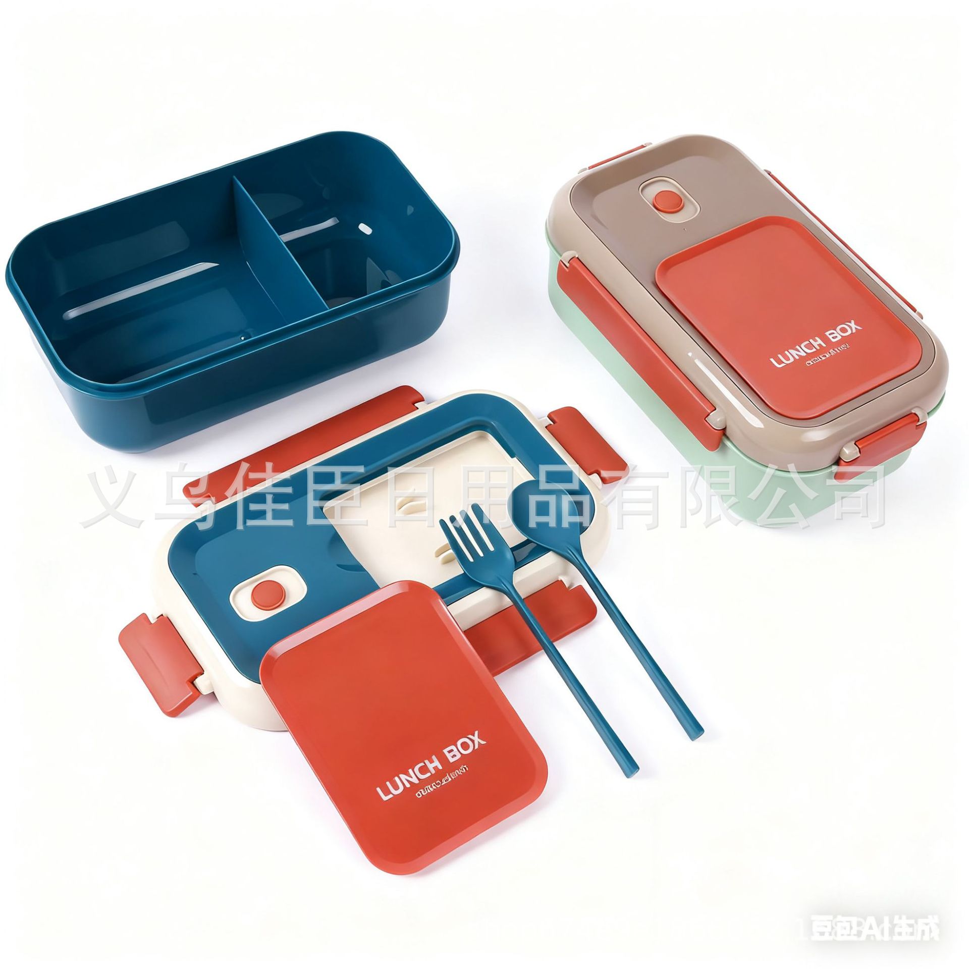 儿童饭盒带餐具高颜值多巴胺拼色午餐盒便当盒上班族学校带饭便携
