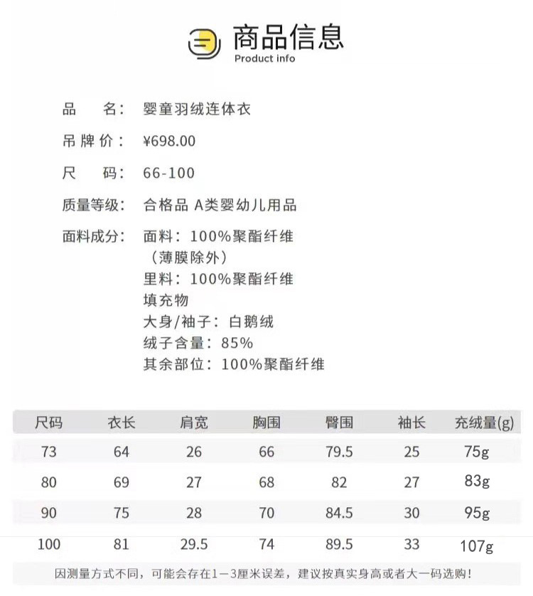 【鹅绒】婴幼儿羽绒服连体衣2025冬季新款男女小宝宝外穿加厚爬服