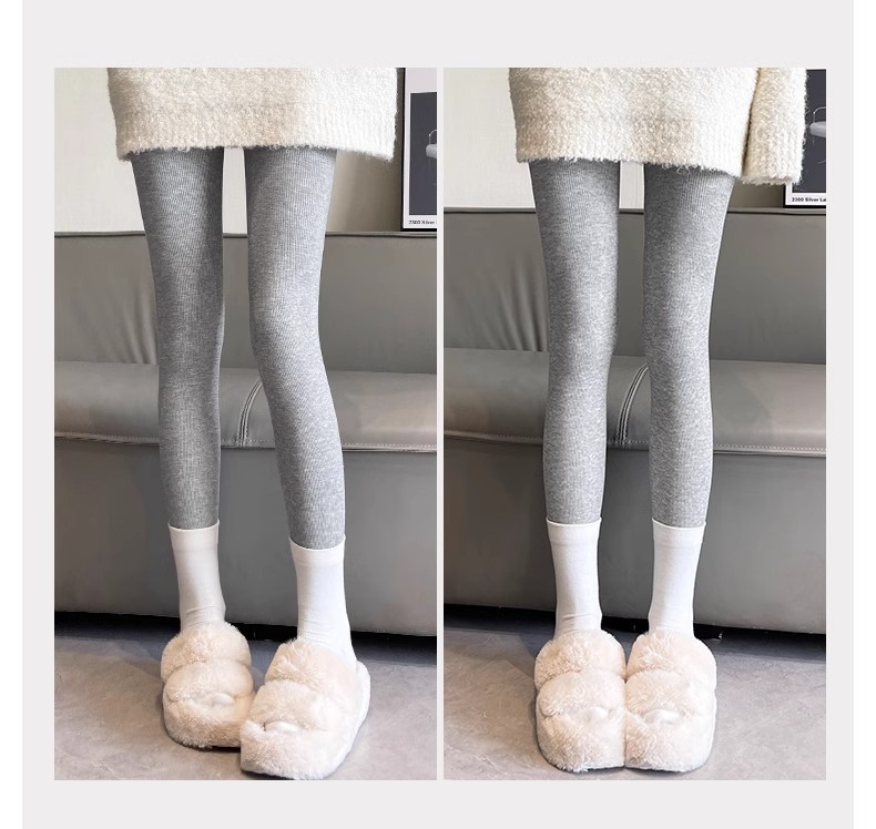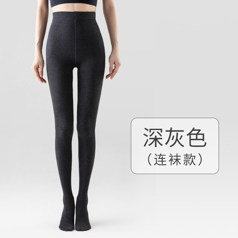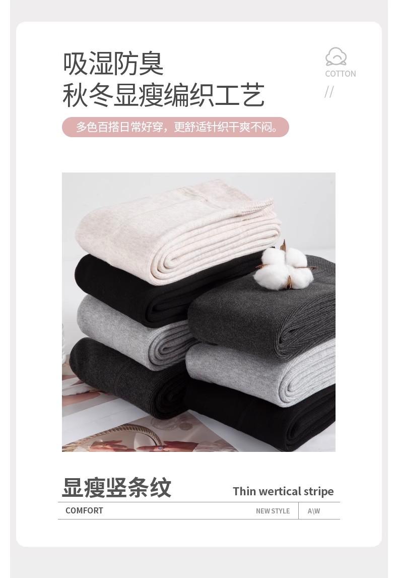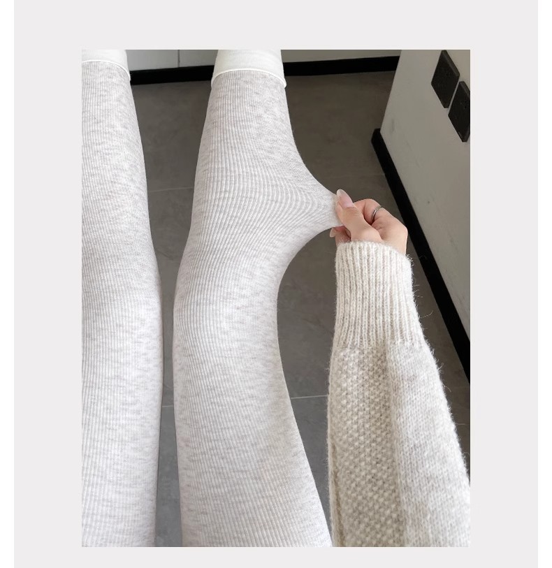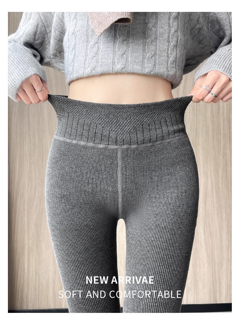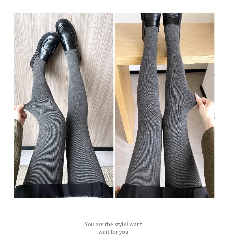 灰色竖条纹打底裤女秋冬加绒加厚保暖棉裤连裤袜条纹针织紧身秋裤