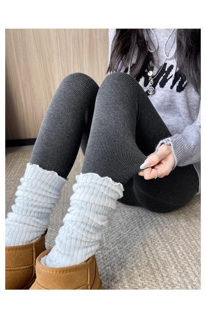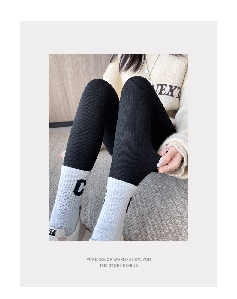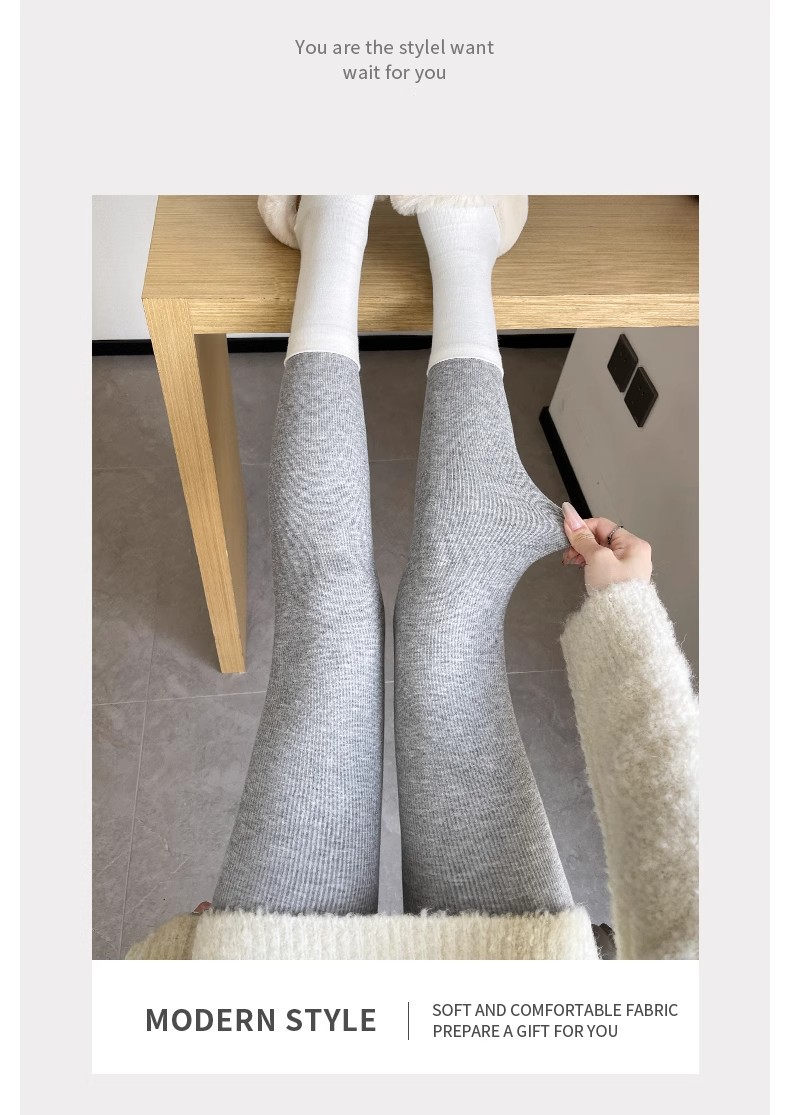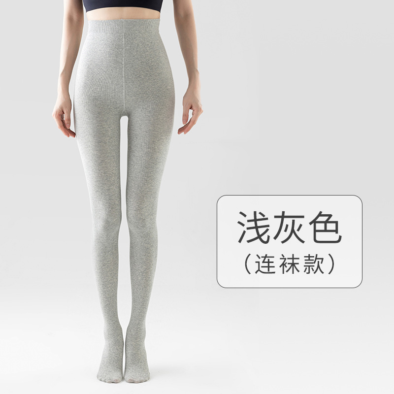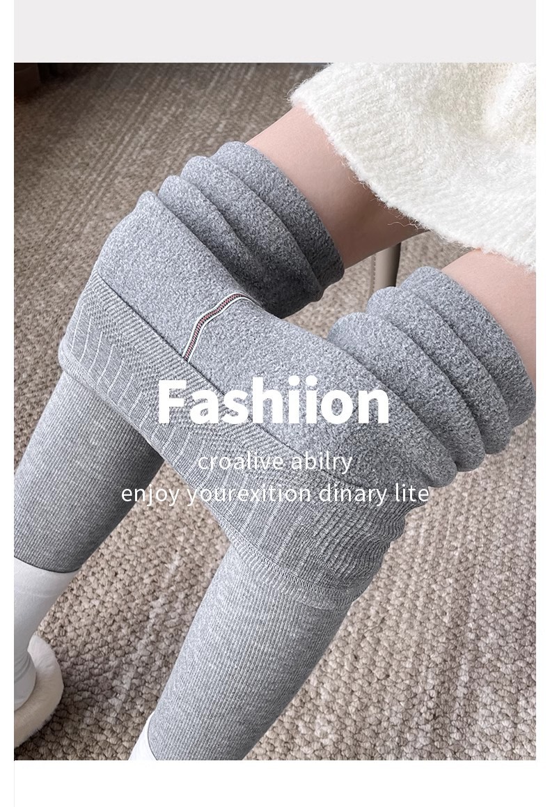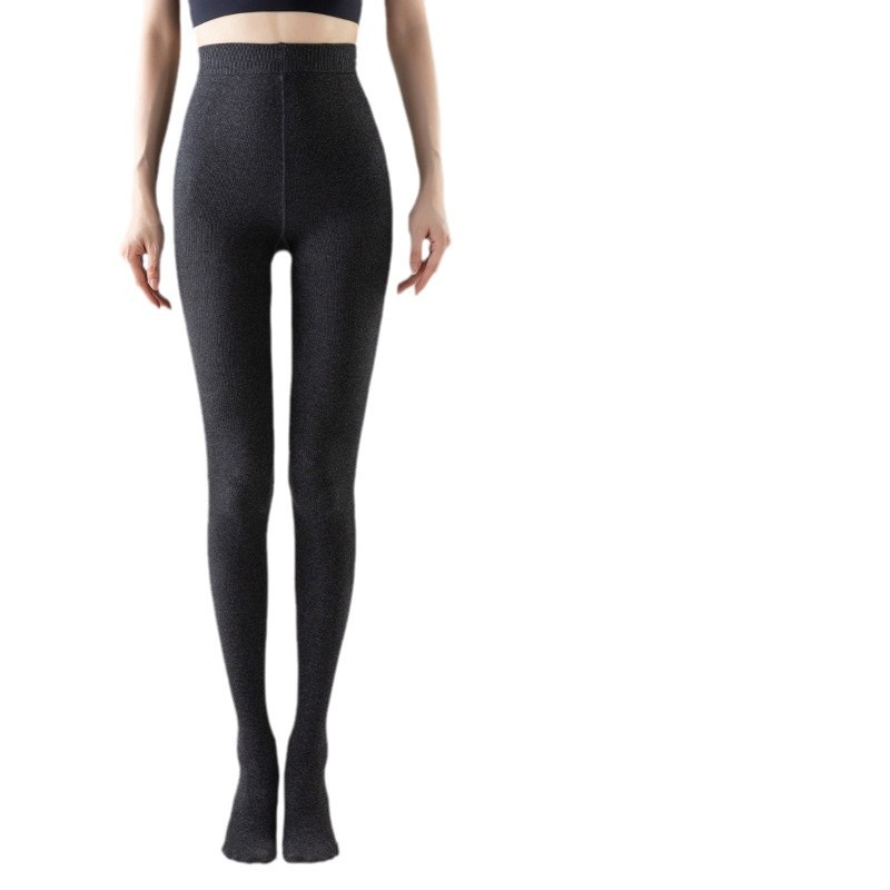 灰色竖条纹打底裤女秋冬加绒加厚保暖棉裤连裤袜条纹针织紧身秋裤