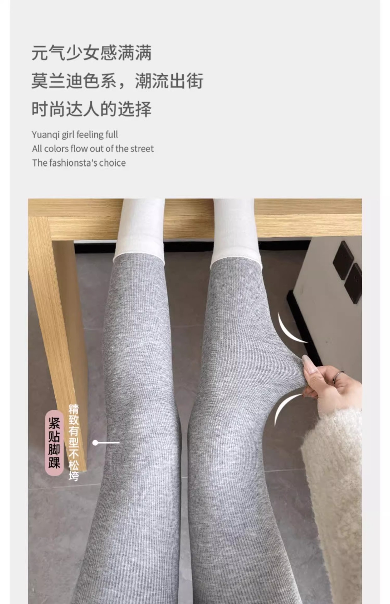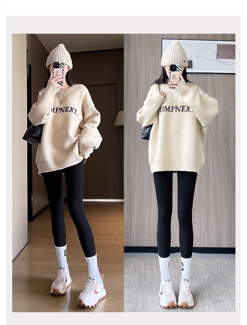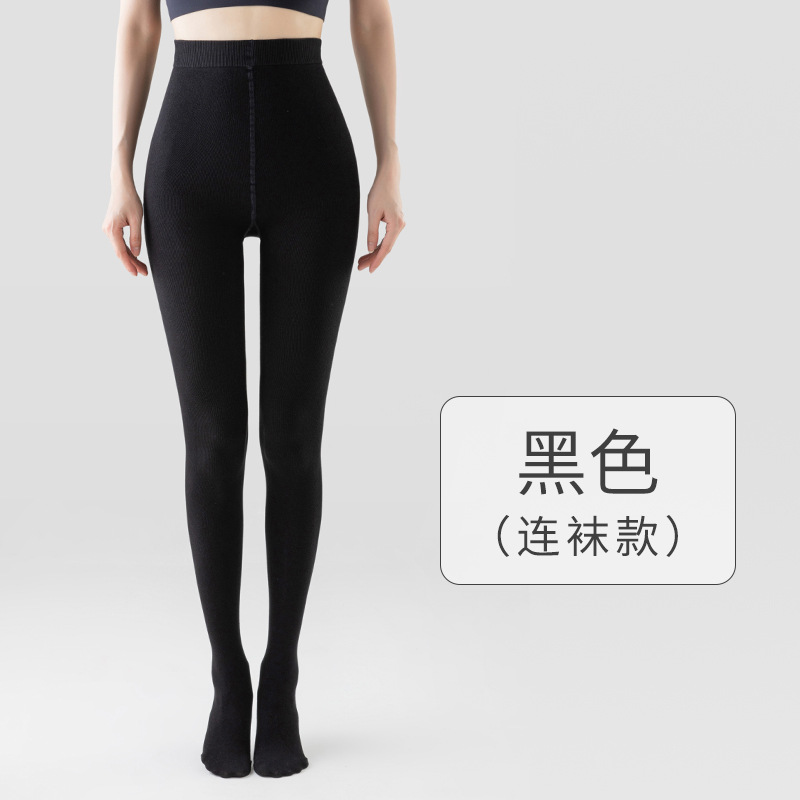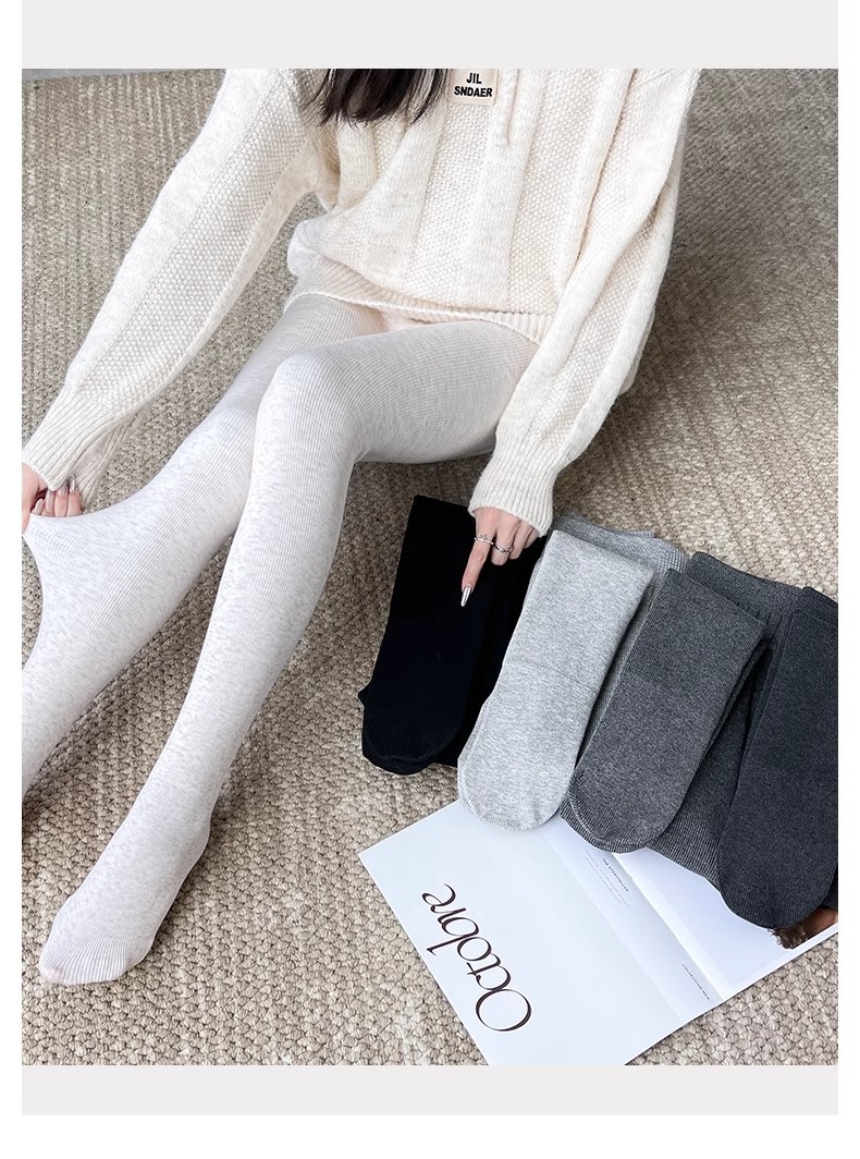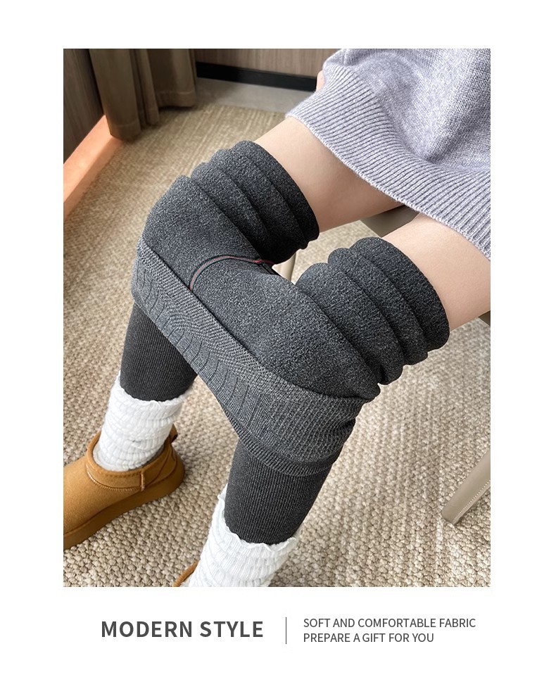 灰色竖条纹打底裤女秋冬加绒加厚保暖棉裤连裤袜条纹针织紧身秋裤