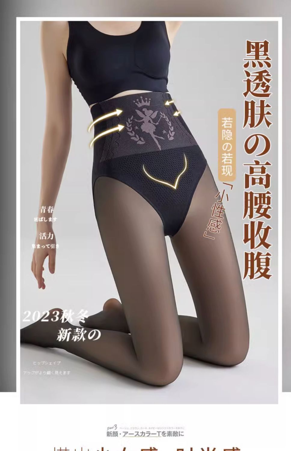 同款水光袜女秋冬裸感透肤丝袜不掉档高腰收腹黑透肤光腿神器
