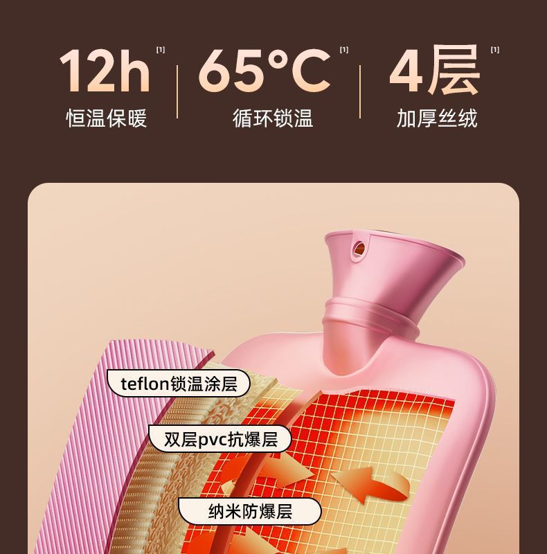 冬季注水热水袋加厚毛绒套便携款暖水袋办公室学生保暖神器暖手宝