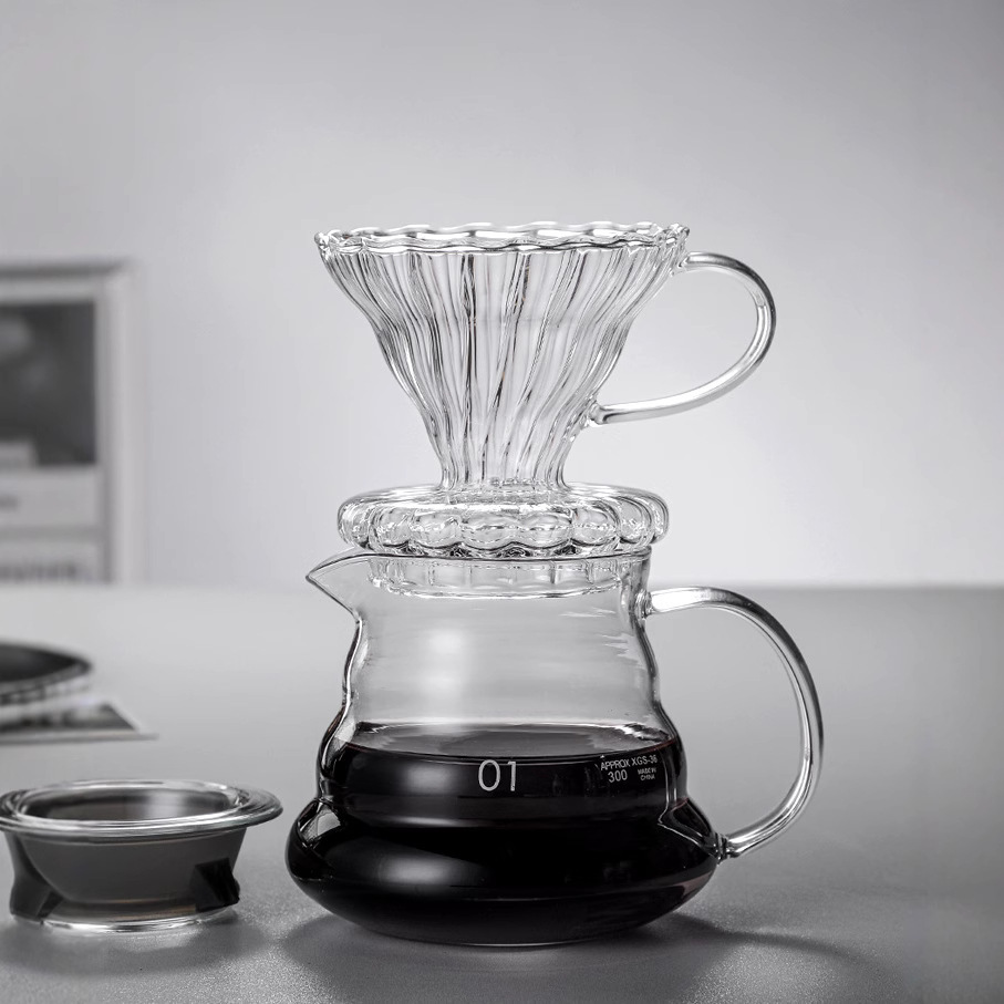 批发高硼硅玻璃咖啡手冲云朵壶耐热美式摩卡刻度过滤分享壶套装