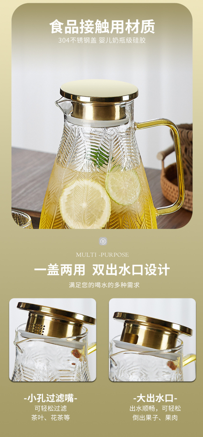 轻奢冷水壶耐高温玻璃防爆大容量家用果汁水杯冷泡茶壶凉水壶