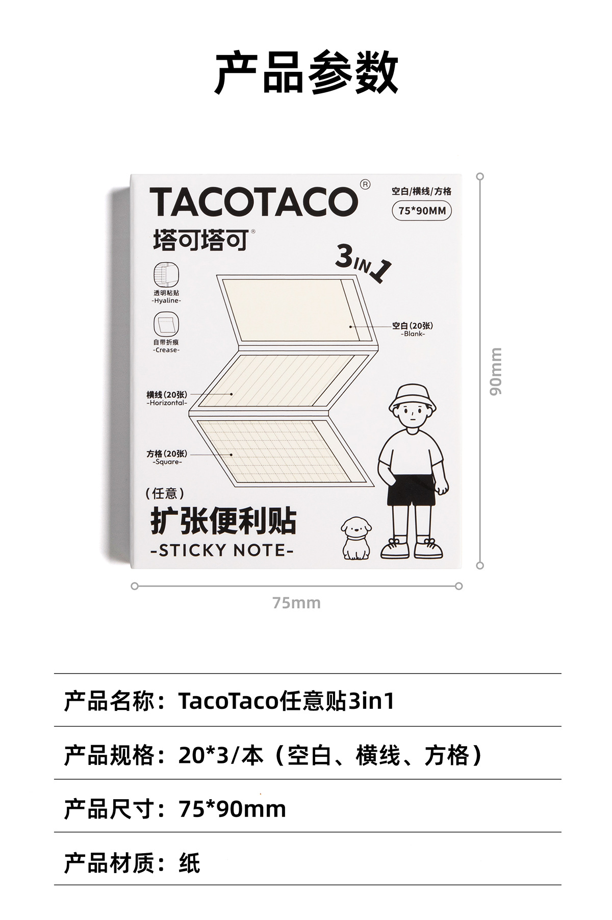 TACOTACO扩张便利贴三合一不遮挡可折叠学生用可撕有粘性便签贴纸