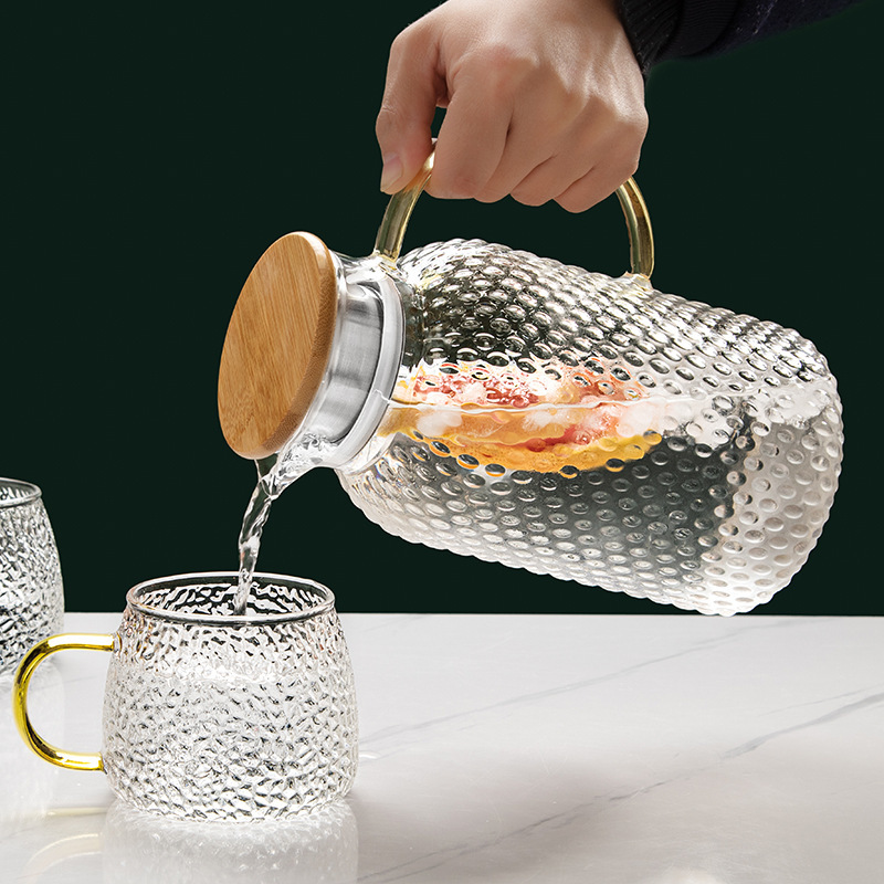 透明玻璃冷水壶家用大容量加厚玻璃凉水壶柠檬果汁米粒壶厂家批发