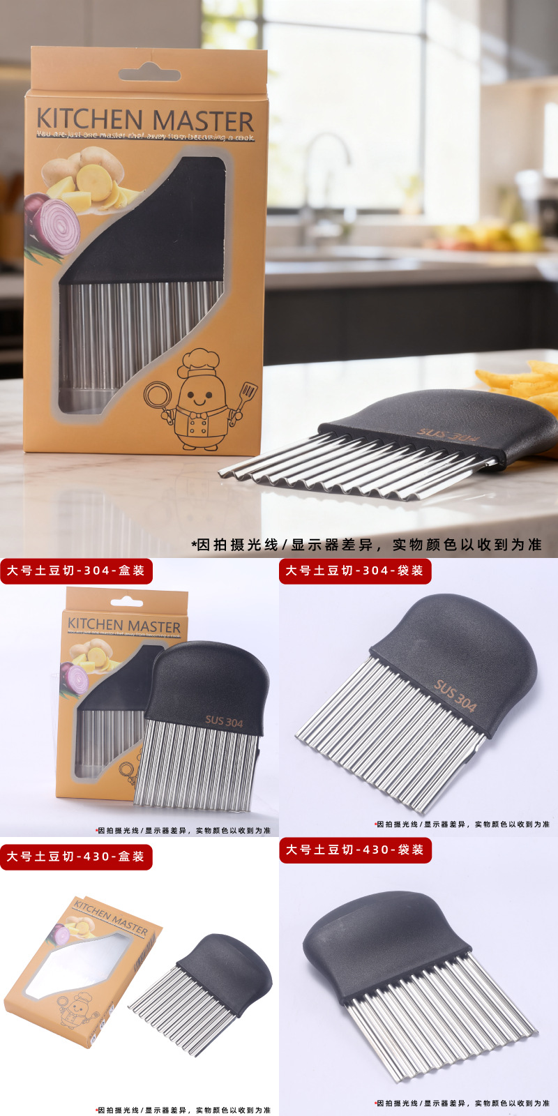 跨境包装304不锈钢狼牙土豆刀波浪刀波纹刀多功能切菜神器切薯片