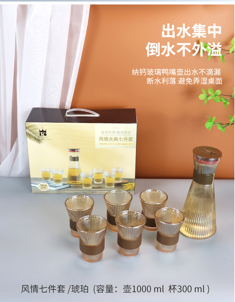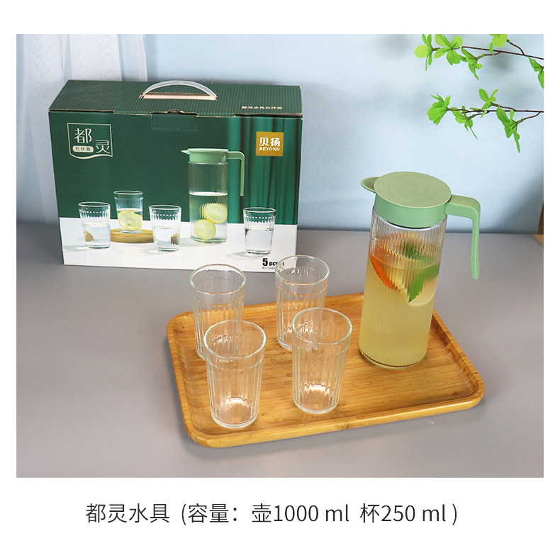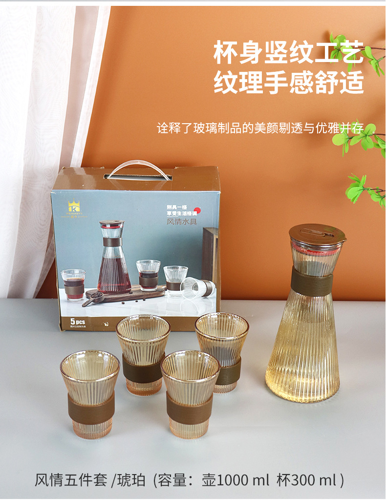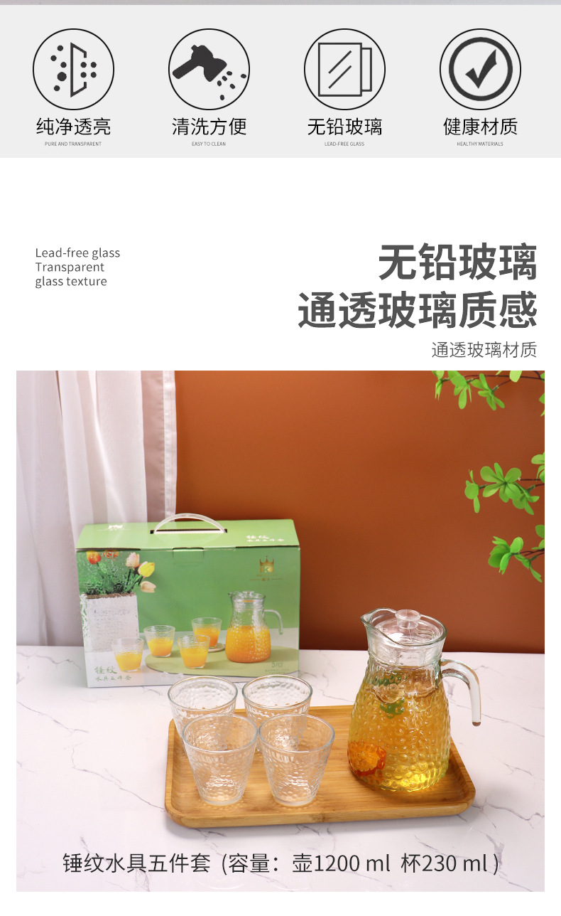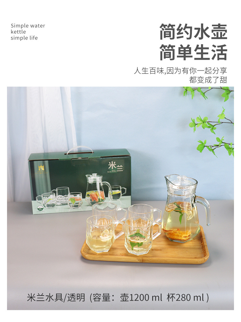 玻璃冷水壶套装透明玻璃杯耐热玻璃水杯轻奢高级感凉水壶礼品批发