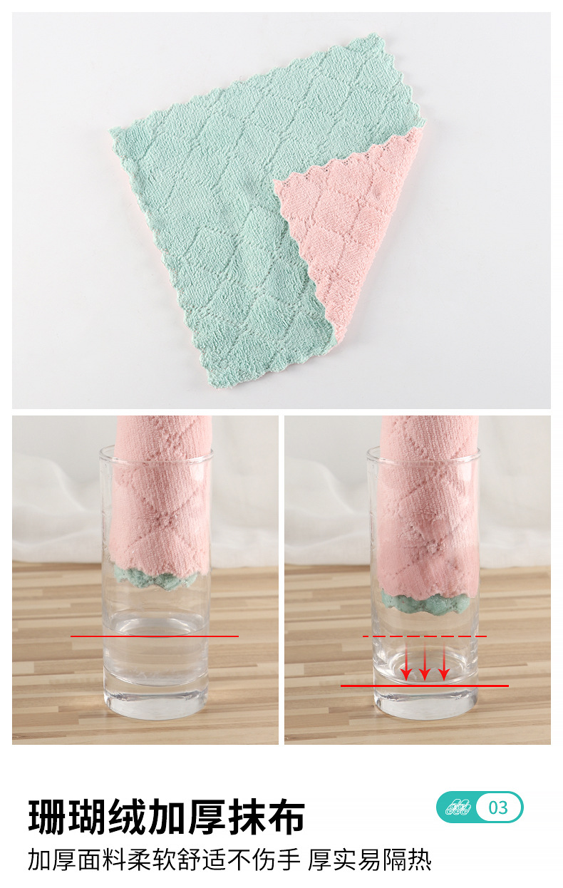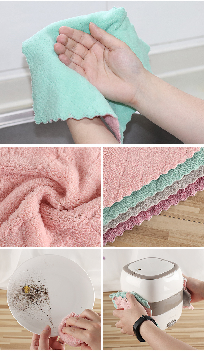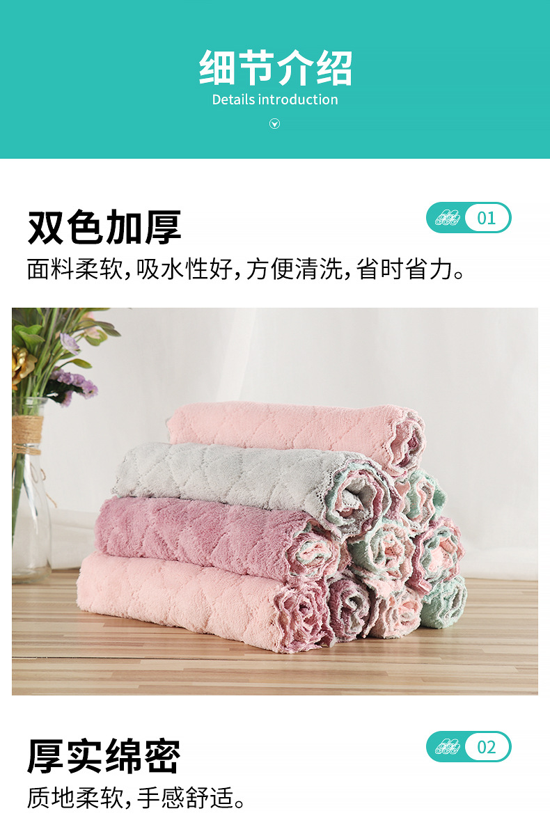 抹布洗碗巾珊瑚绒双面百洁布5片30*30