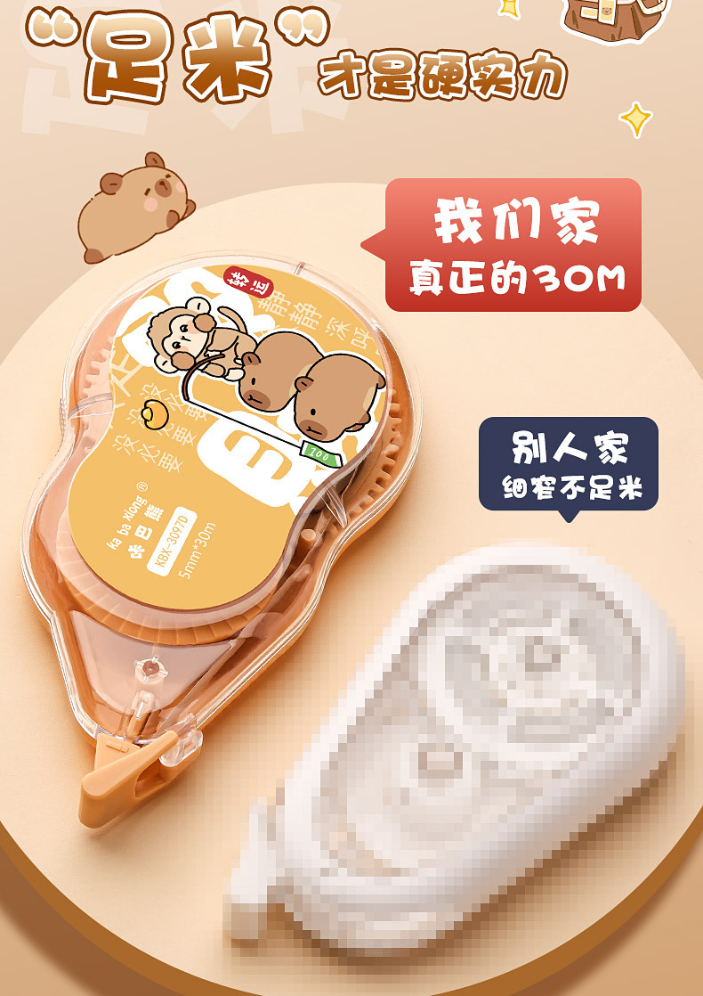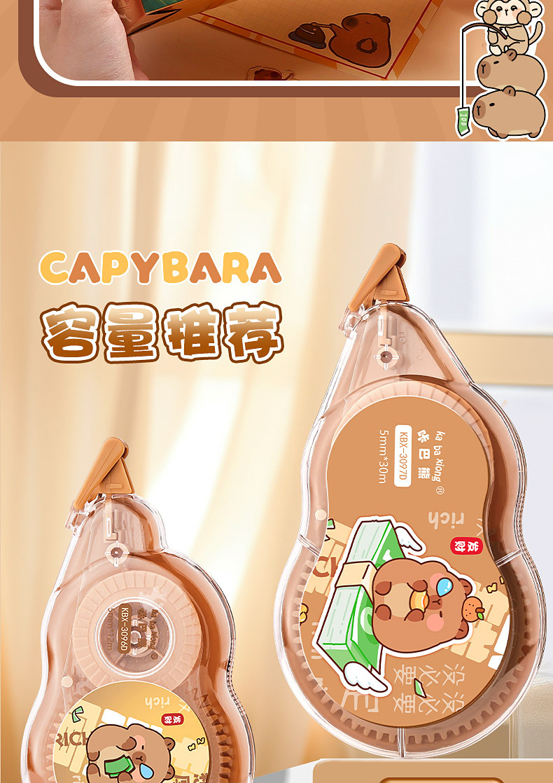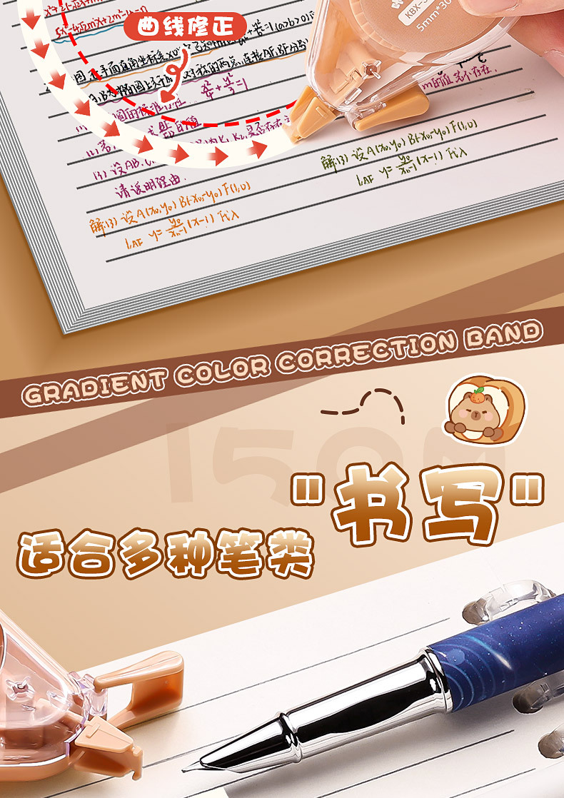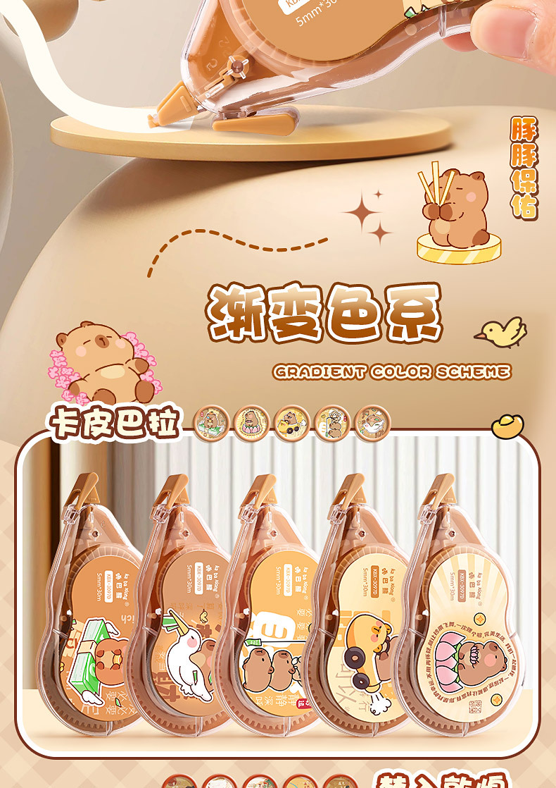 卡皮巴拉大容量修正带卡通渐变色学生专用涂改带小学生静音改正带