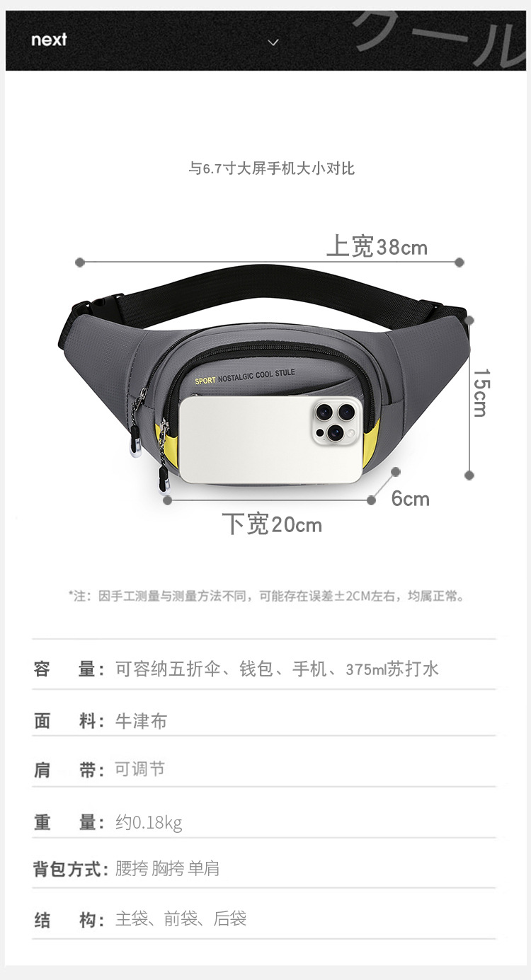 跨境批发休闲腰包男款日常百搭运动胸包轻便牛津布便捷手机斜挎包