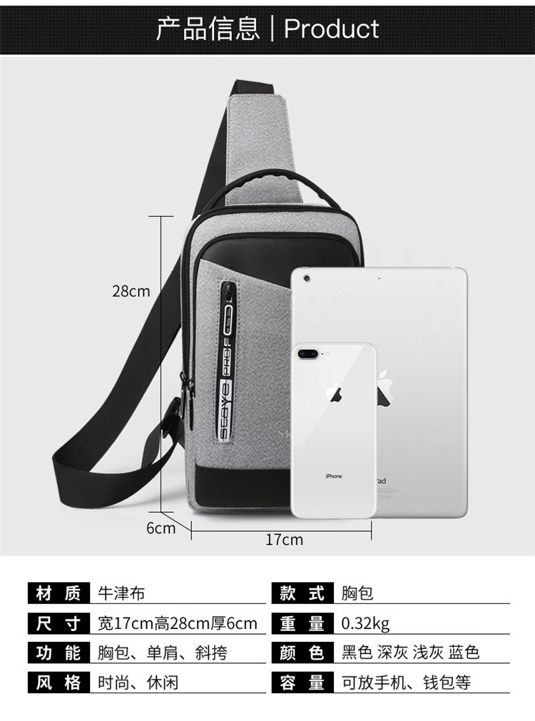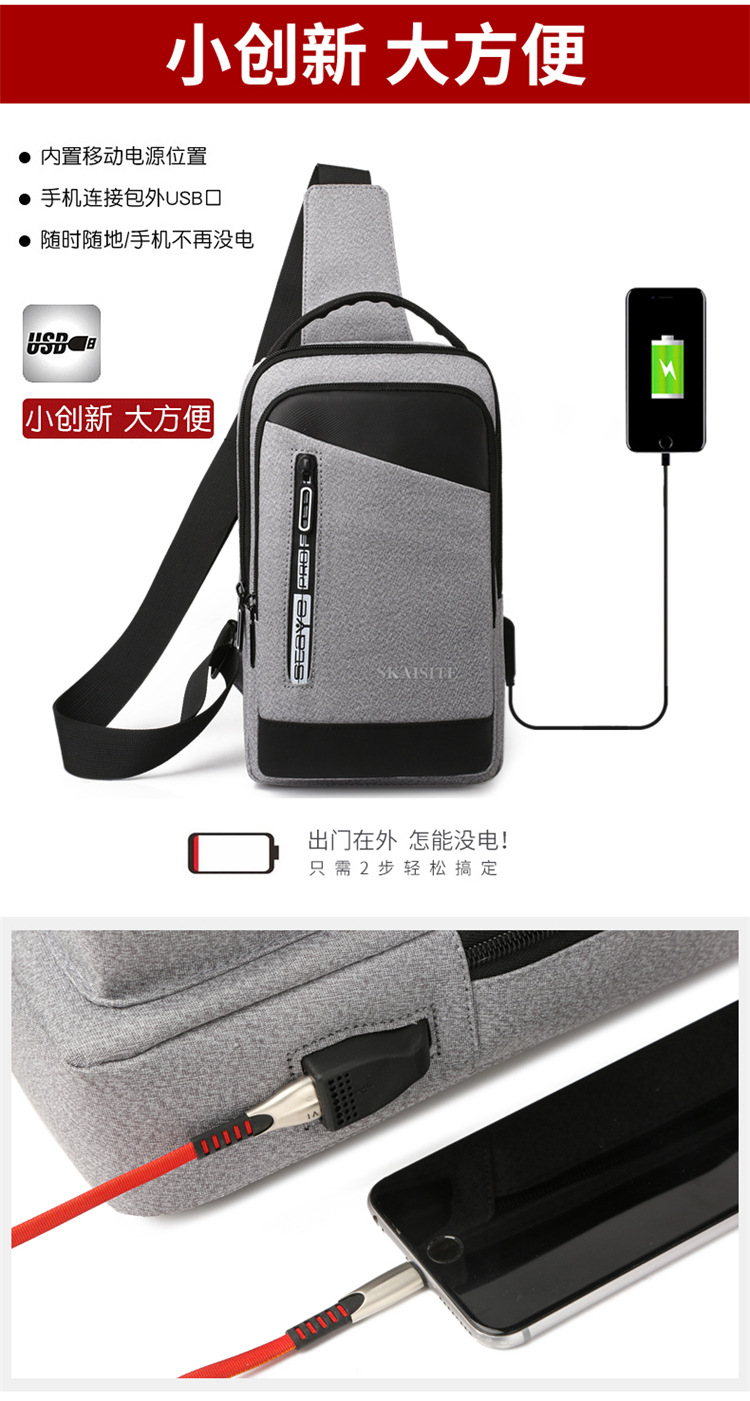 潮牌大容量胸包男2024新款休闲运动斜挎包韩版多功能充电单肩包
