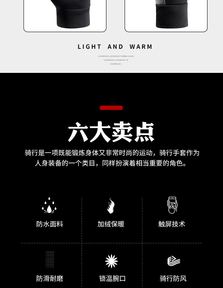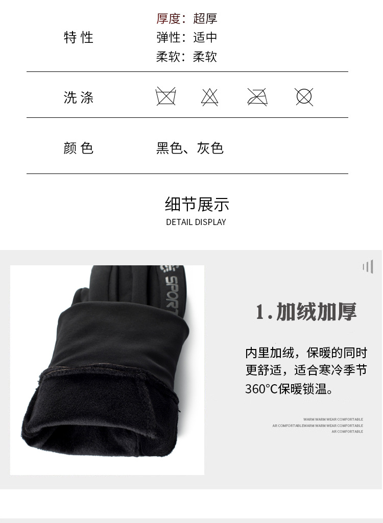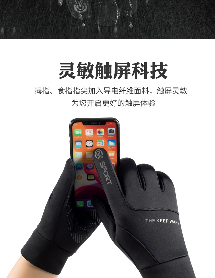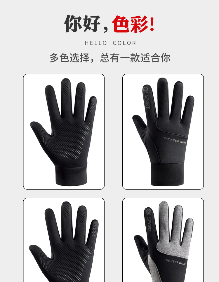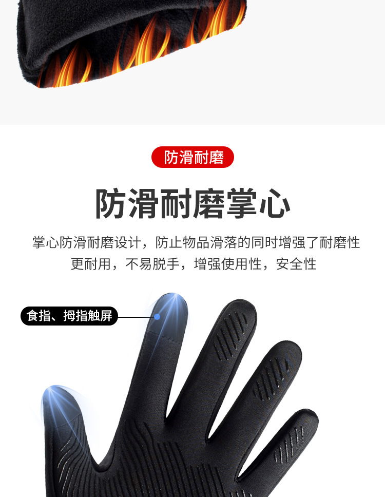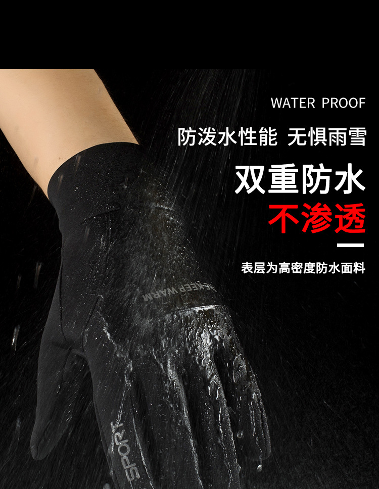 户外手套男士冬季保暖加绒触屏防滑防风防水运动开车骑行摩托车