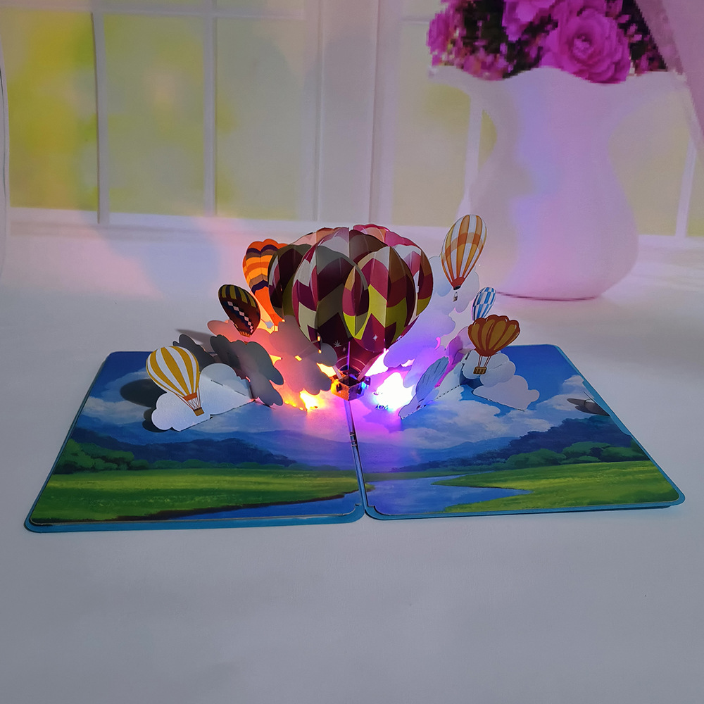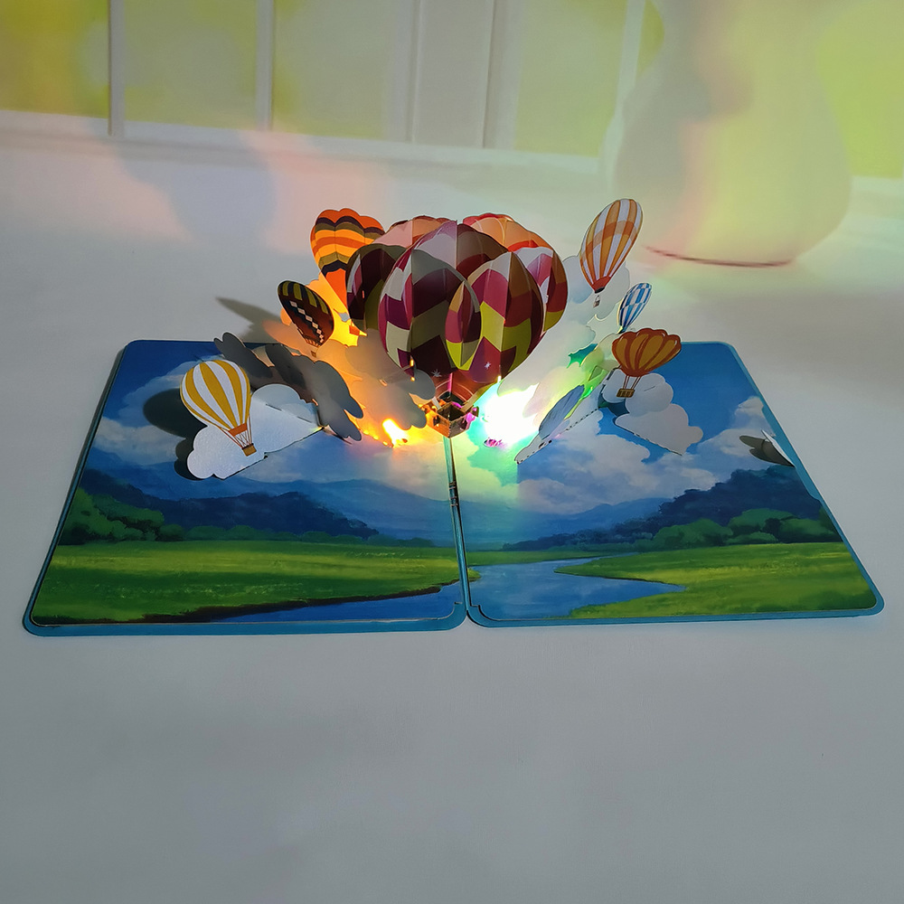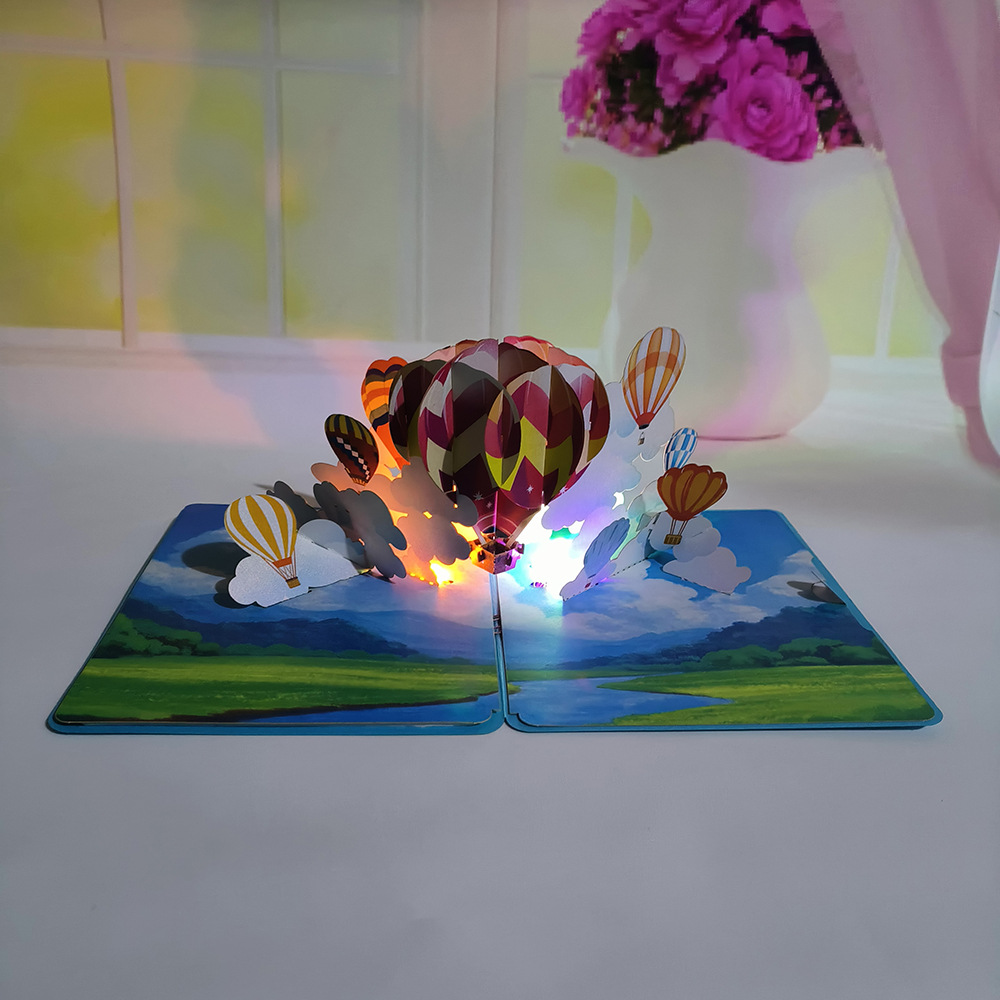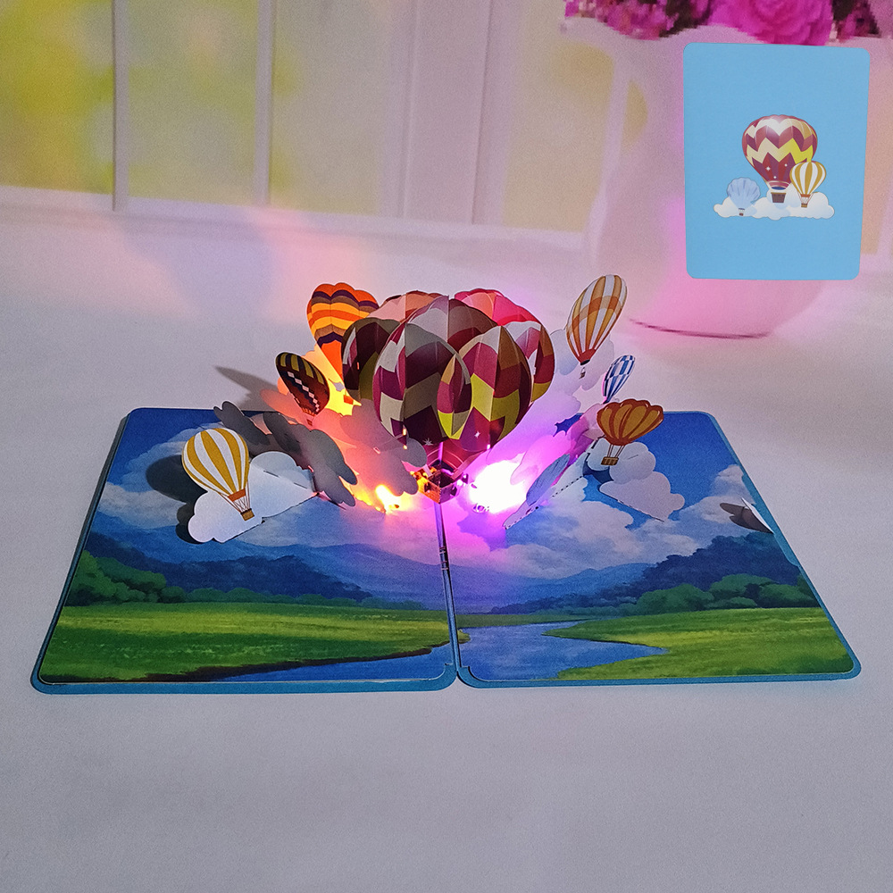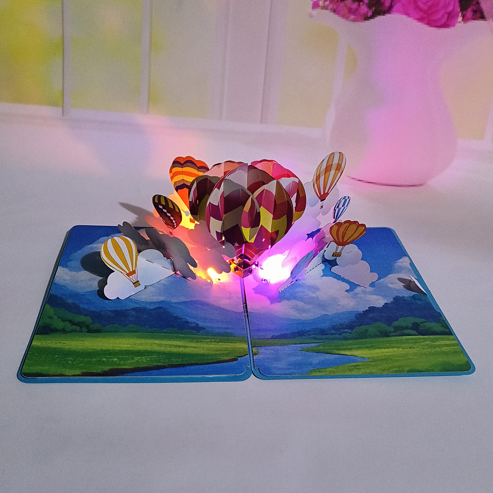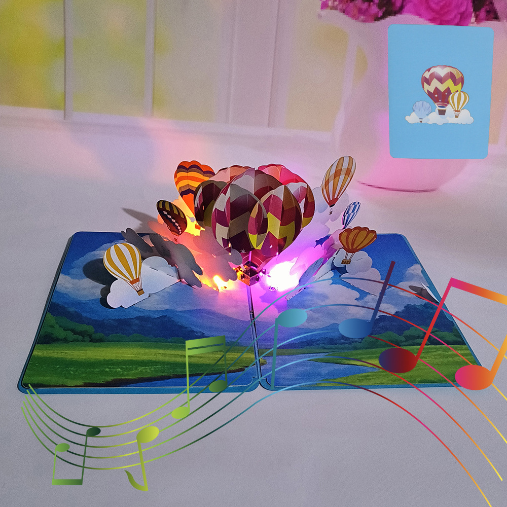 创意七夕情人节婚礼跑车热气球情侣音乐灯光3D立体折叠贺卡祝福卡