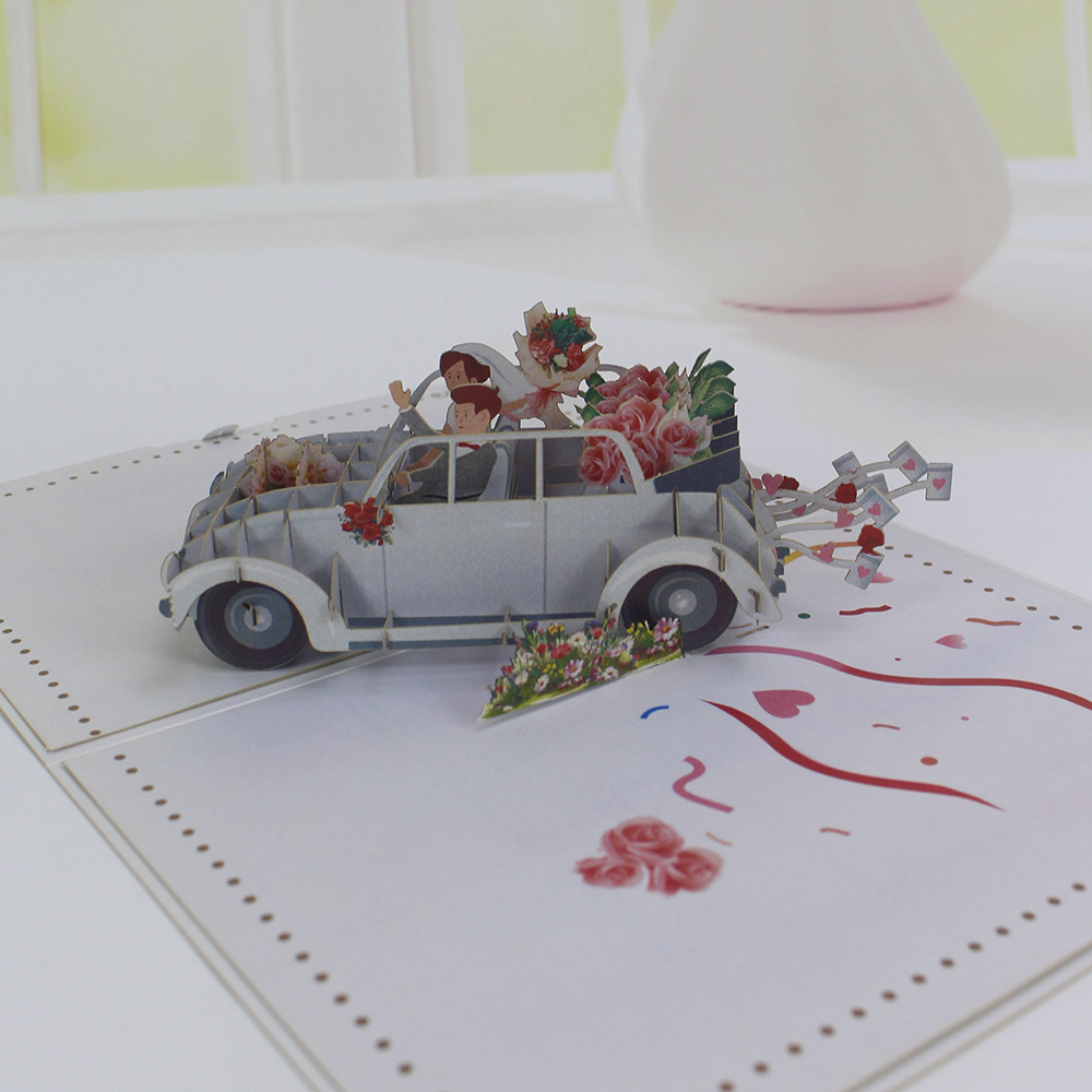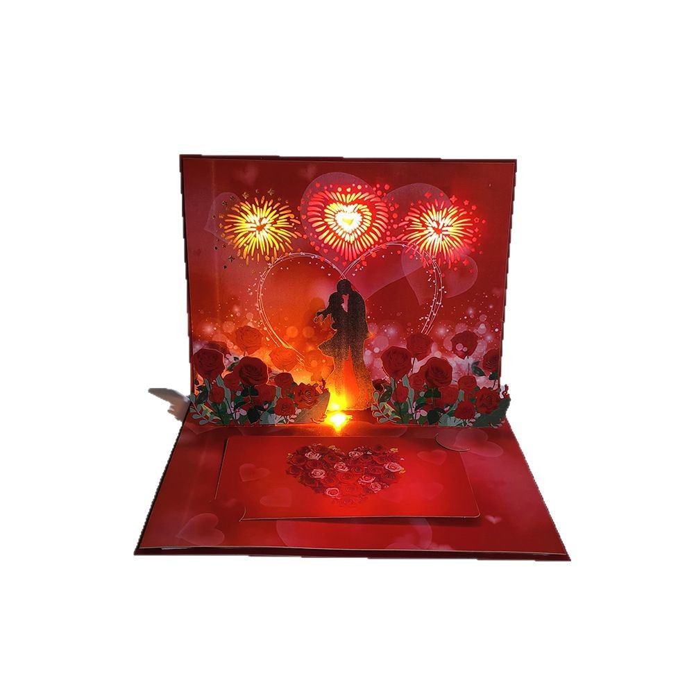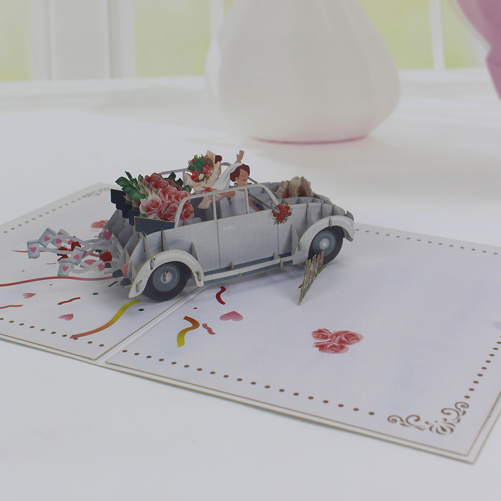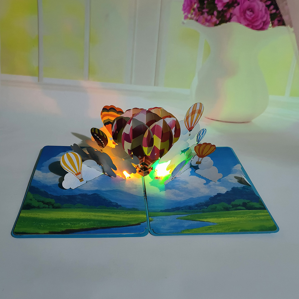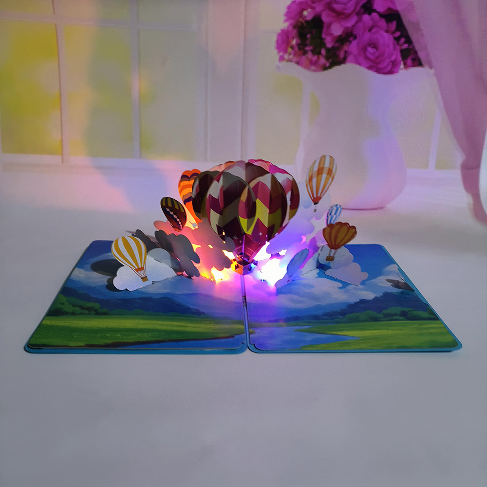 创意七夕情人节婚礼跑车热气球情侣音乐灯光3D立体折叠贺卡祝福卡
