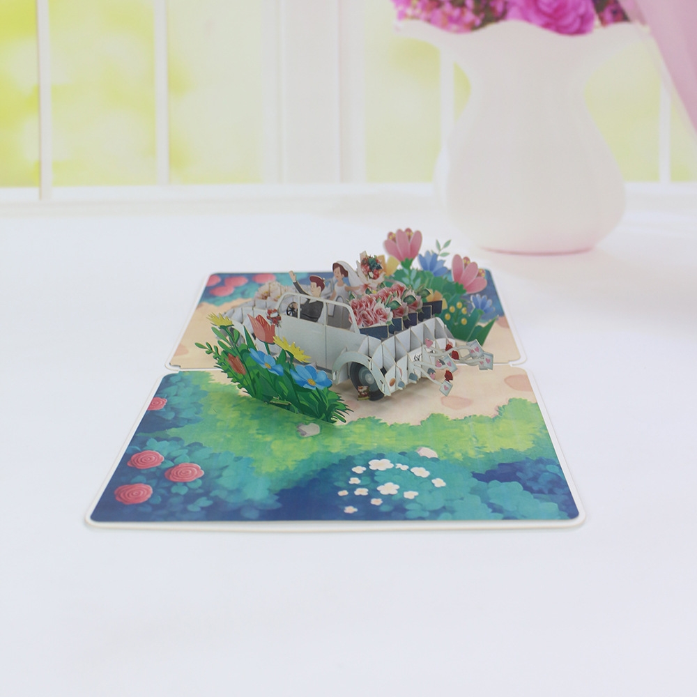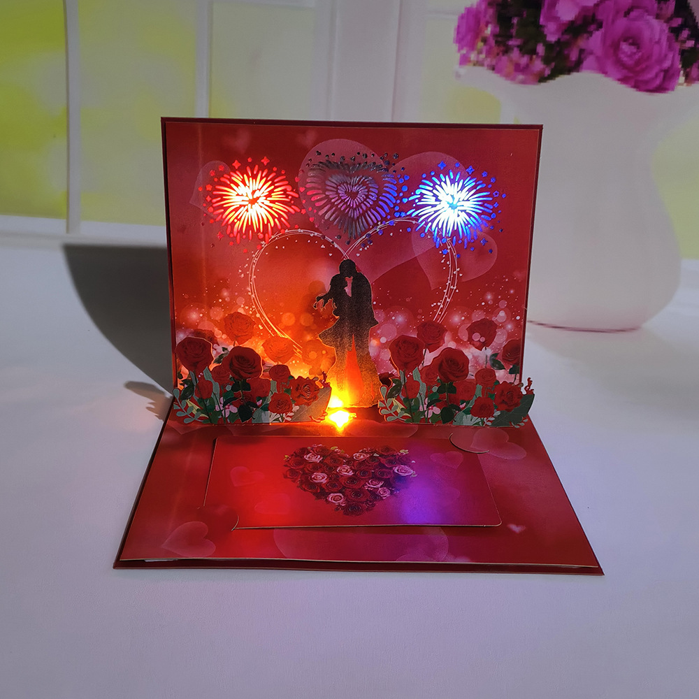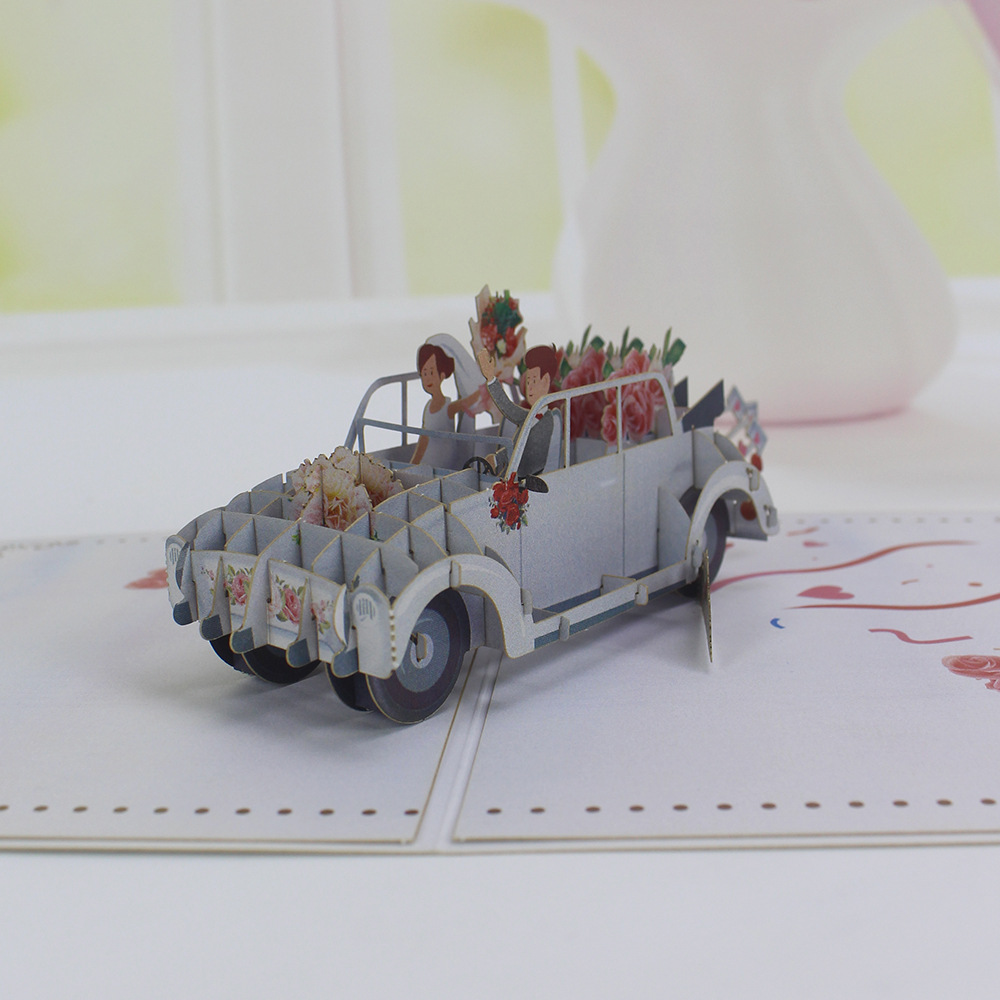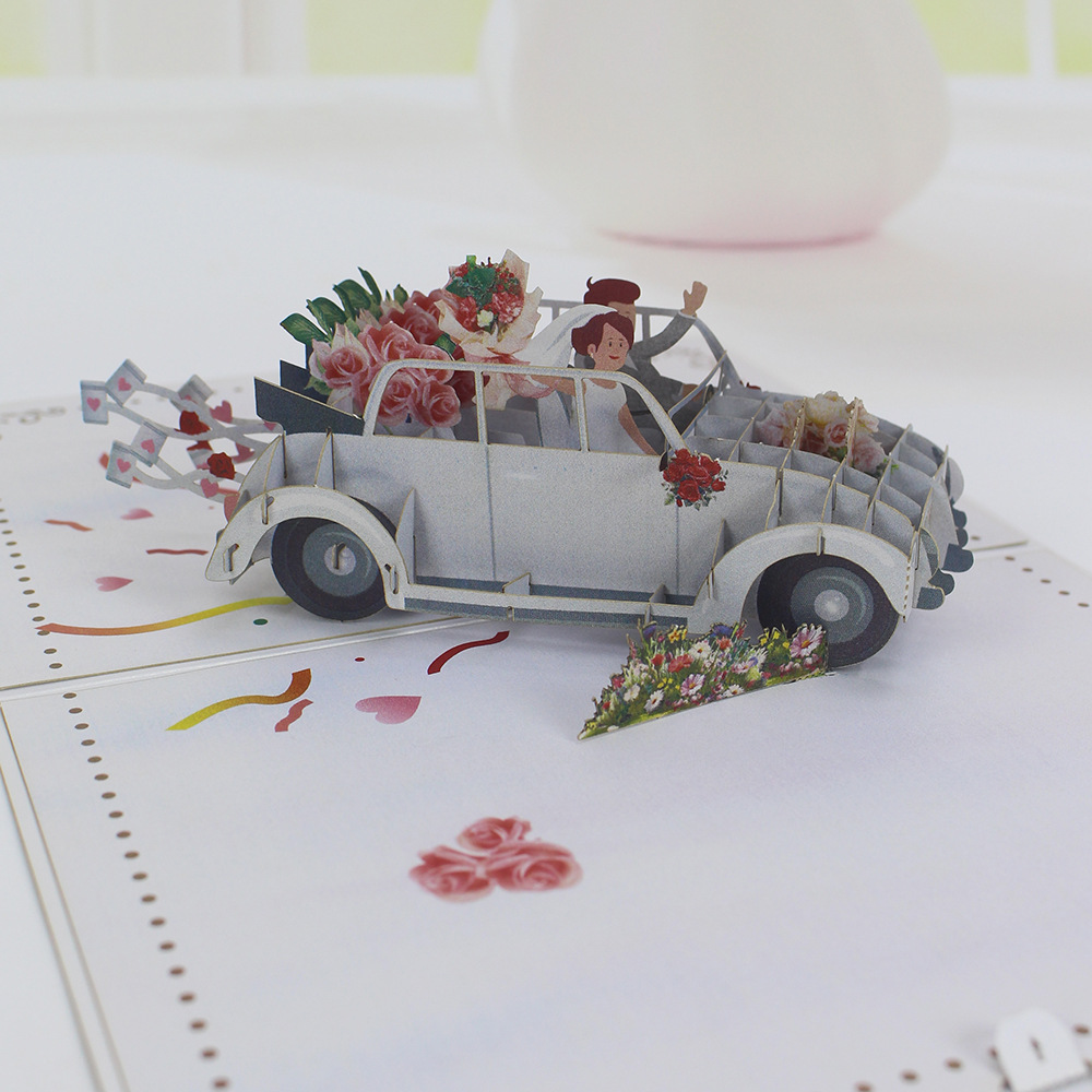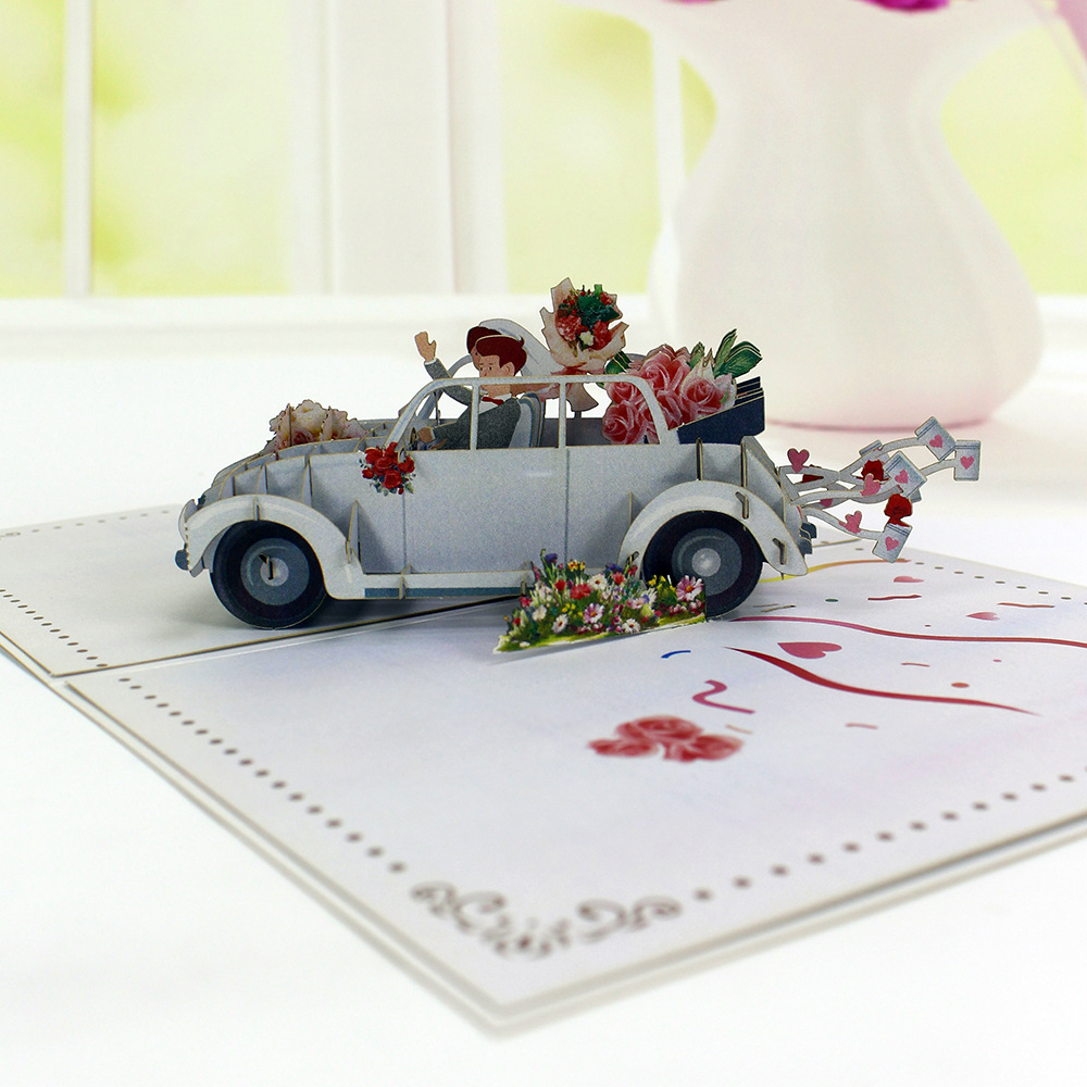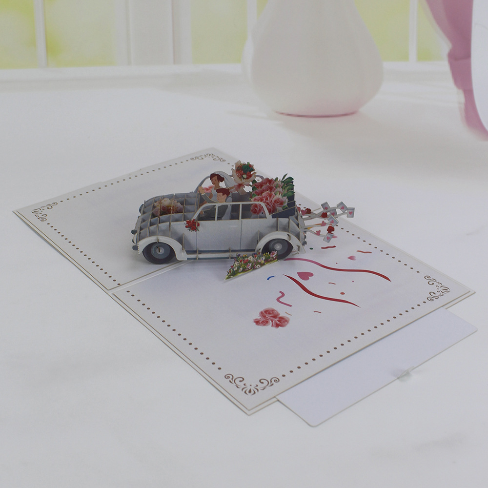 创意七夕情人节婚礼跑车热气球情侣音乐灯光3D立体折叠贺卡祝福卡