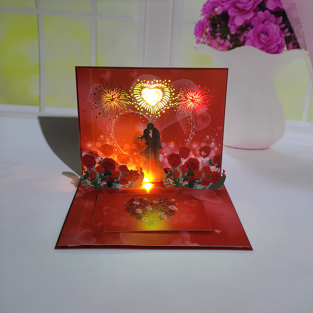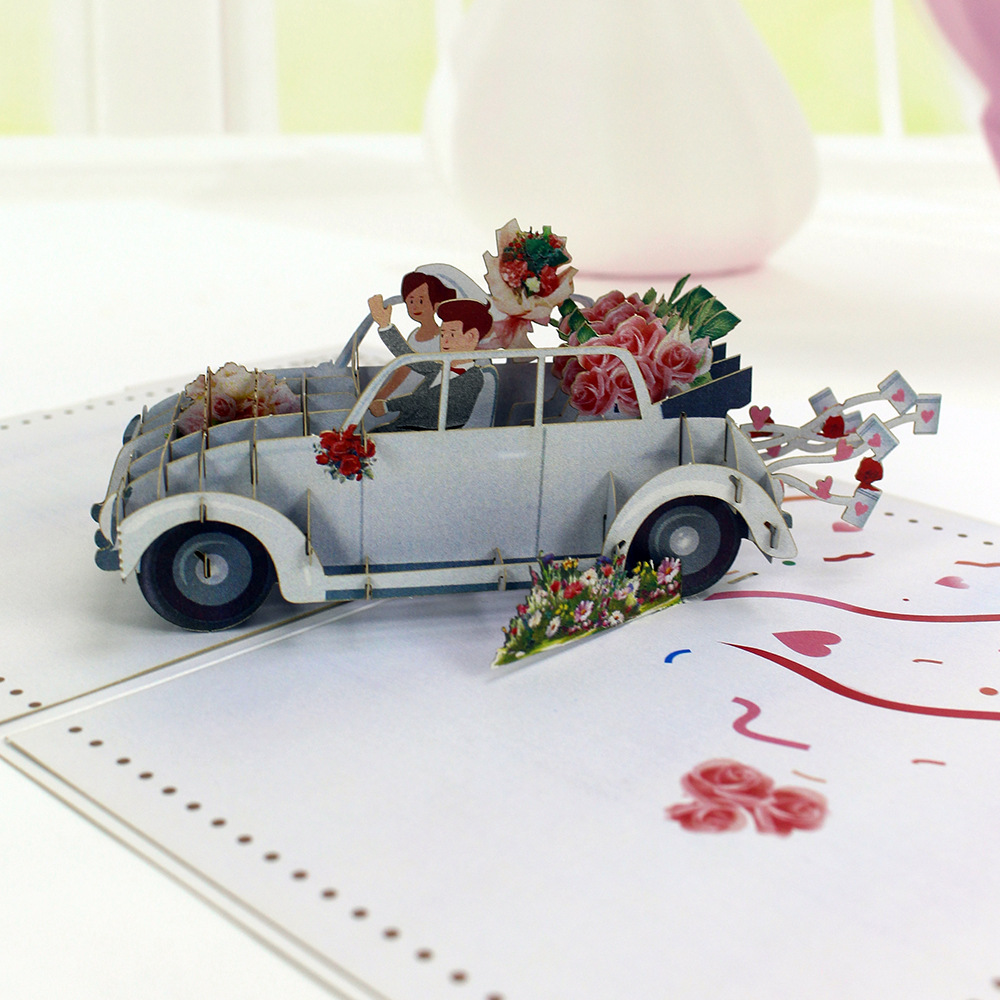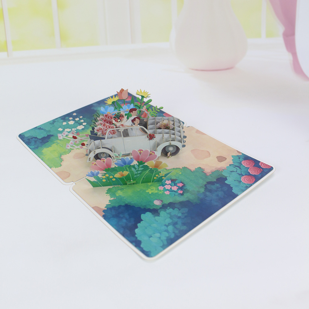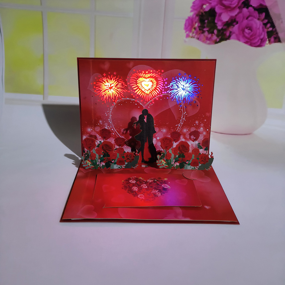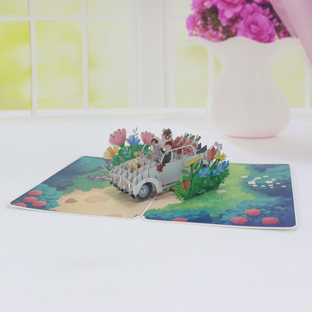 创意七夕情人节婚礼跑车热气球情侣音乐灯光3D立体折叠贺卡祝福卡