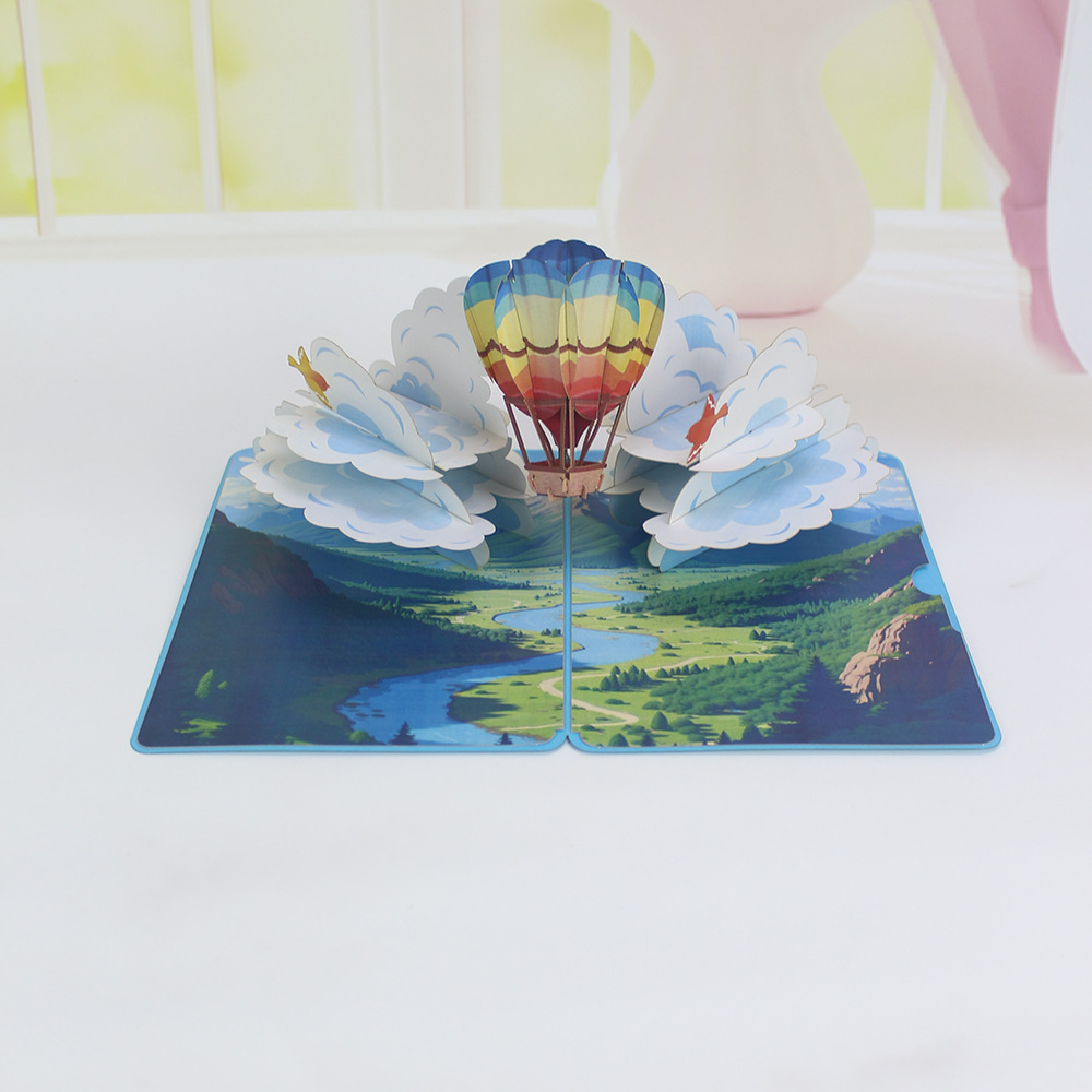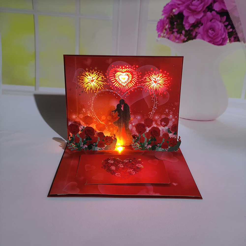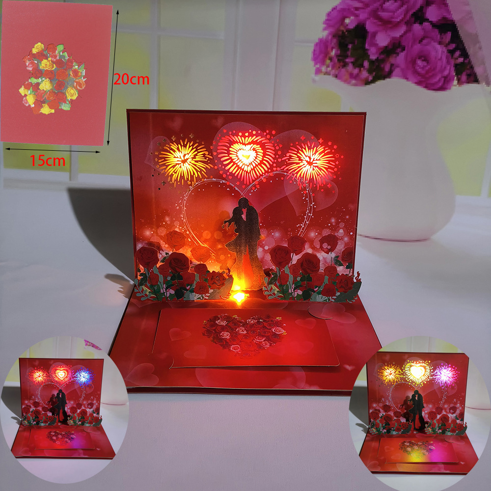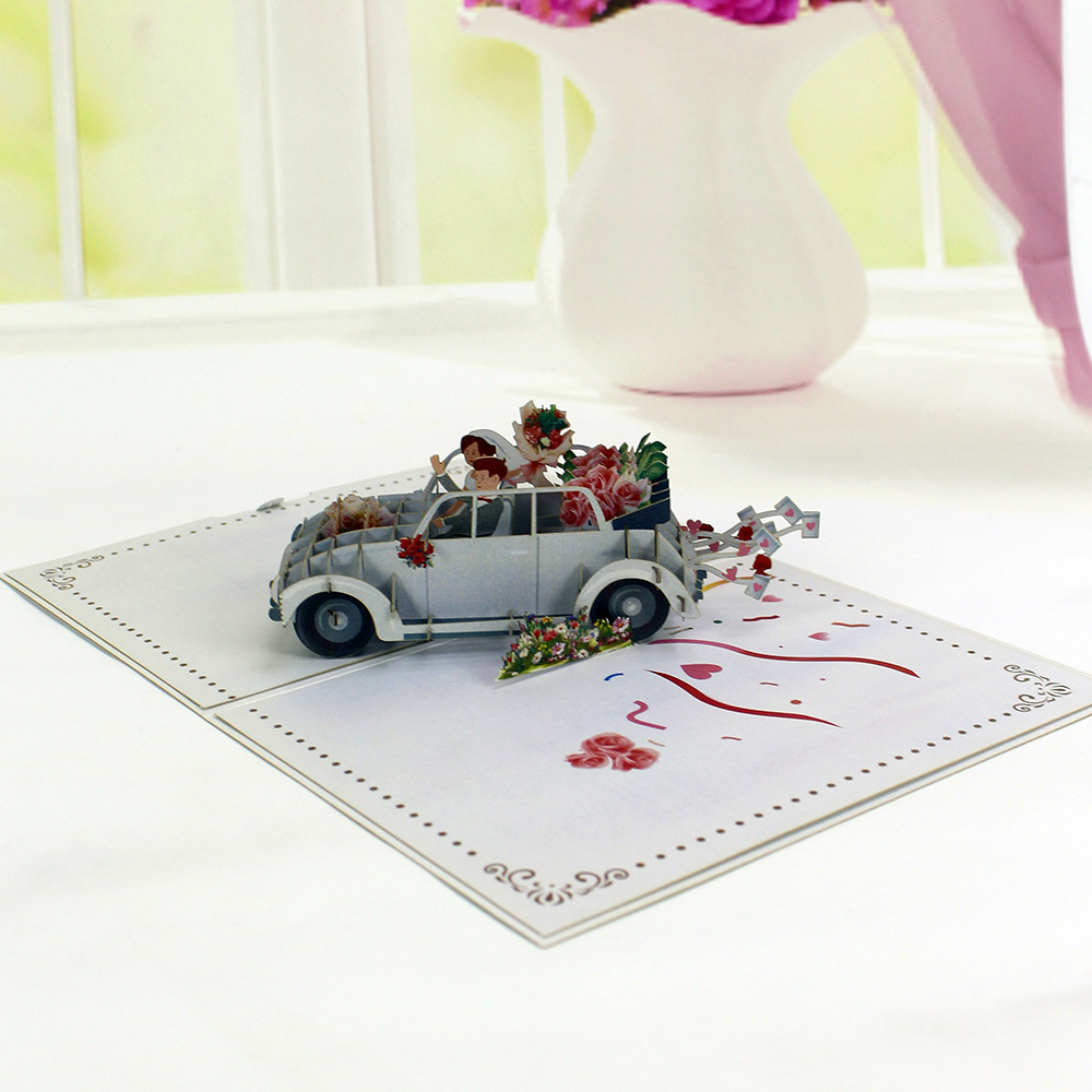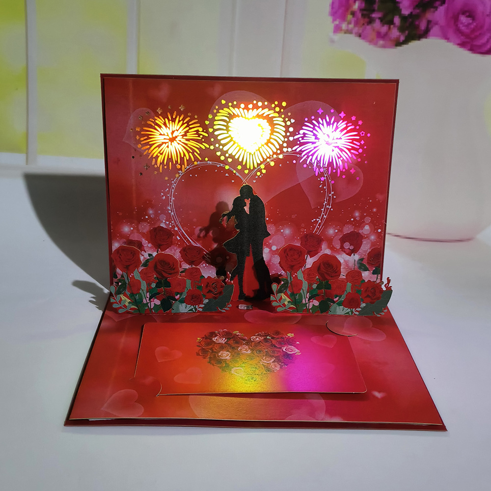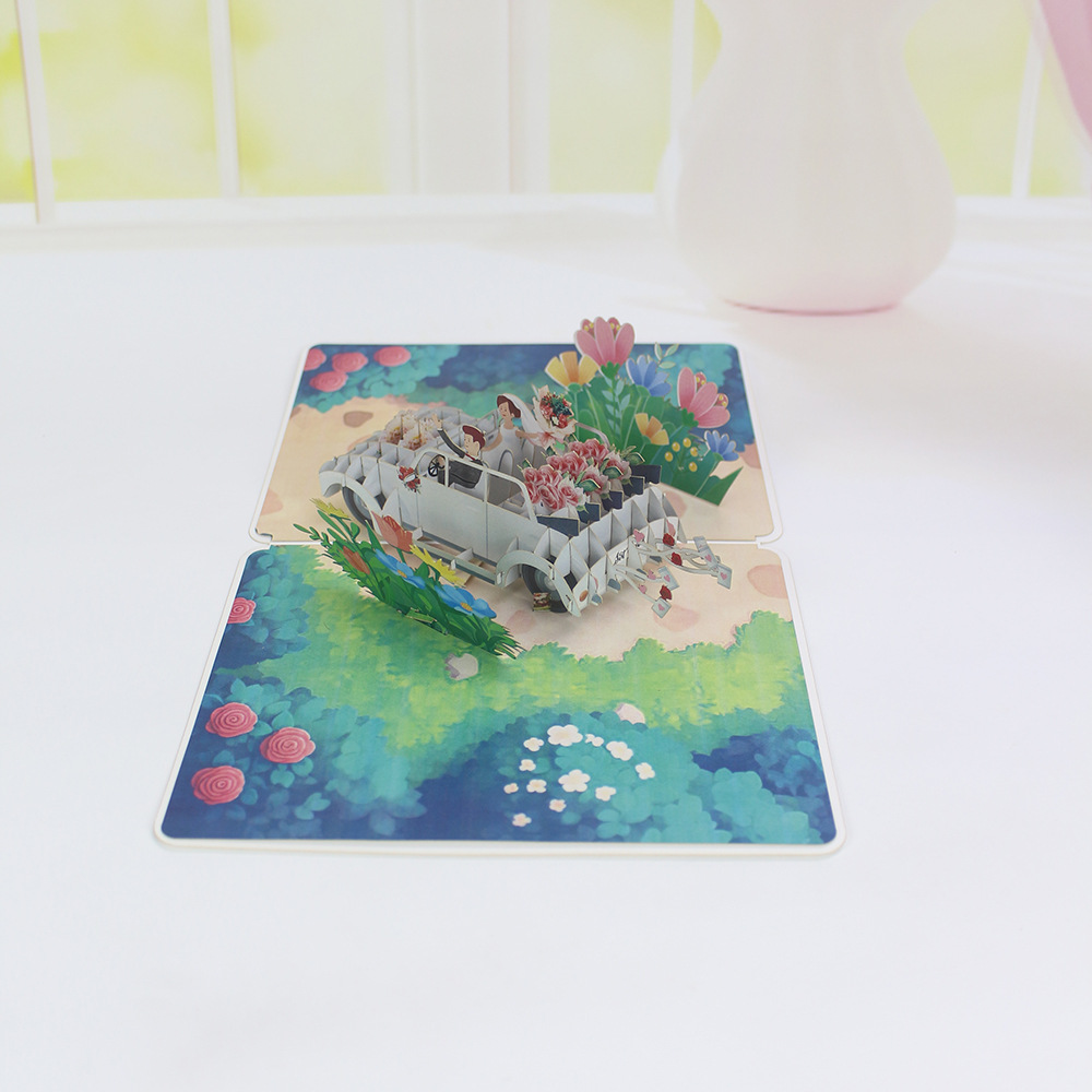 创意七夕情人节婚礼跑车热气球情侣音乐灯光3D立体折叠贺卡祝福卡