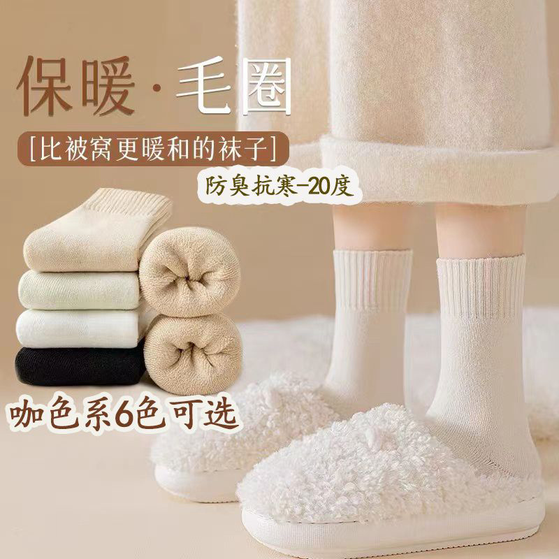 女士保暖袜子超厚冬季新款羊毛袜子女中筒毛圈加厚毛巾袜秋冬加绒