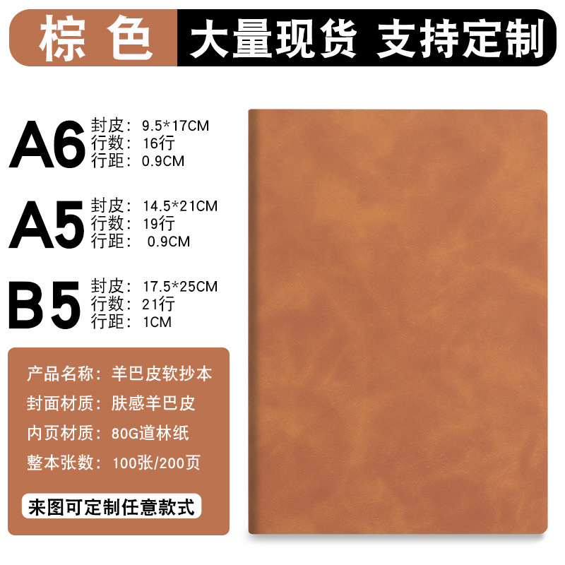 a5肤感羊巴笔记本定制Logo简约商务记事本b5记事皮面软抄本定做A6