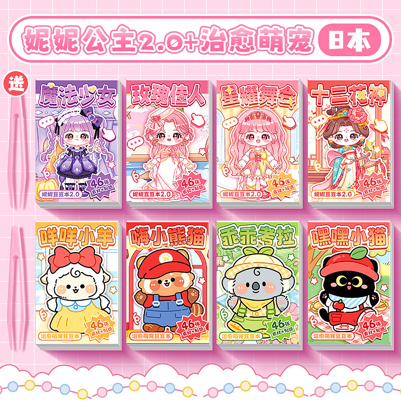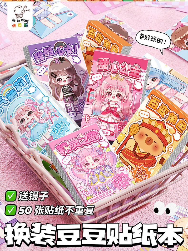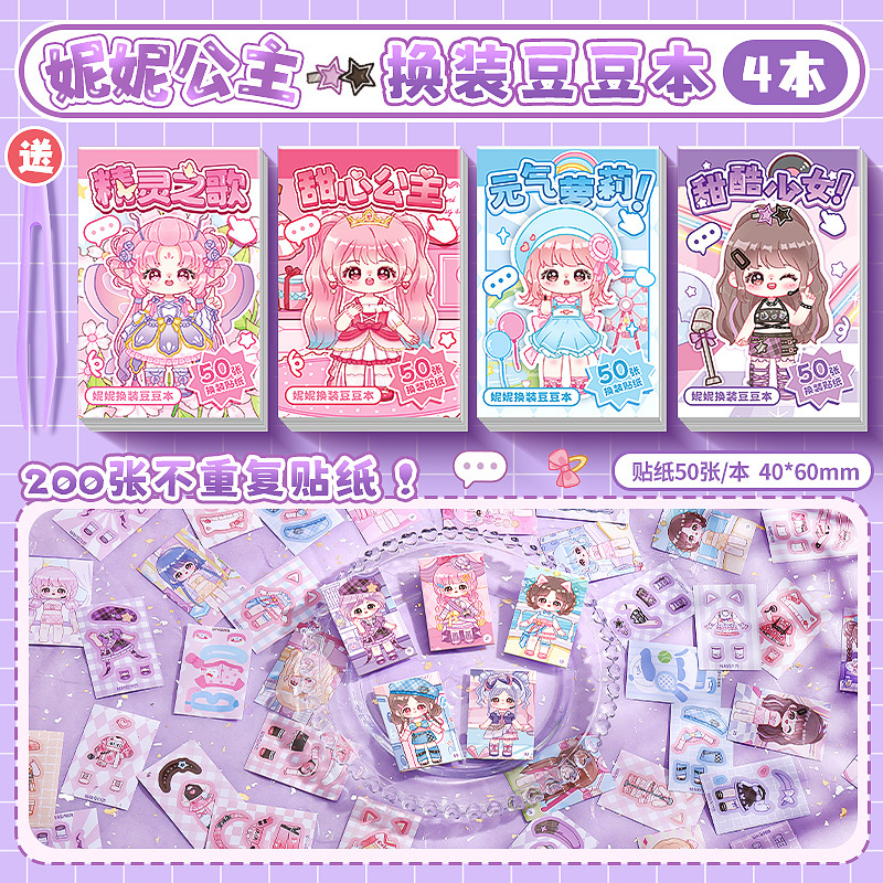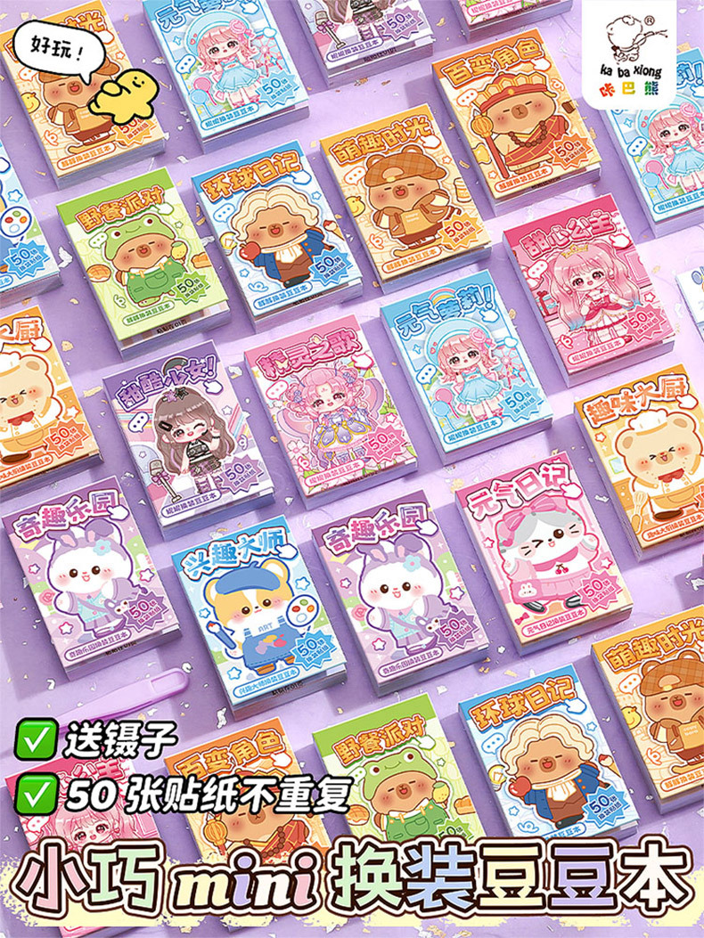 换装豆豆本迷你可爱贴纸摸鱼随身便携口袋本小本子高颜值趣味解压