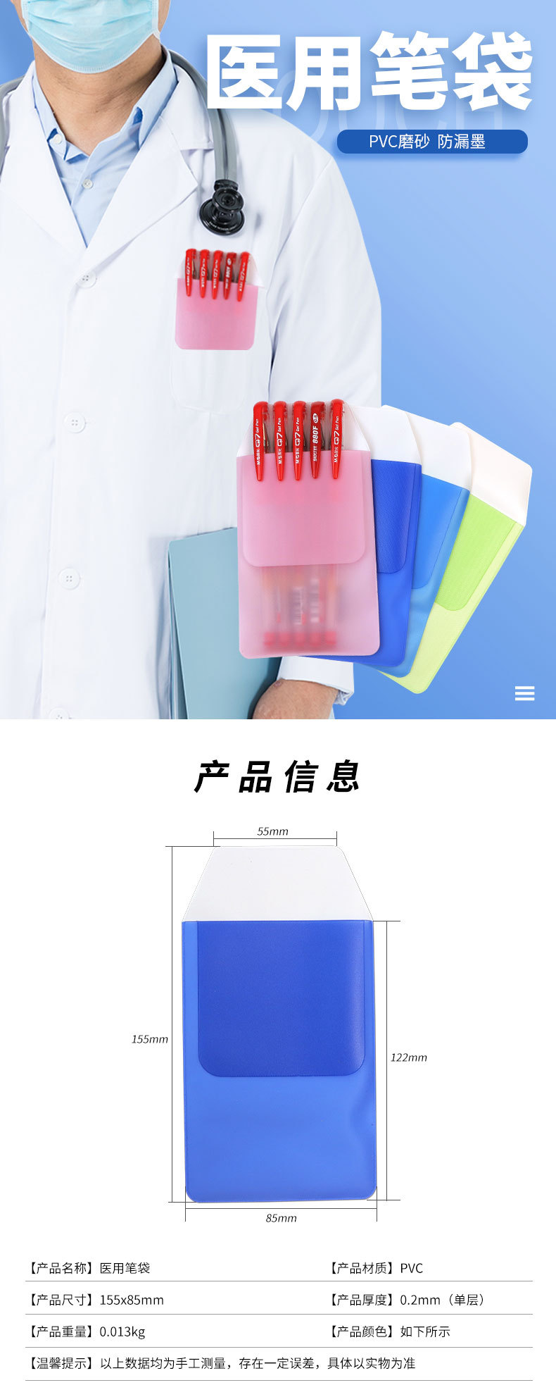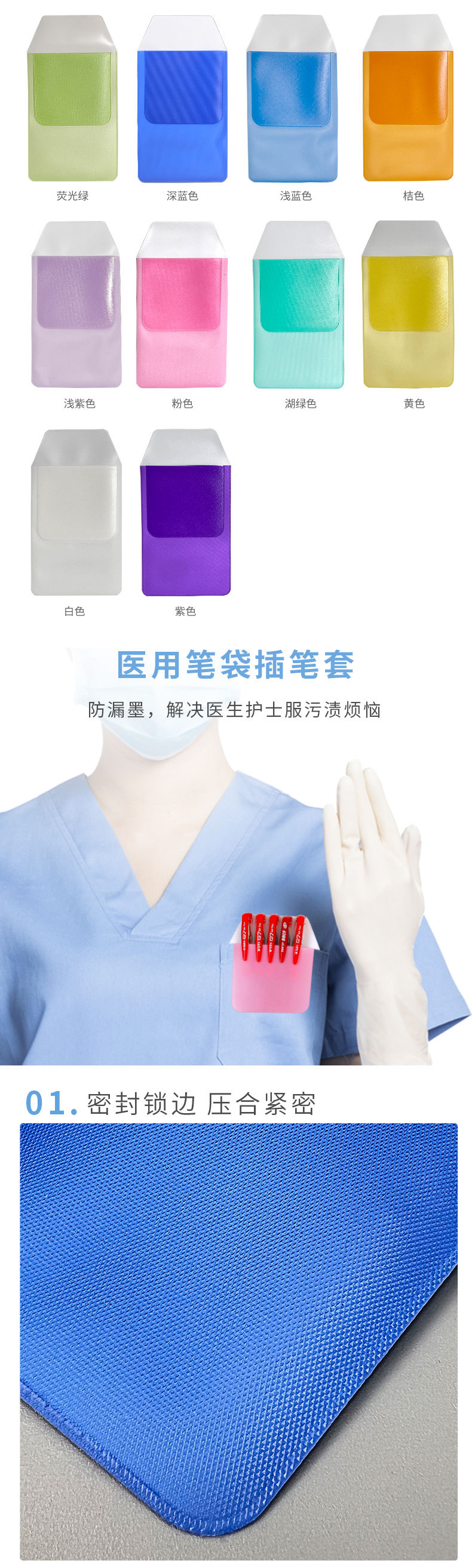 医药礼品PVC医用防漏笔袋 医生护士笔夹白大褂专用插笔袋防脏笔套