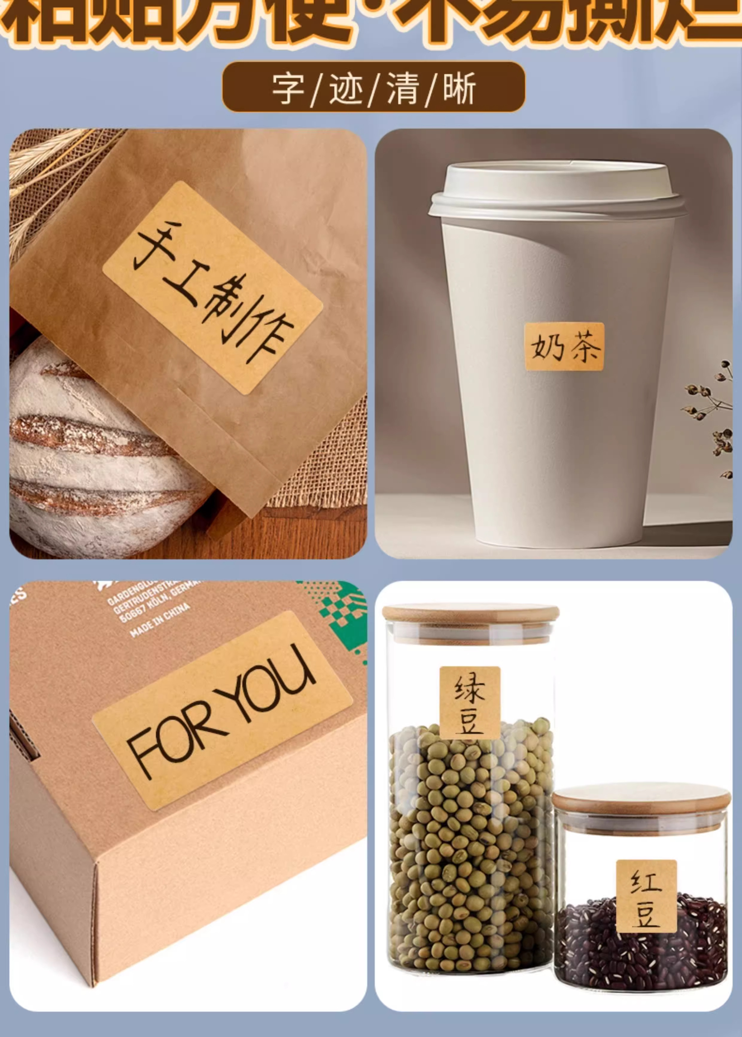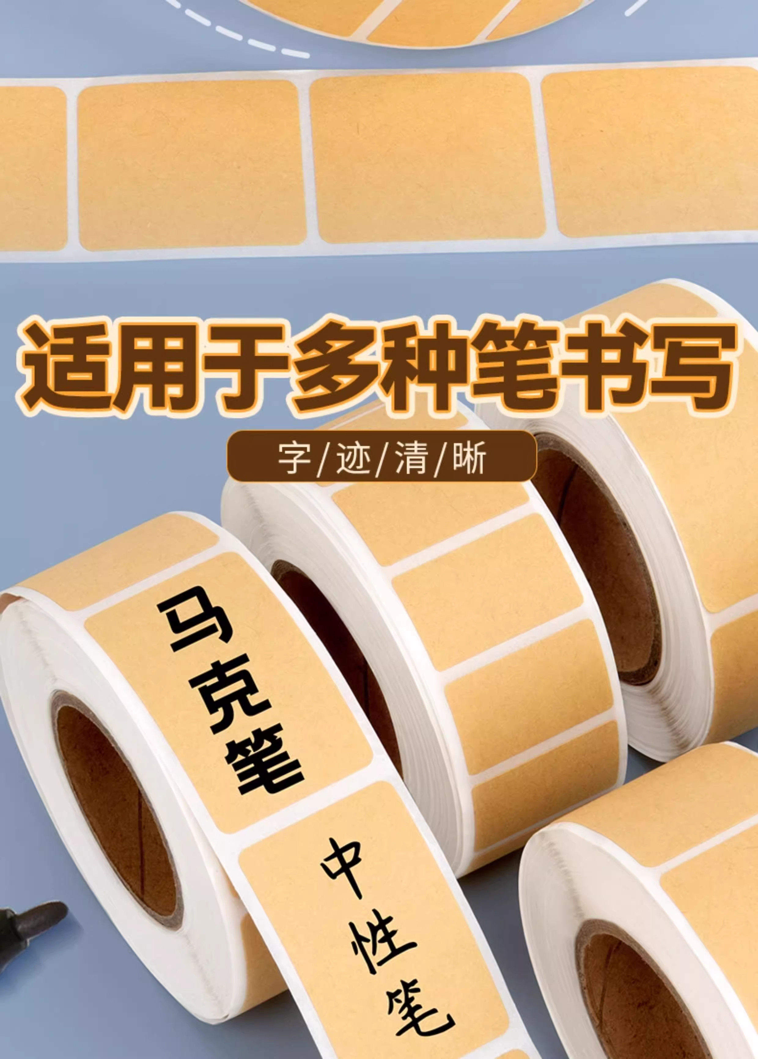 800/卷牛皮便签贴纸可写字不干胶记号贴手写备注封口贴无痕标签贴