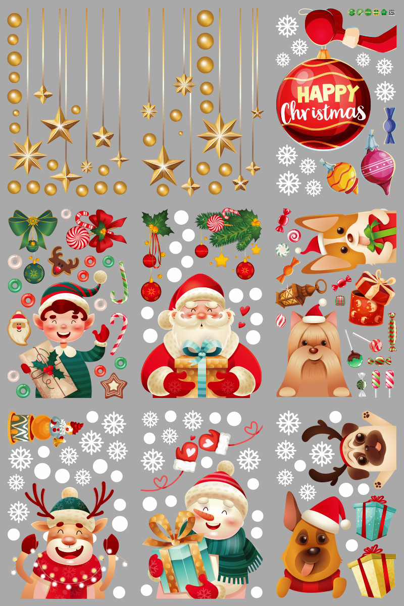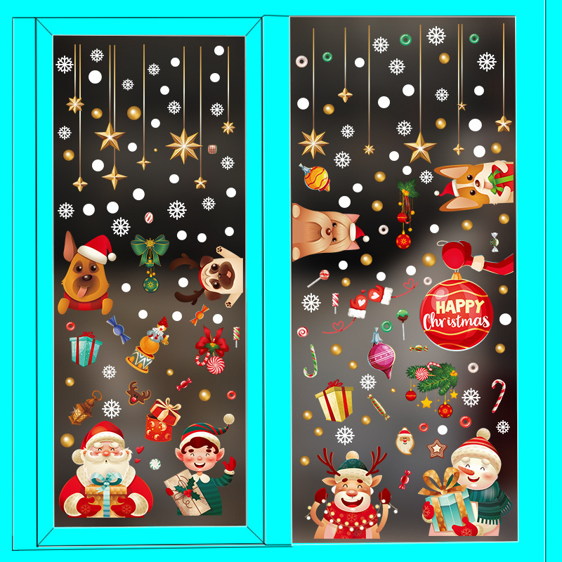 厂家直销亚马逊圣诞节静电贴纸节日橱窗玻璃场景布置装饰贴纸定制