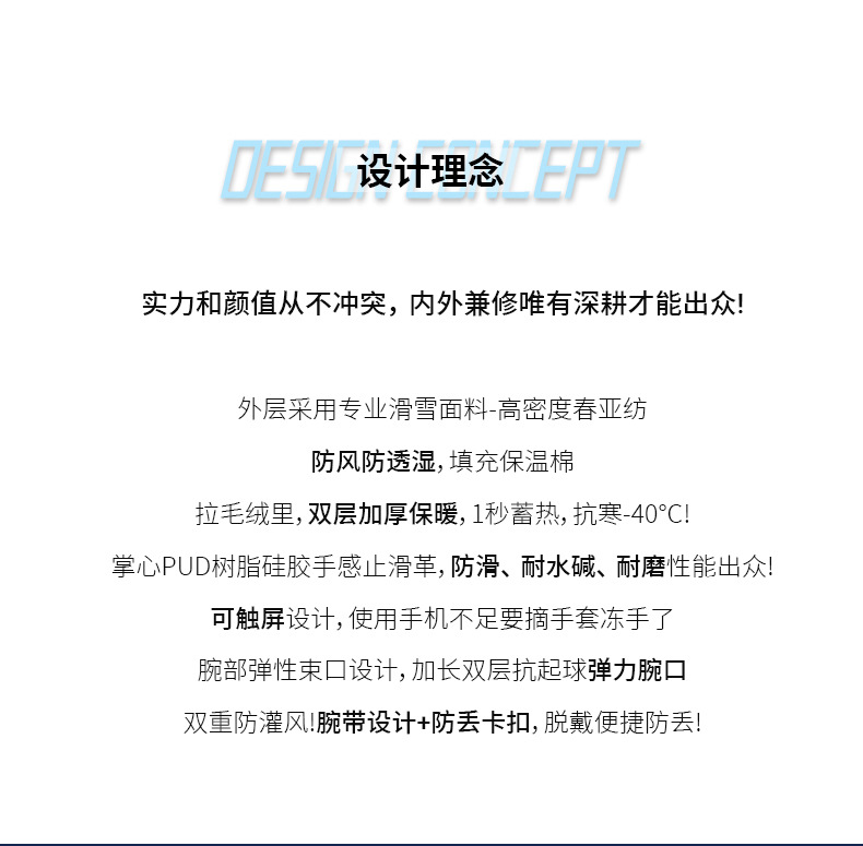 新款滑雪手套男士户外加绒加厚保暖电动车骑行防滑防水触屏手套女