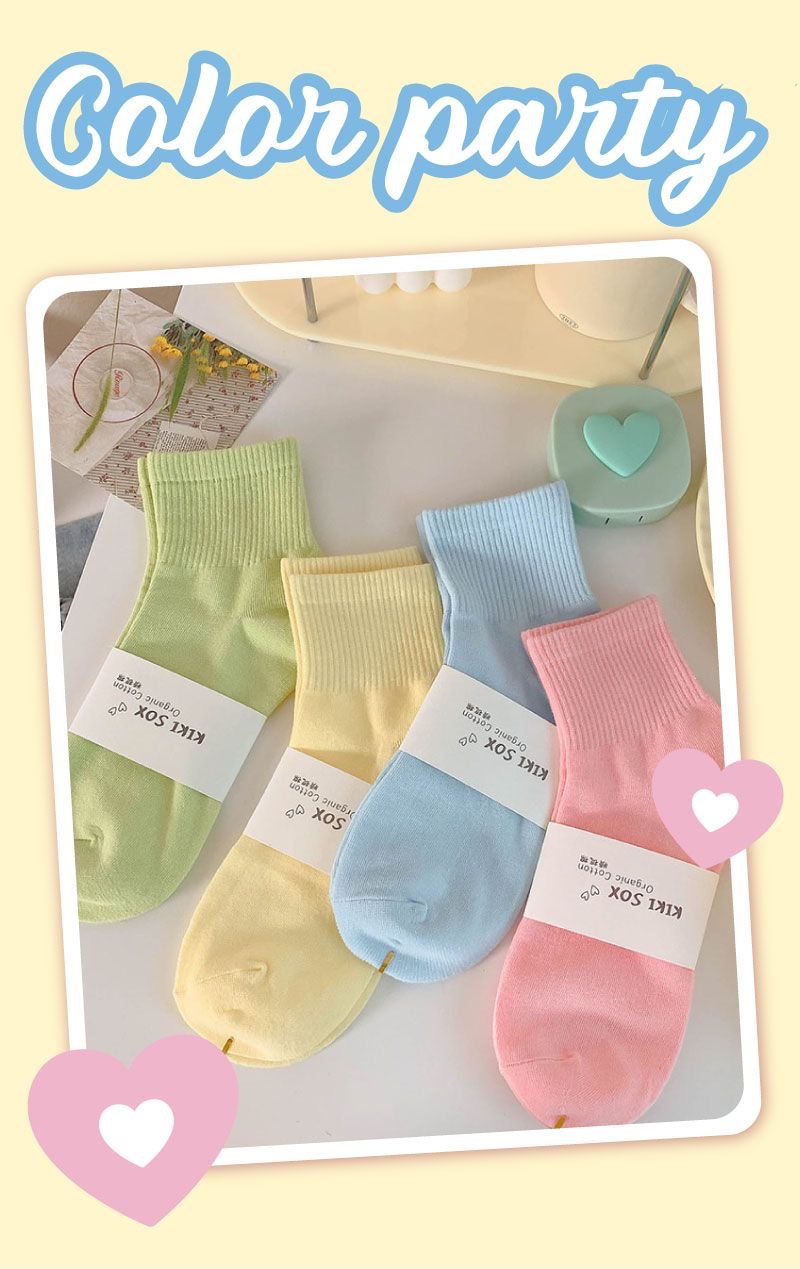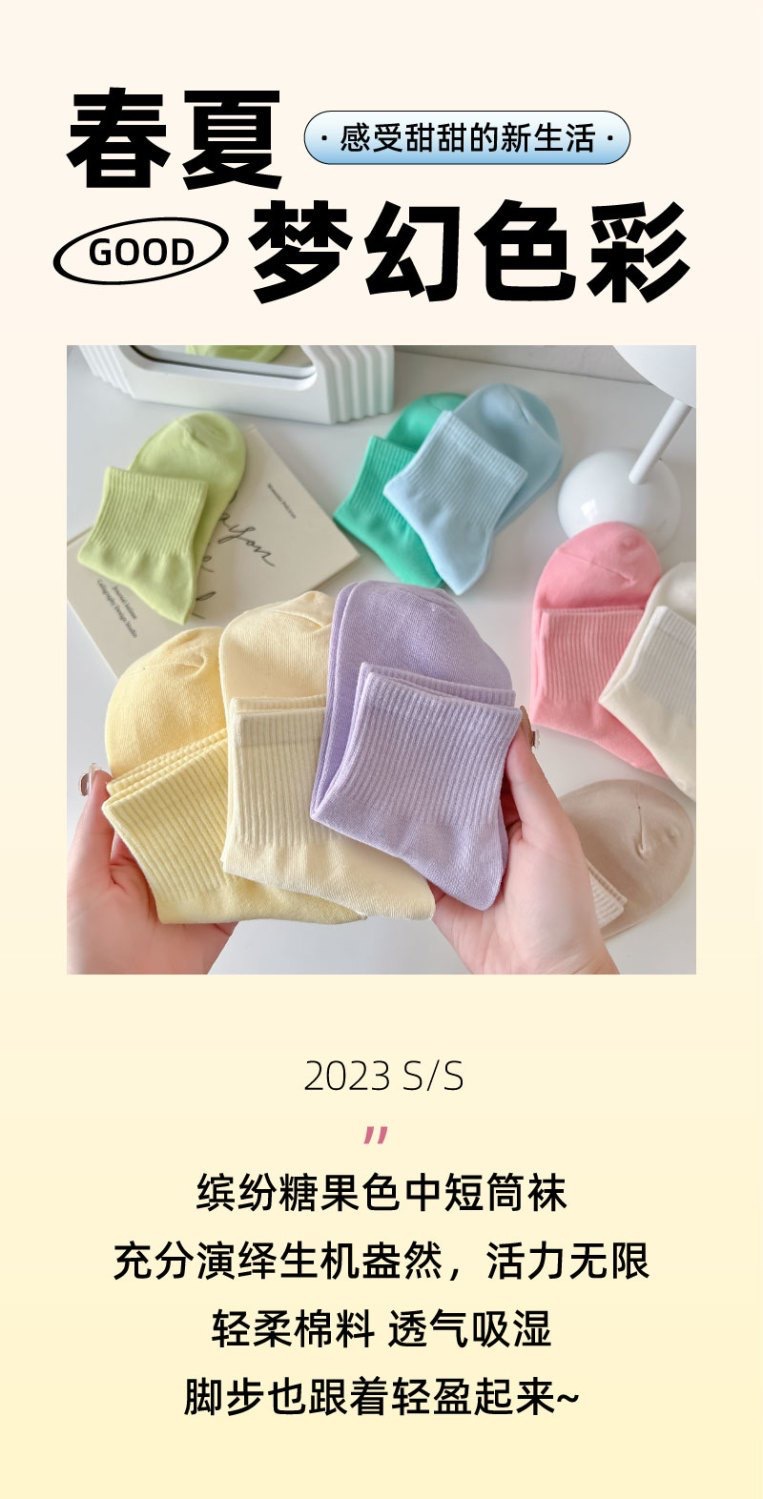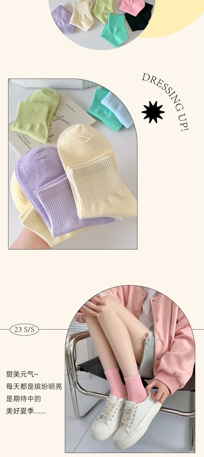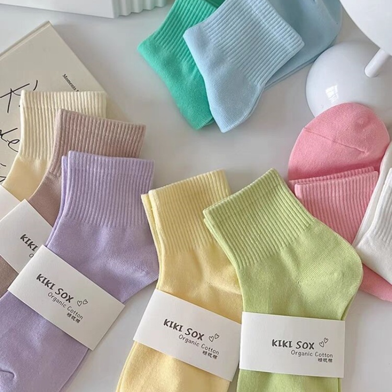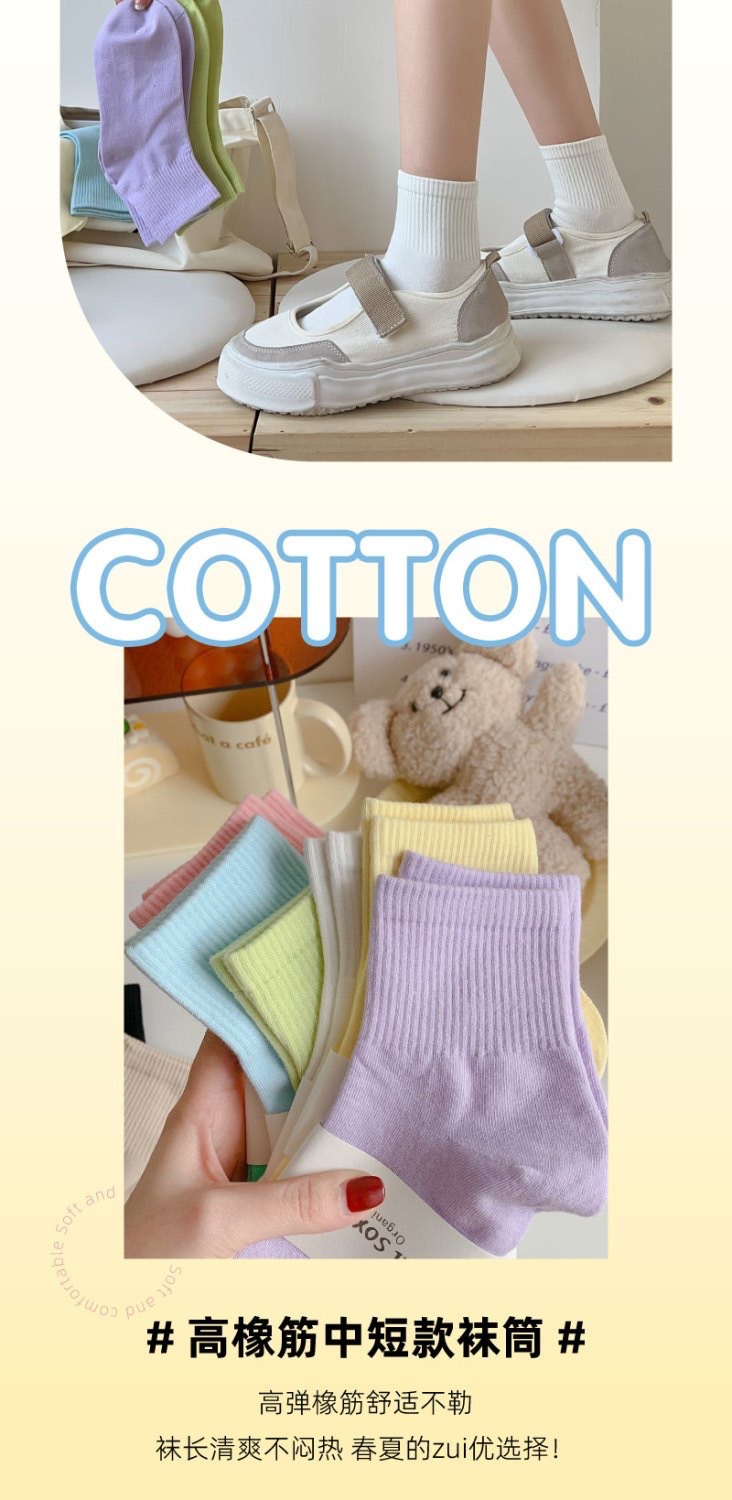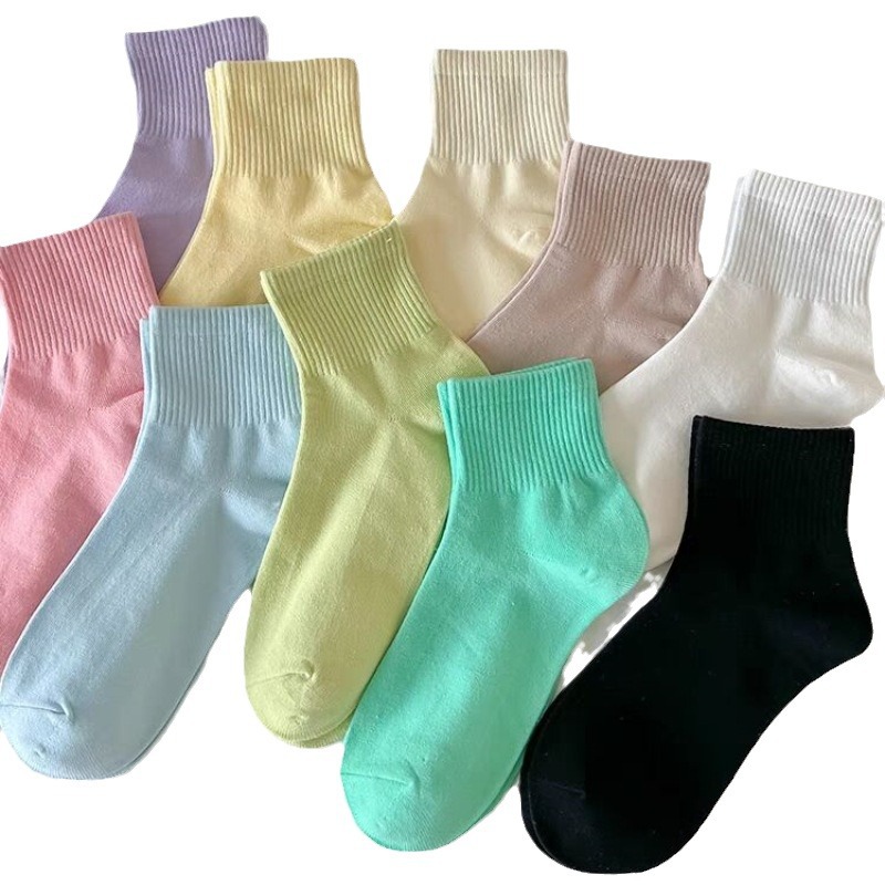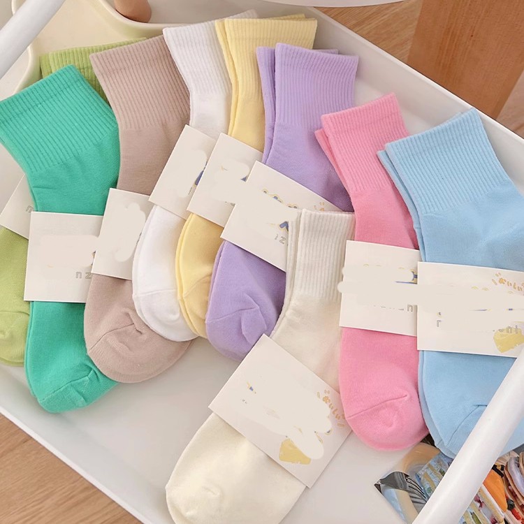 马卡龙彩色袜子女中筒纯色棉袜春秋日系运动糖果色学生春秋长袜