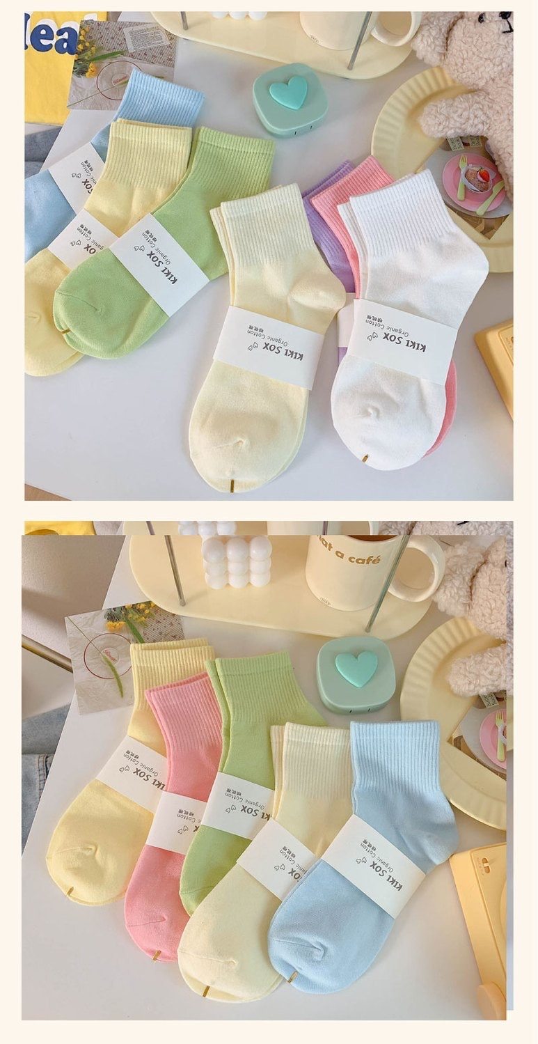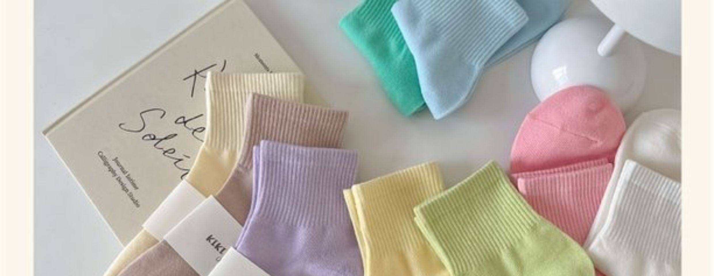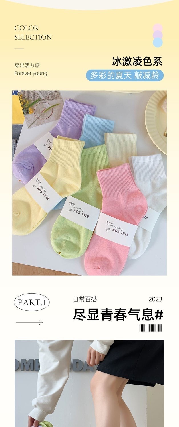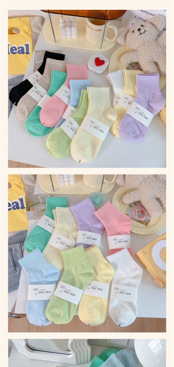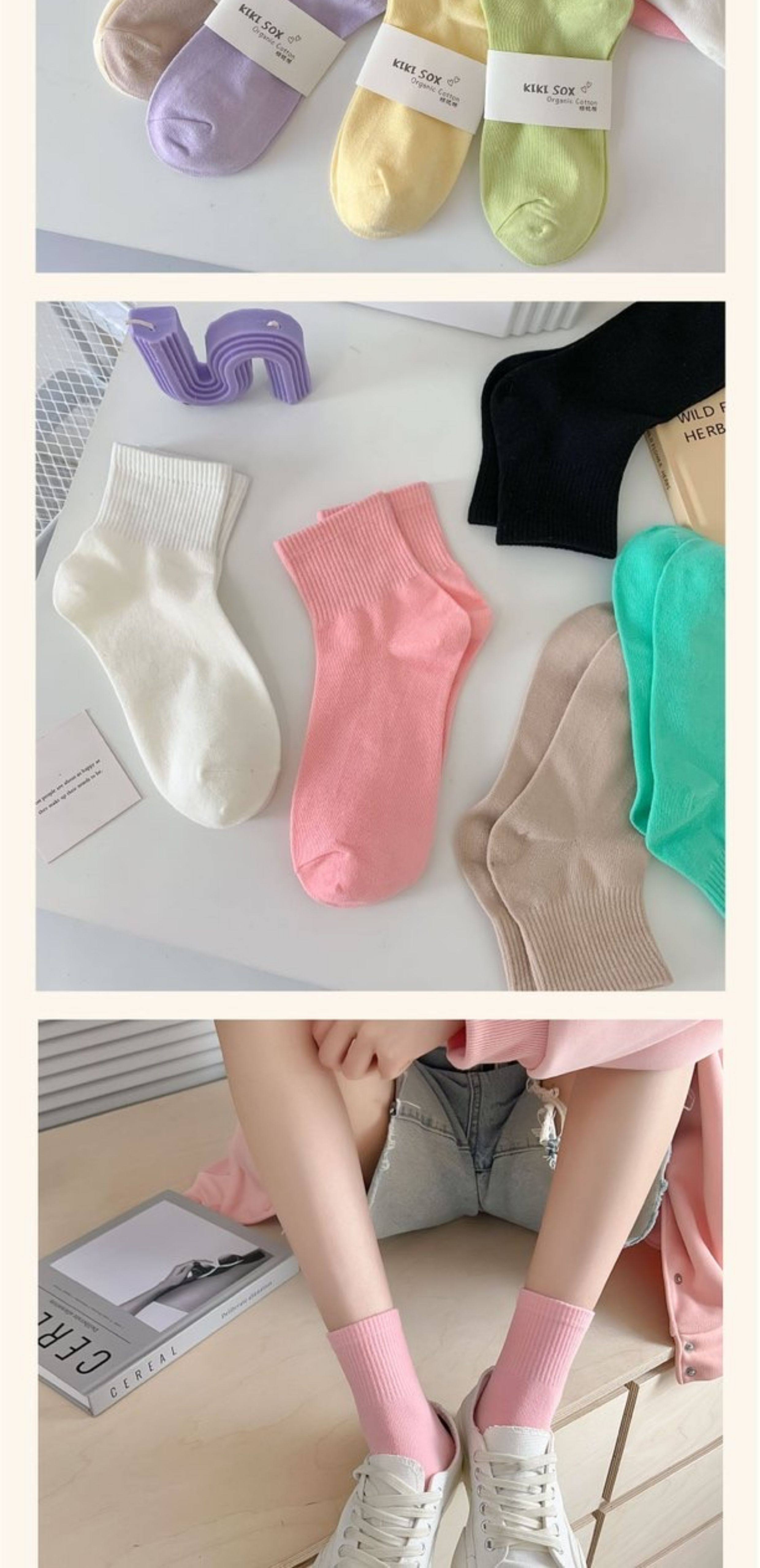 马卡龙彩色袜子女中筒纯色棉袜春秋日系运动糖果色学生春秋长袜