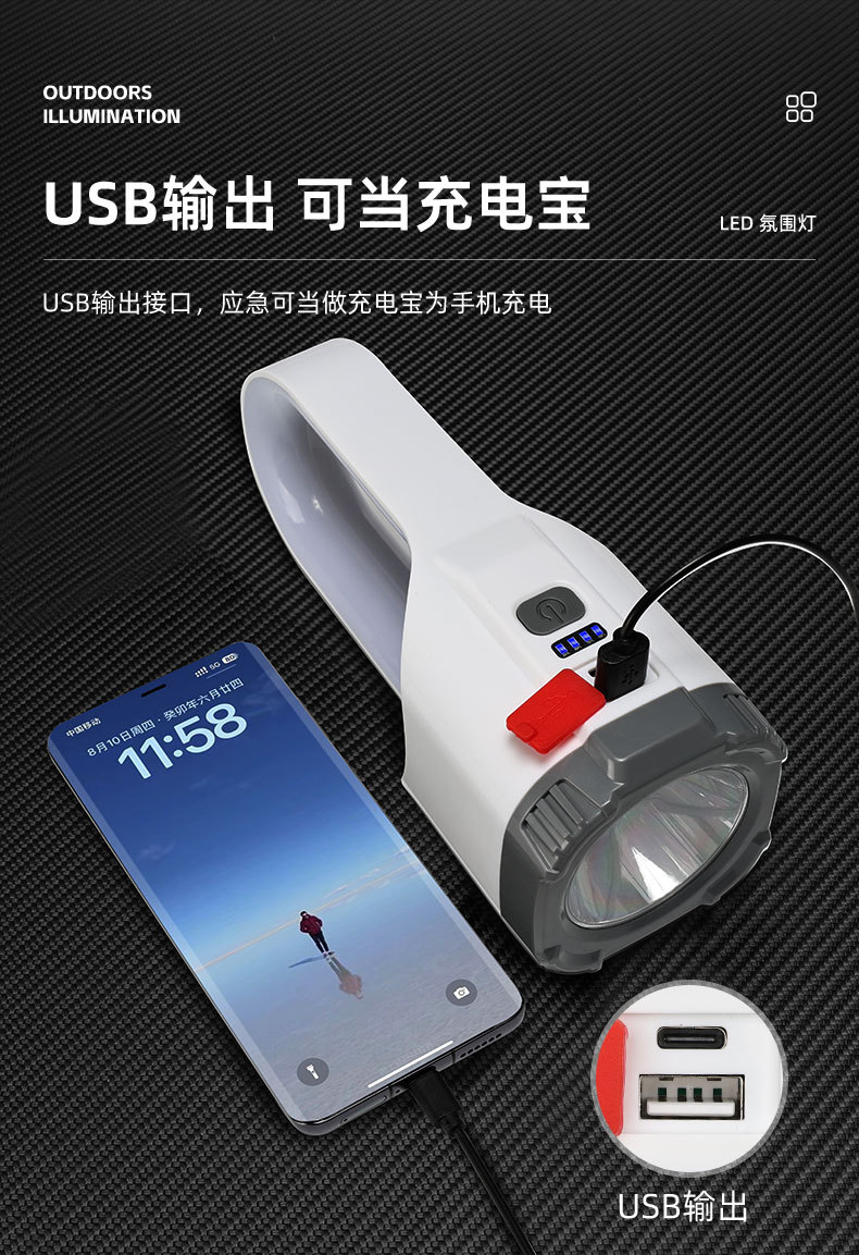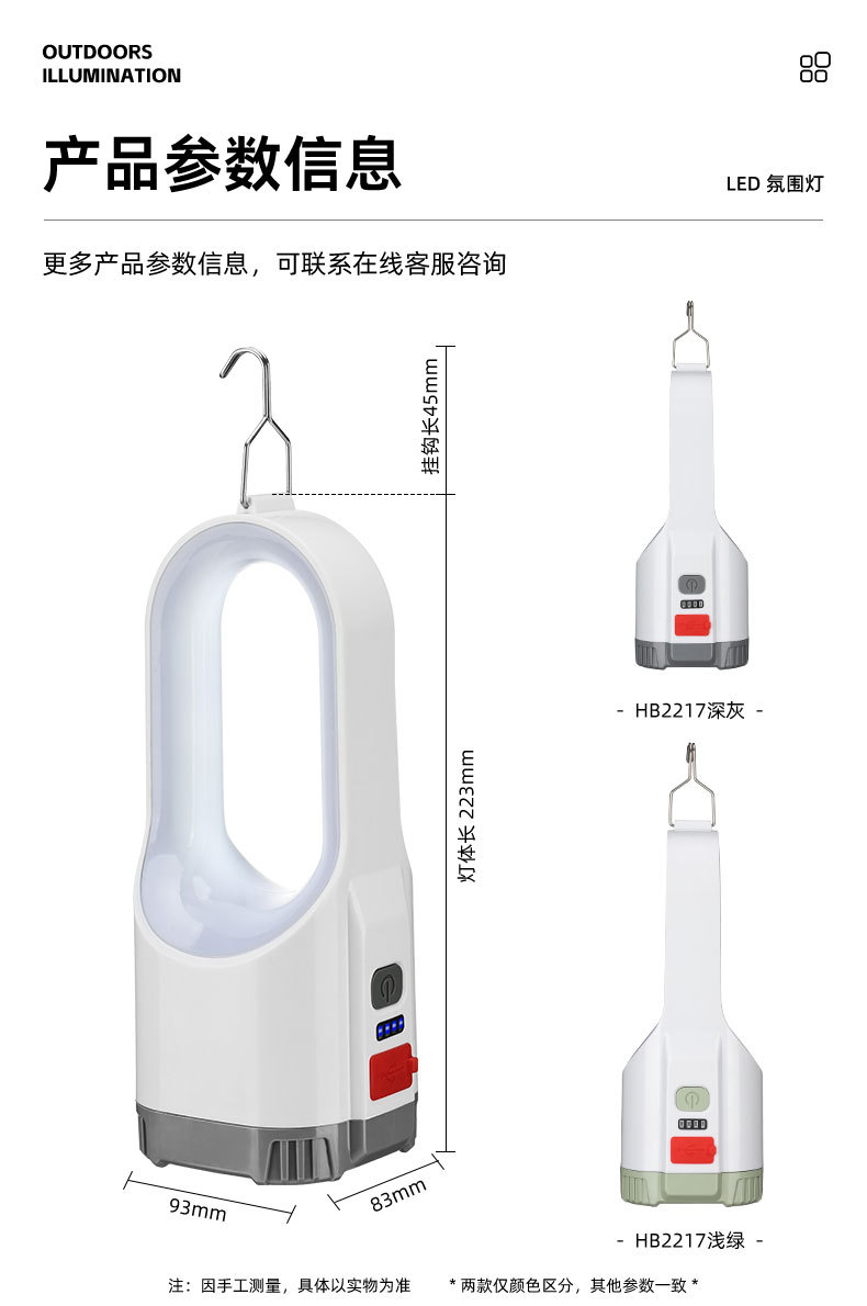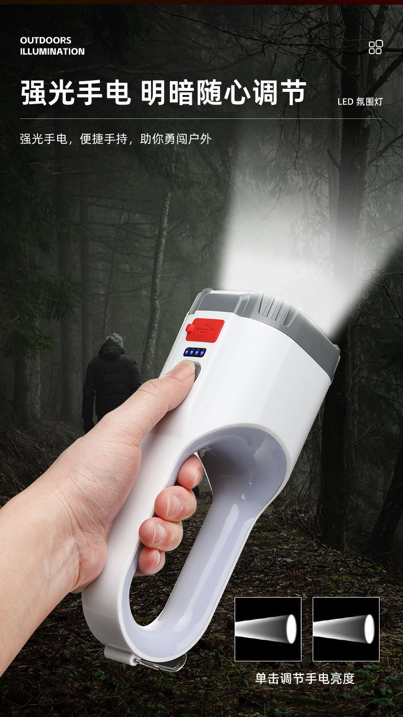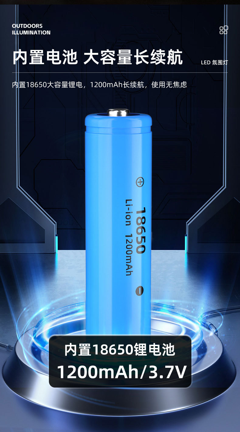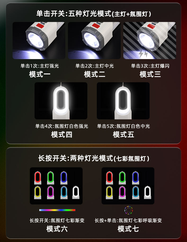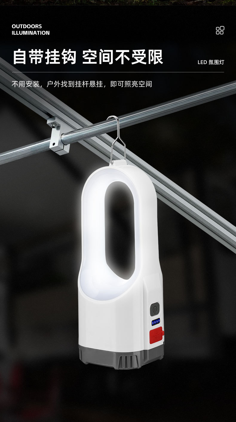 跨境新款露营灯七彩色氛围灯多功能USB充电便携式手提灯手电筒
