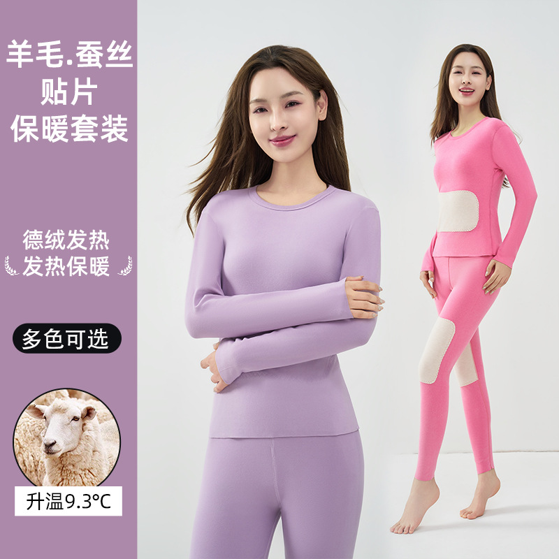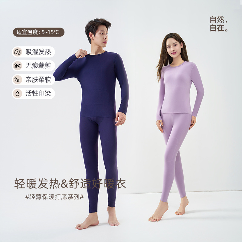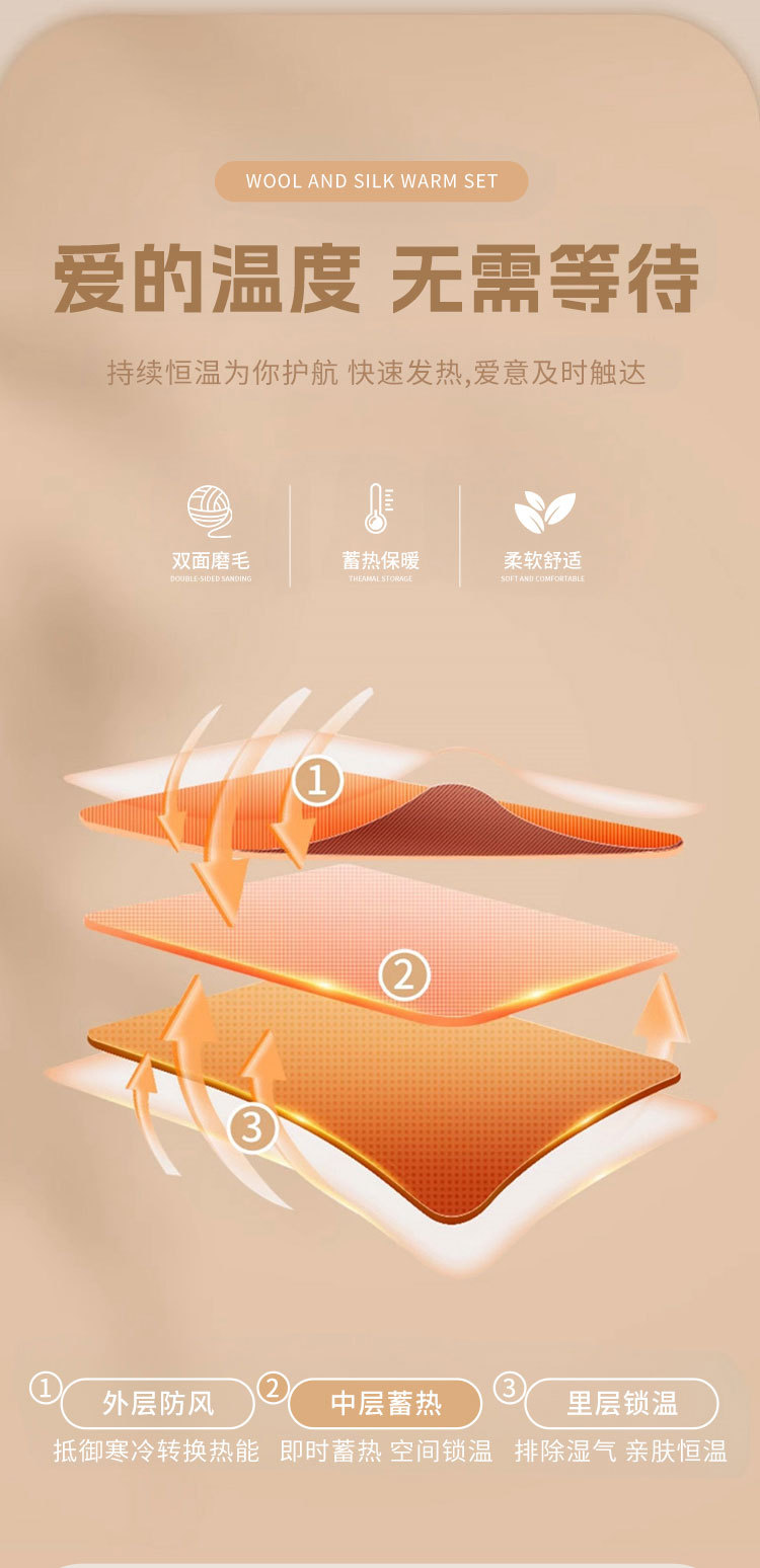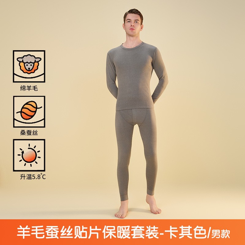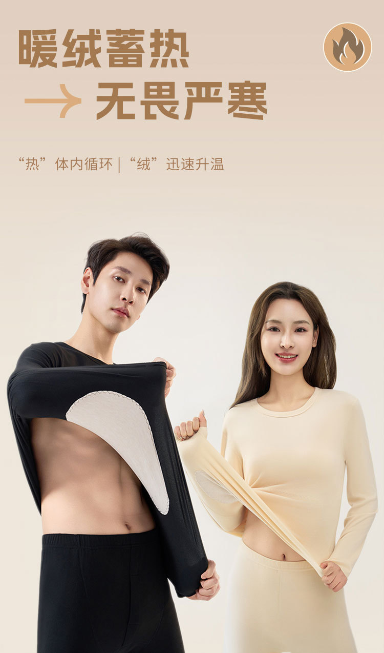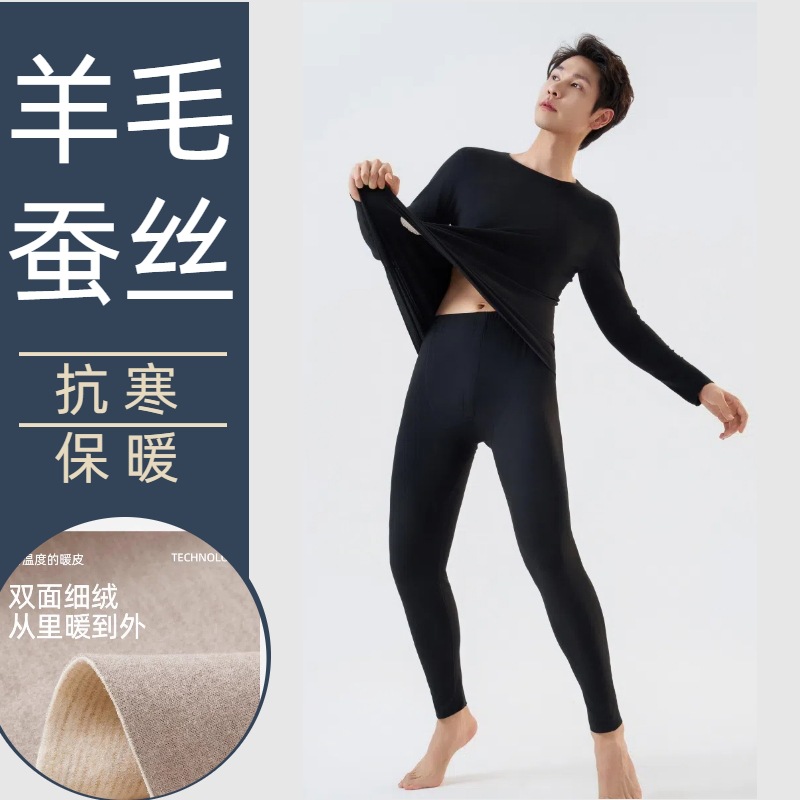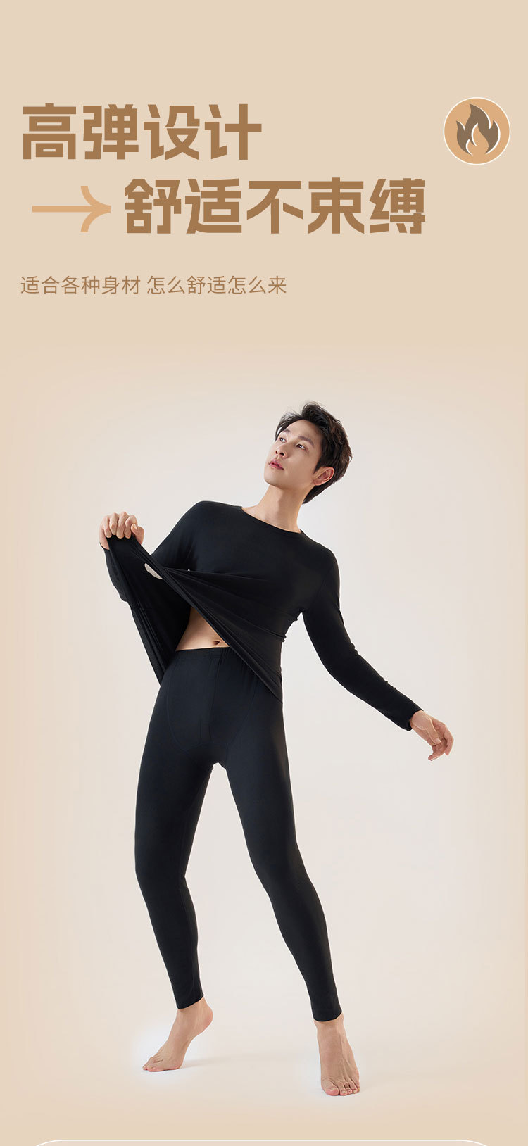 秋冬款男士细磨绒贴片无痕保暖秋衣秋裤大码双面德绒发热保暖套装