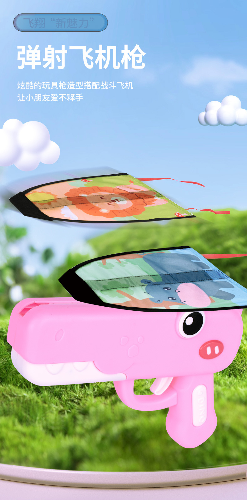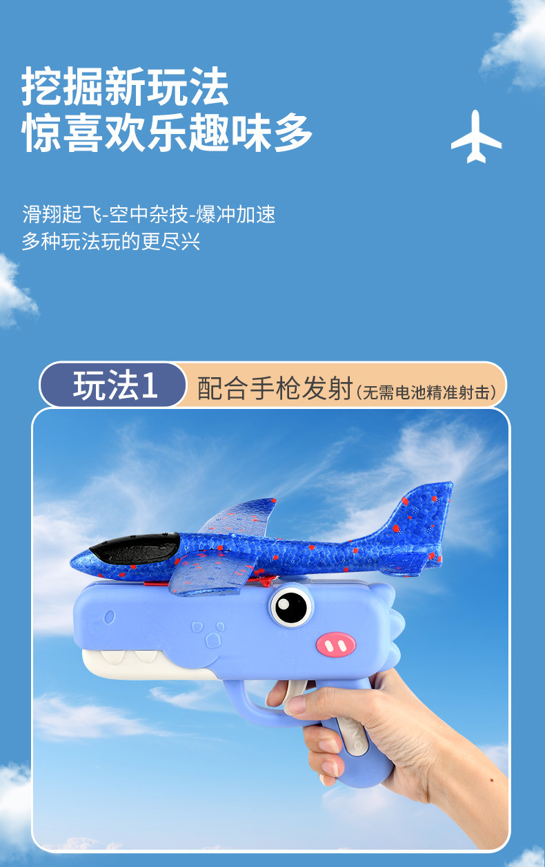 抖音爆款代发飞机枪跨境儿童弹射风筝恐龙飞机枪户外滑翔发射互动