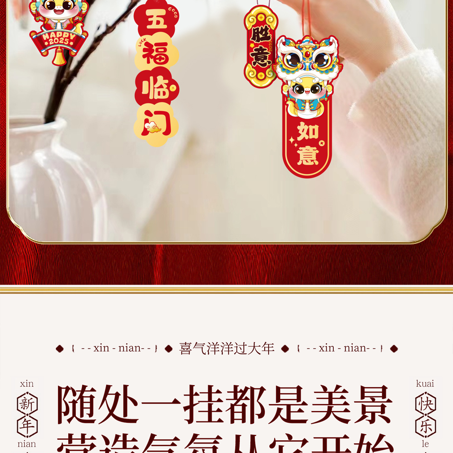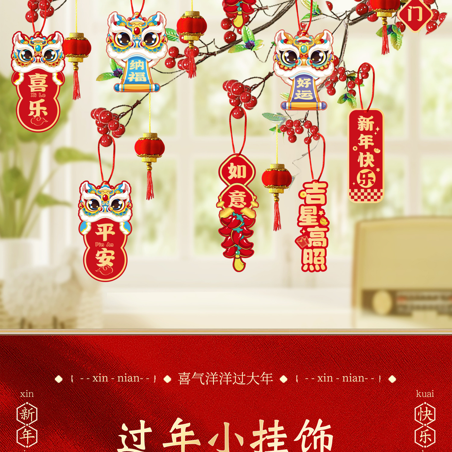 福字小挂件2026马年新款创意新年小灯笼装饰品春节盆景绿植小挂饰